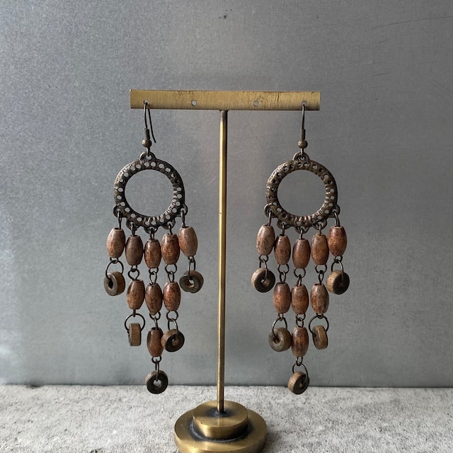 Vintage 70s-80s USA retro wood beads fringe pierce レトロ アメリカ ヴィンテージ アクセサリー ウッドビーズ フリンジ ピアス/イヤリング