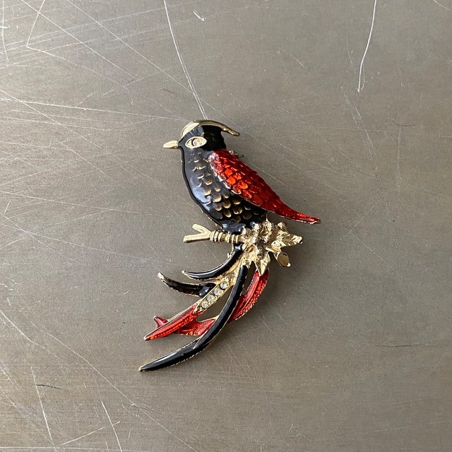 Vintage retro black×red enamel bird brooch レトロ ヴィンテージ アクセサリー 黒×赤 エナメル バード 鳥 ブローチ