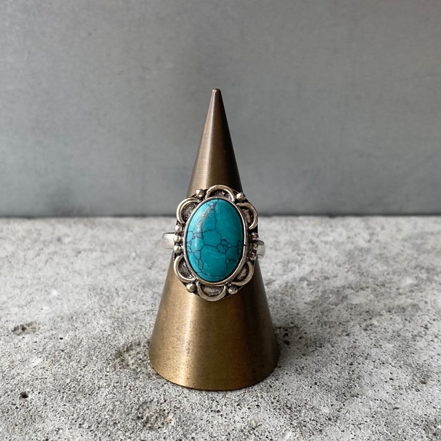 Retro natural stone turquoise hand made ring レトロ アクセサリー 天然石 ターコイズ ハンドメイド リング 指輪