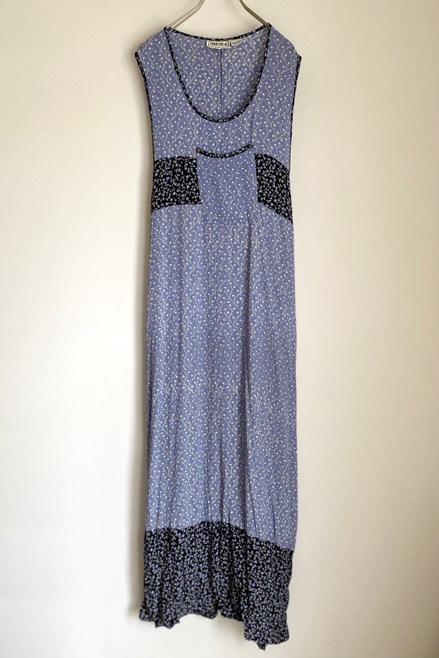 Used USA retro botanical flower bicolor sleeveless one piece レトロ アメリカ ユーズド 古着 ボタニカル フラワー柄 バイカラー ノースリーブ マキシ丈 ワンピース レディース