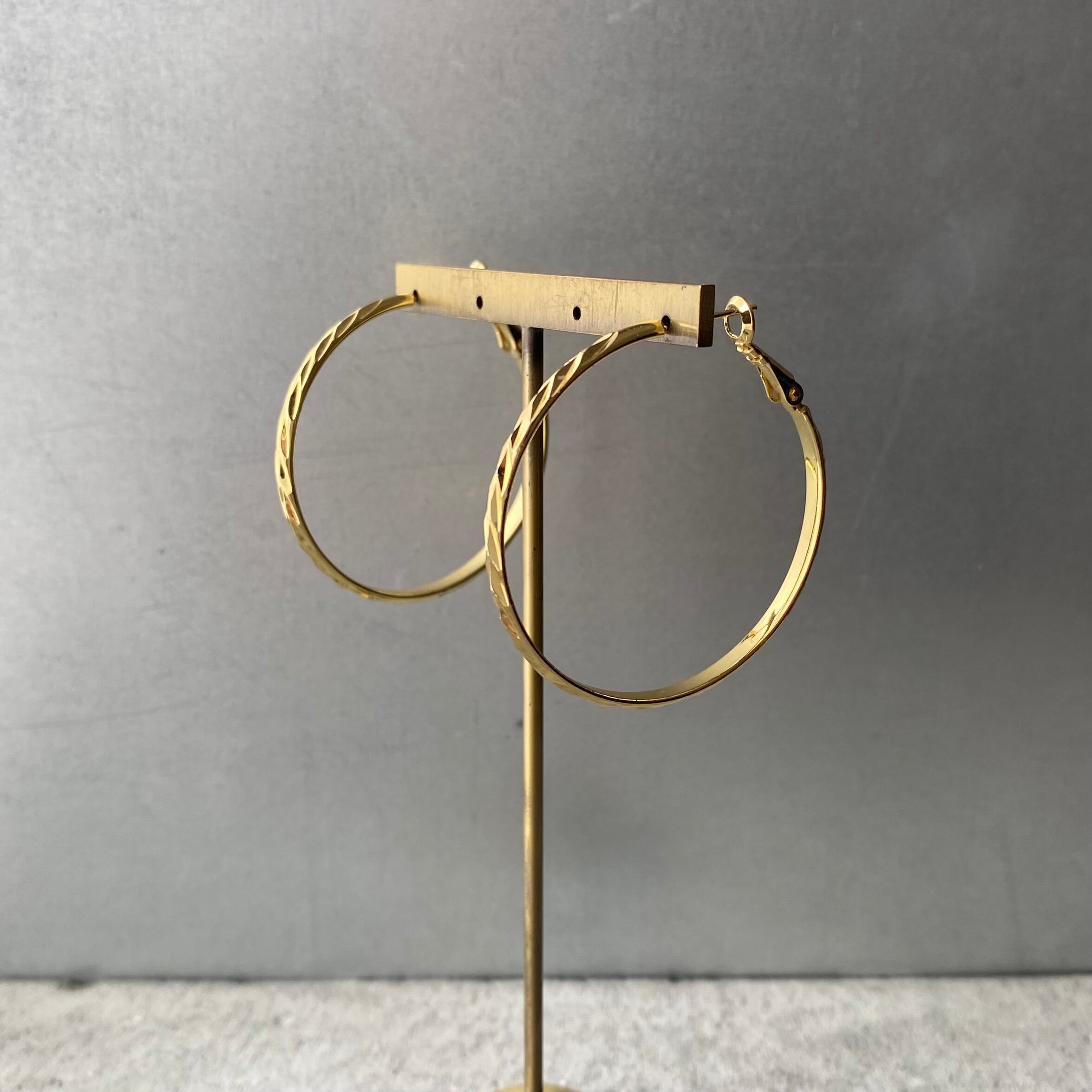 Used USA retro gold tone herringbone design hoop pierce レトロ アメリカ ユーズド アクセサリー ゴールド ヘリンボーン デザイン フープピアス