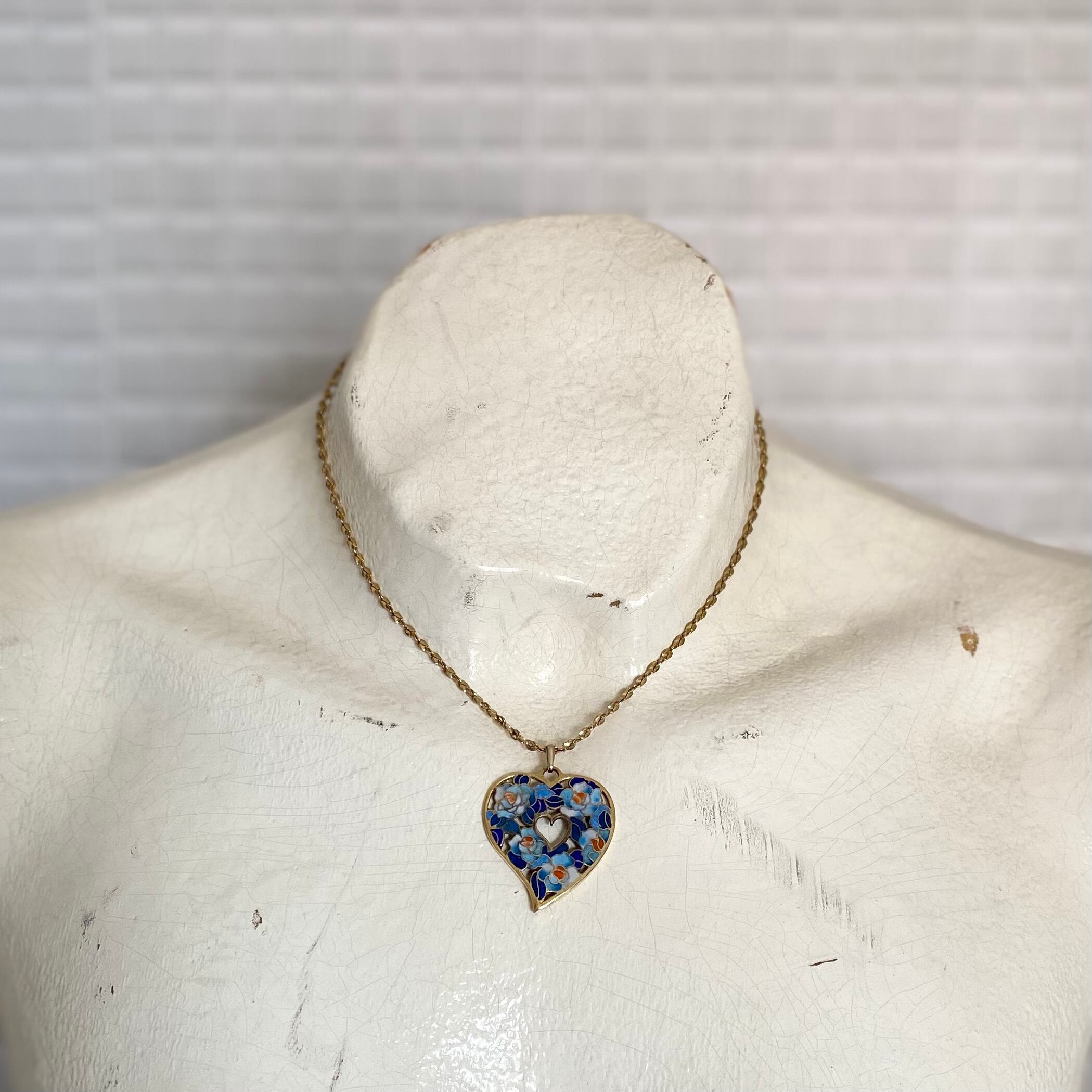 Vintage 80s USA retro botanical flower blue heart enameled necklace レトロ アメリカ ヴィンテージ アクセサリー ボタニカル フラワー ブルー ハート エナメル ネックレス