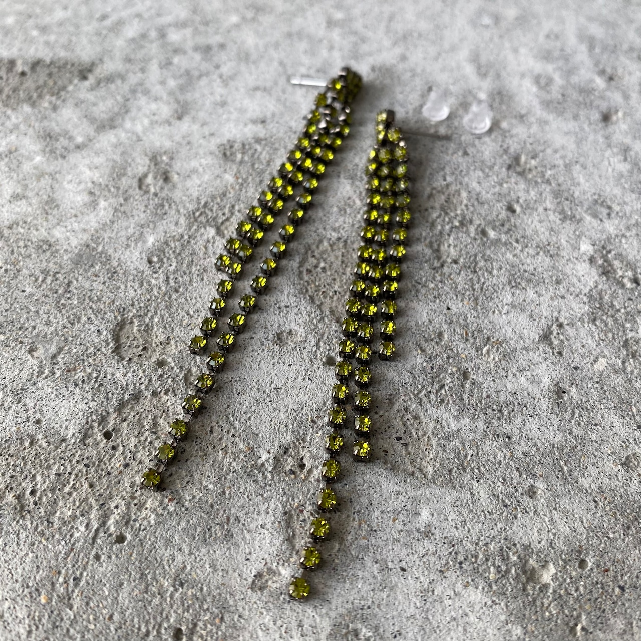 Used USA retro olive green bijou fringe long pierces レトロ アメリカ ヴィンテージ アクセサリー オリーブグリーン ビジュー フリンジ ロング ピアス