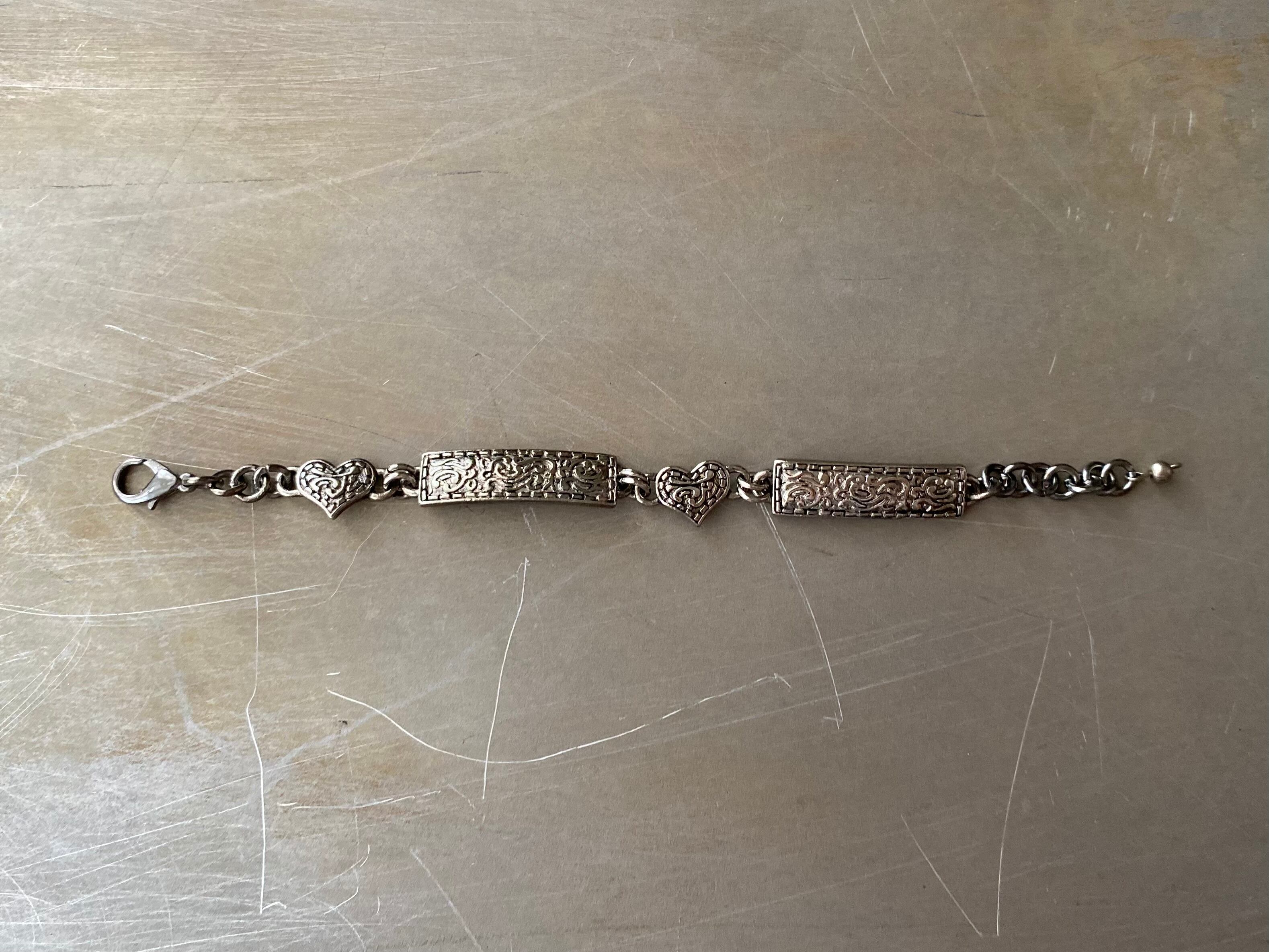 Used USA retro classical black tone heart chain bracelet レトロ アメリカ ユーズド アクセサリー クラシカル ブラック ハート チェーン ブレスレット