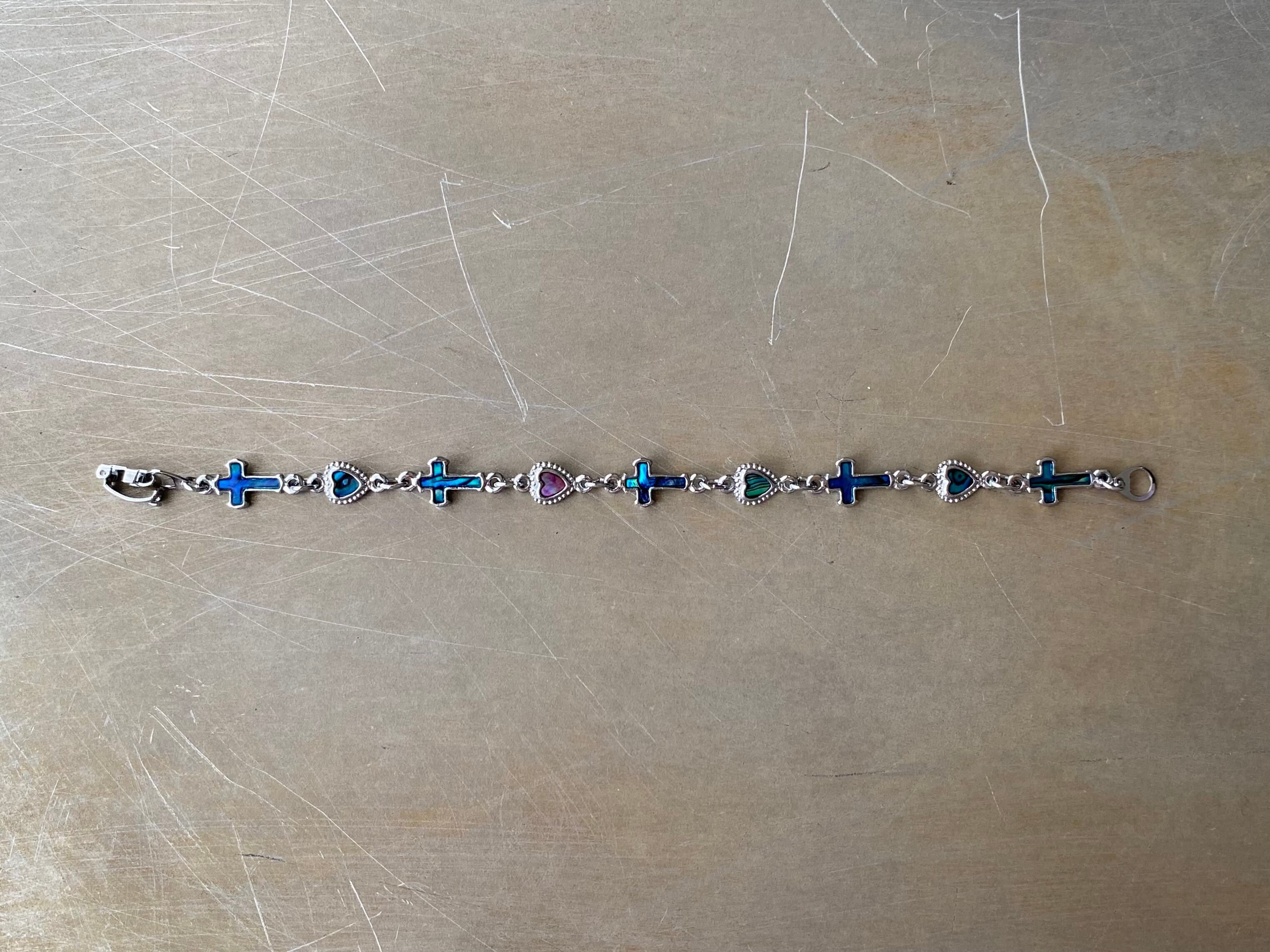 Vintage 80s-90s USA retro abalone shell heart & cross bracelet レトロ アメリカ ヴィンテージ アバロンシェル ハート&クロス ブレスレット