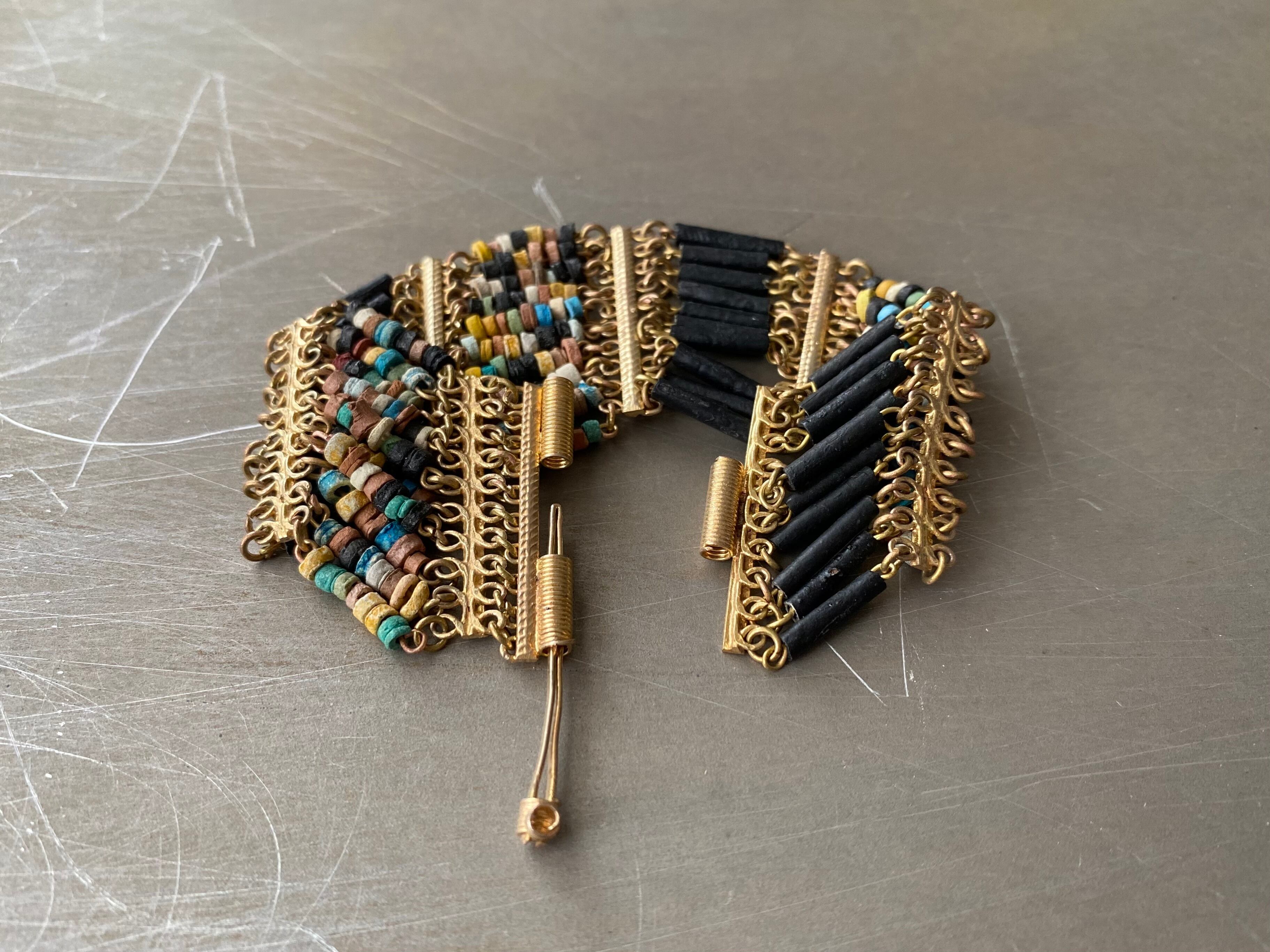オーストラリア製のヴィンテージブレスレットです。カラフルなビーズを手作業で繊細に組み上げた、とても贅沢な作りです。クラシカルな金具のデザインや古びた色味もヴィンテージ感があり良い雰囲気。存在感がありスタイリングに華やかな印象をプラスしてくれます。