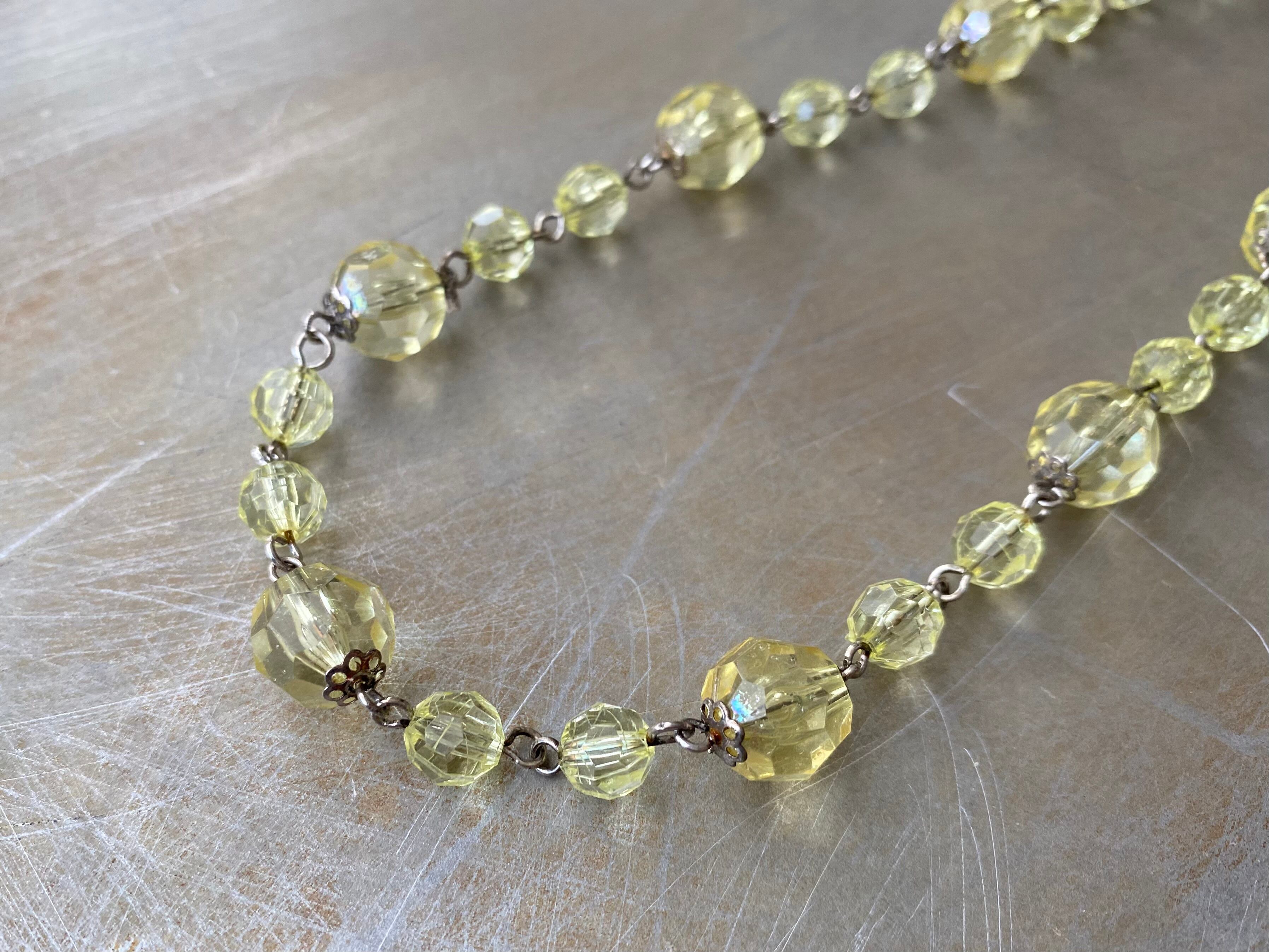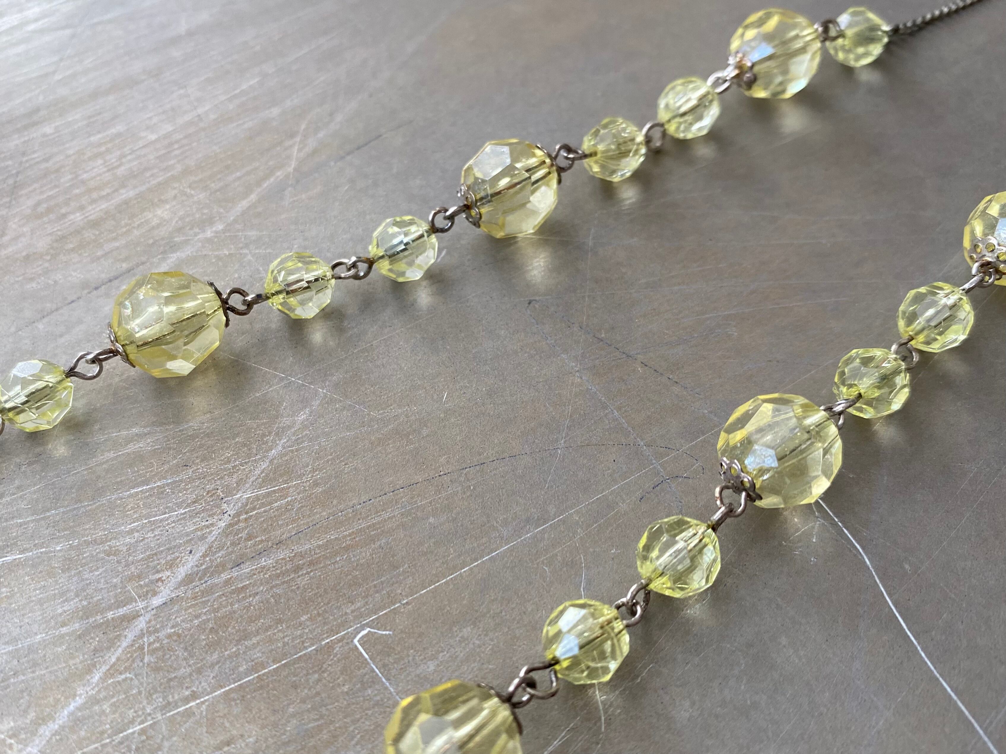 Vintage 70s USA retro lemon yellow crystal beads necklace レトロ アメリカ ヴィンテージ アクセサリー レモン イエロー クリスタル ビーズ ネックレス