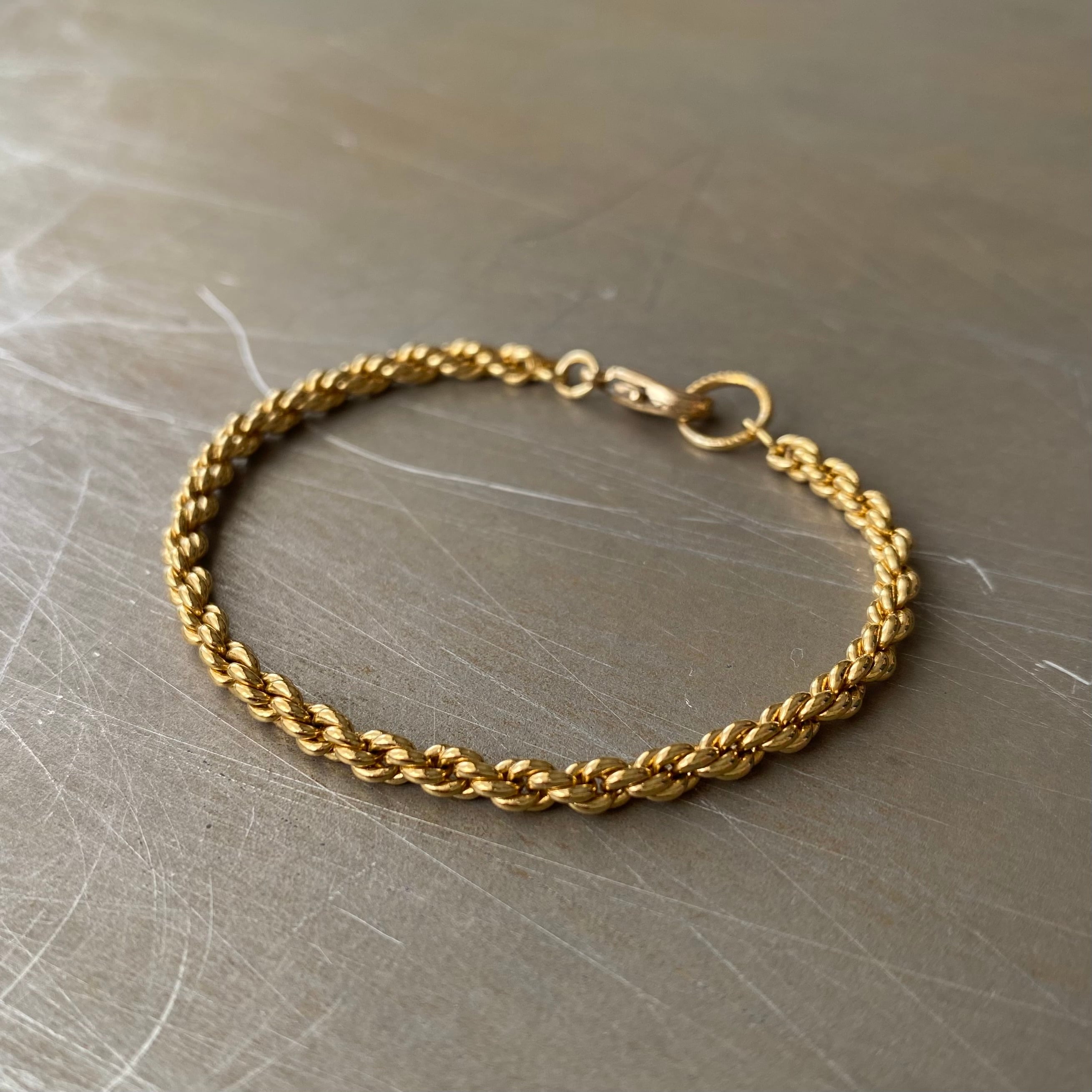 シンプルなデザインのUSAヴィンテージブレスレット。クラシカルなロープ風のチェーンがお洒落な雰囲気。身につけやすい細めの幅感で、デイリーユースにもおすすめのアイテムです。
