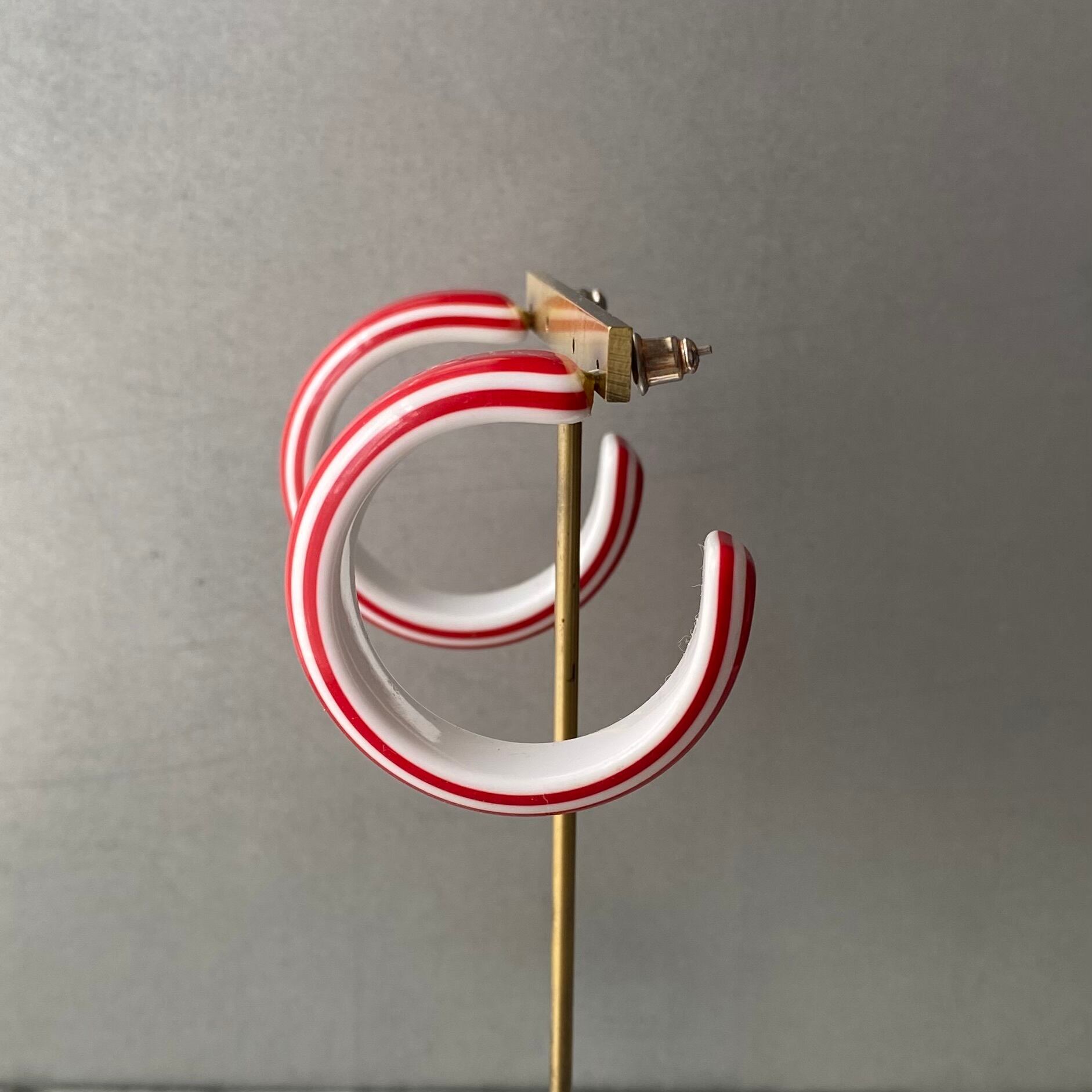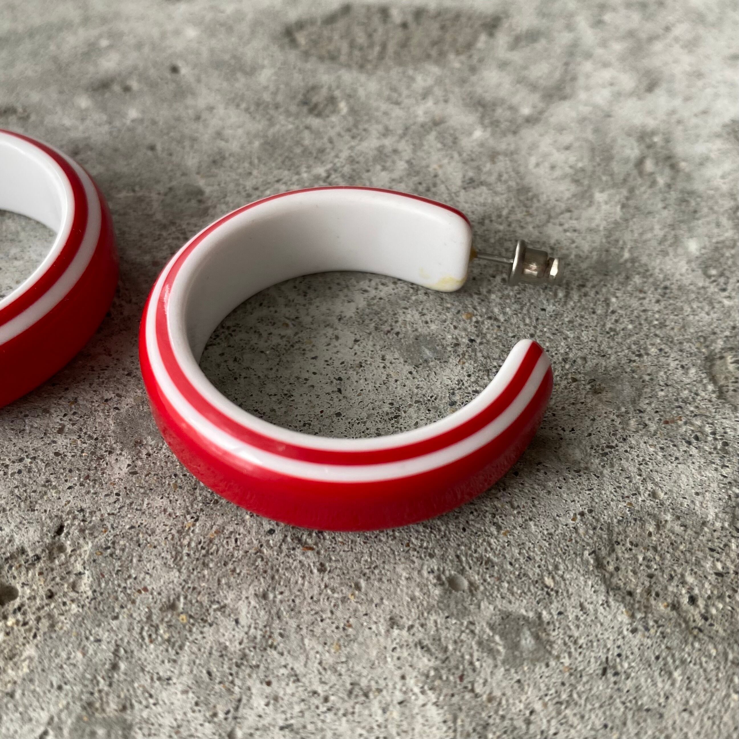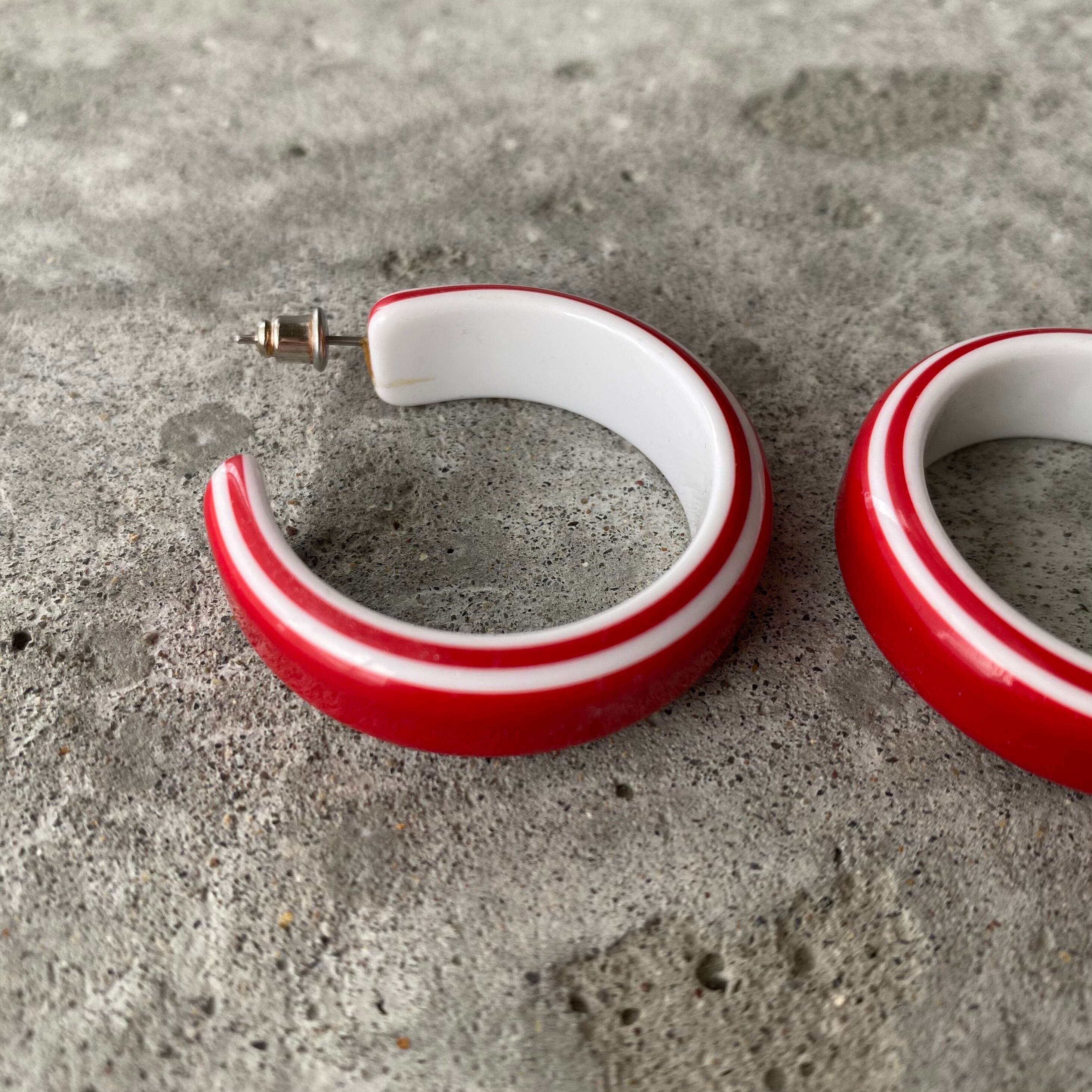 Vintage 80s-90s USA retro red stripe design hoop pierces レトロ アメリカ ヴィンテージ アクセサリー レッド 赤 ストライプ デザイン フープ ピアス