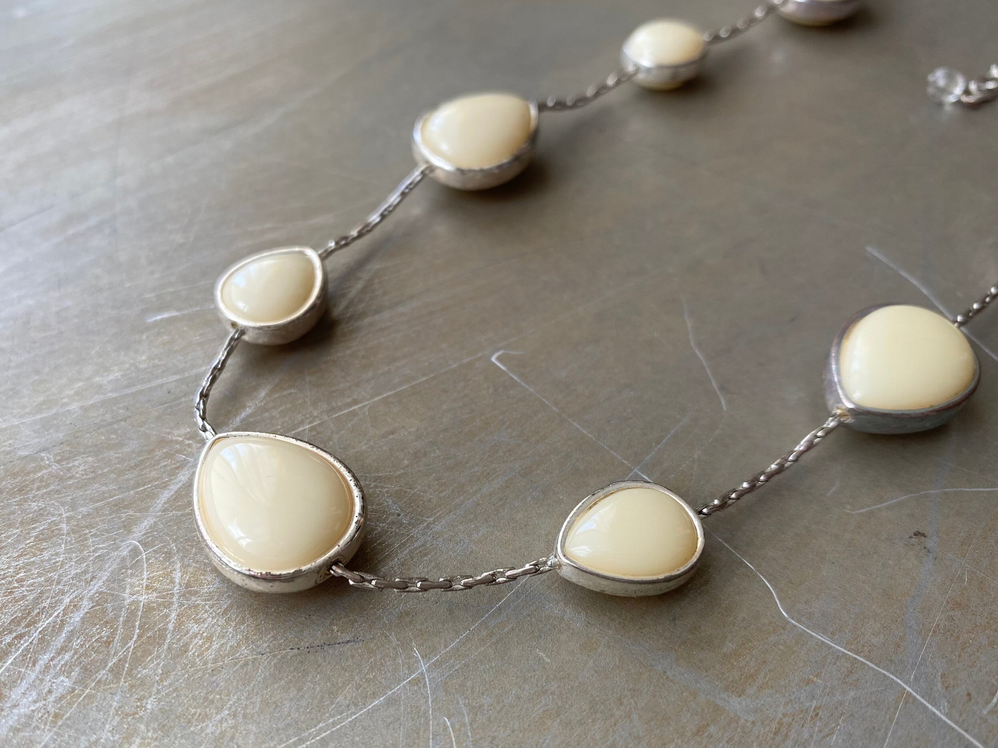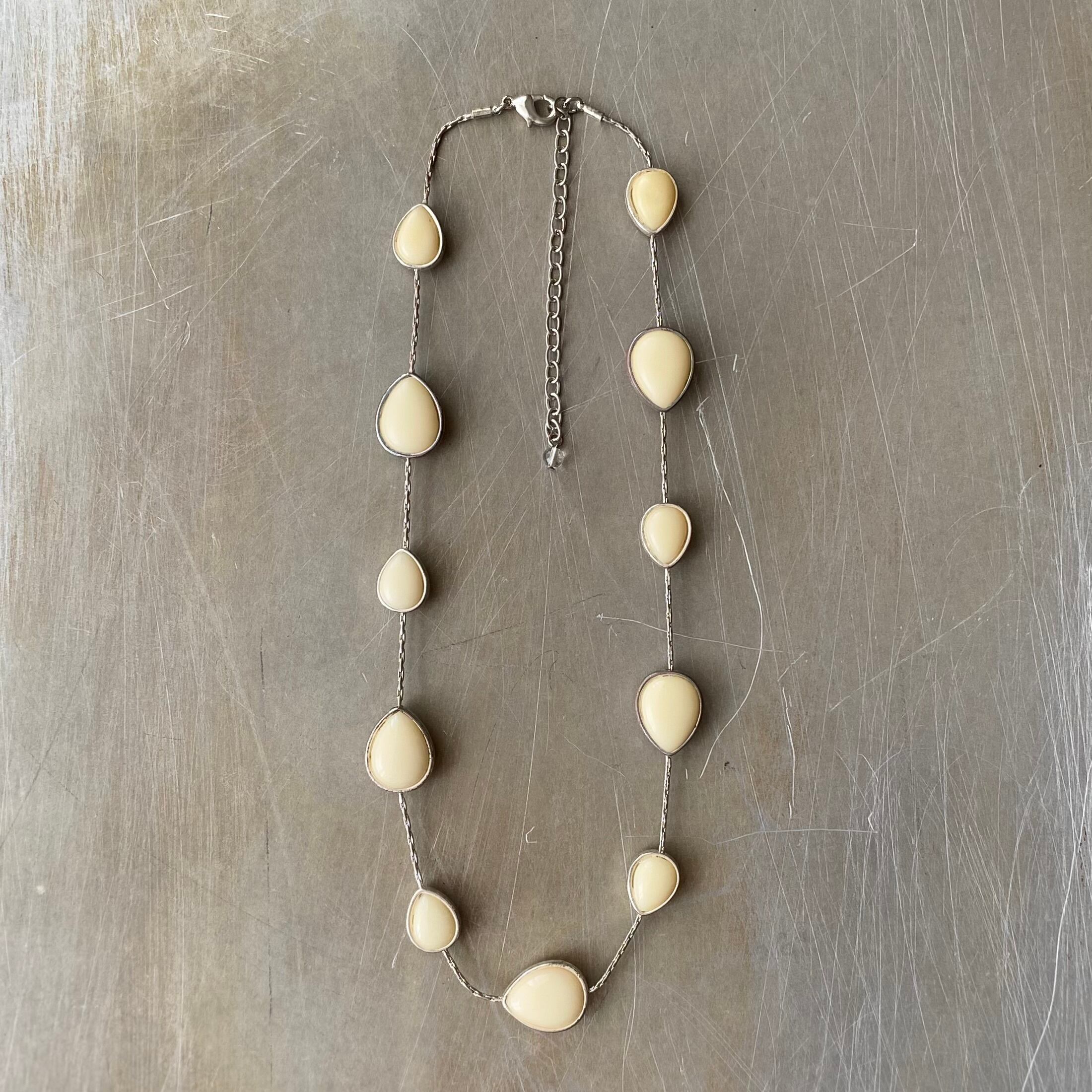レトロ可愛いUSAヴィンテージネックレス。優しい色合いのドロップストーンがお顔まわりを明るい雰囲気にしてくれます。古着やカジュアルなスタイルにもおすすめです。