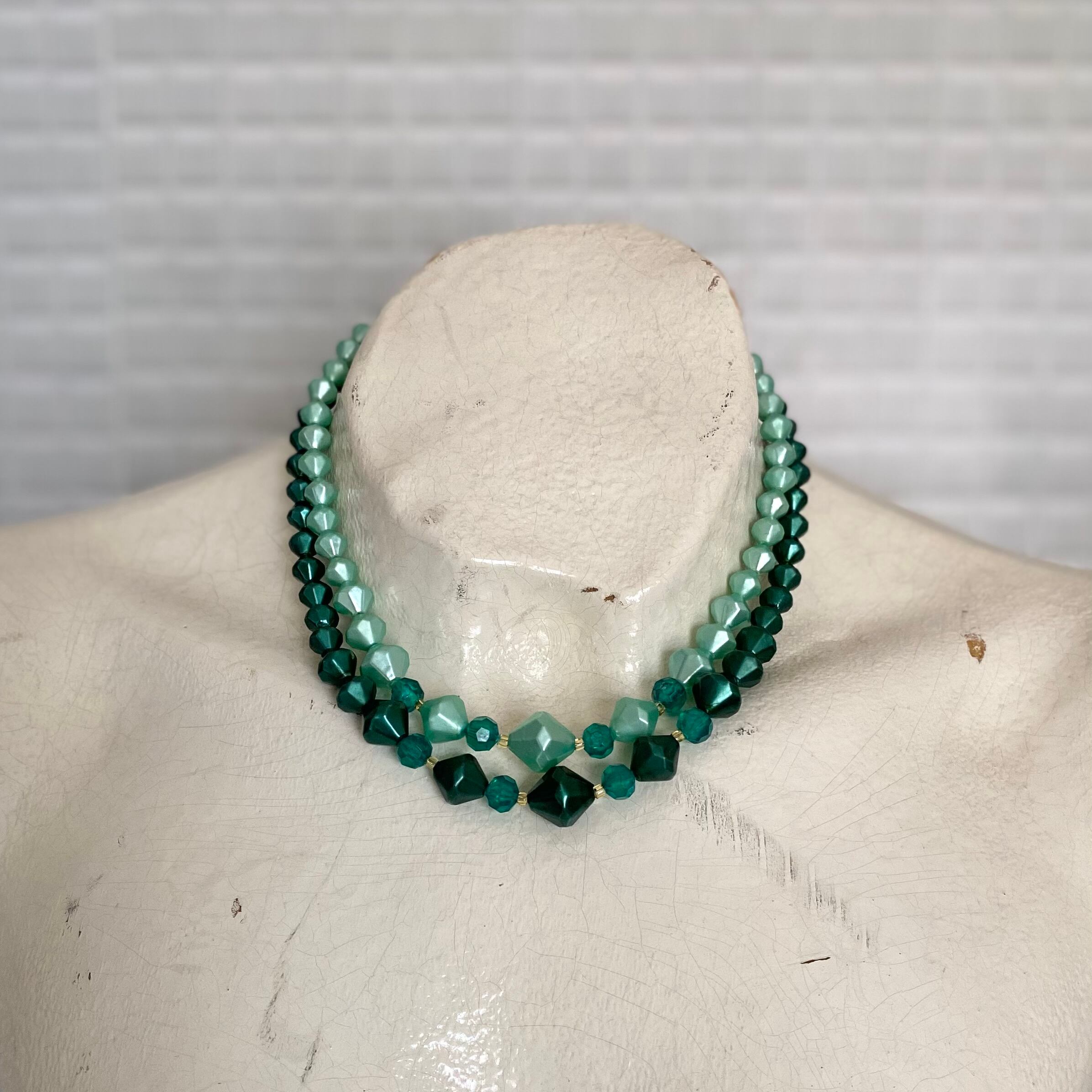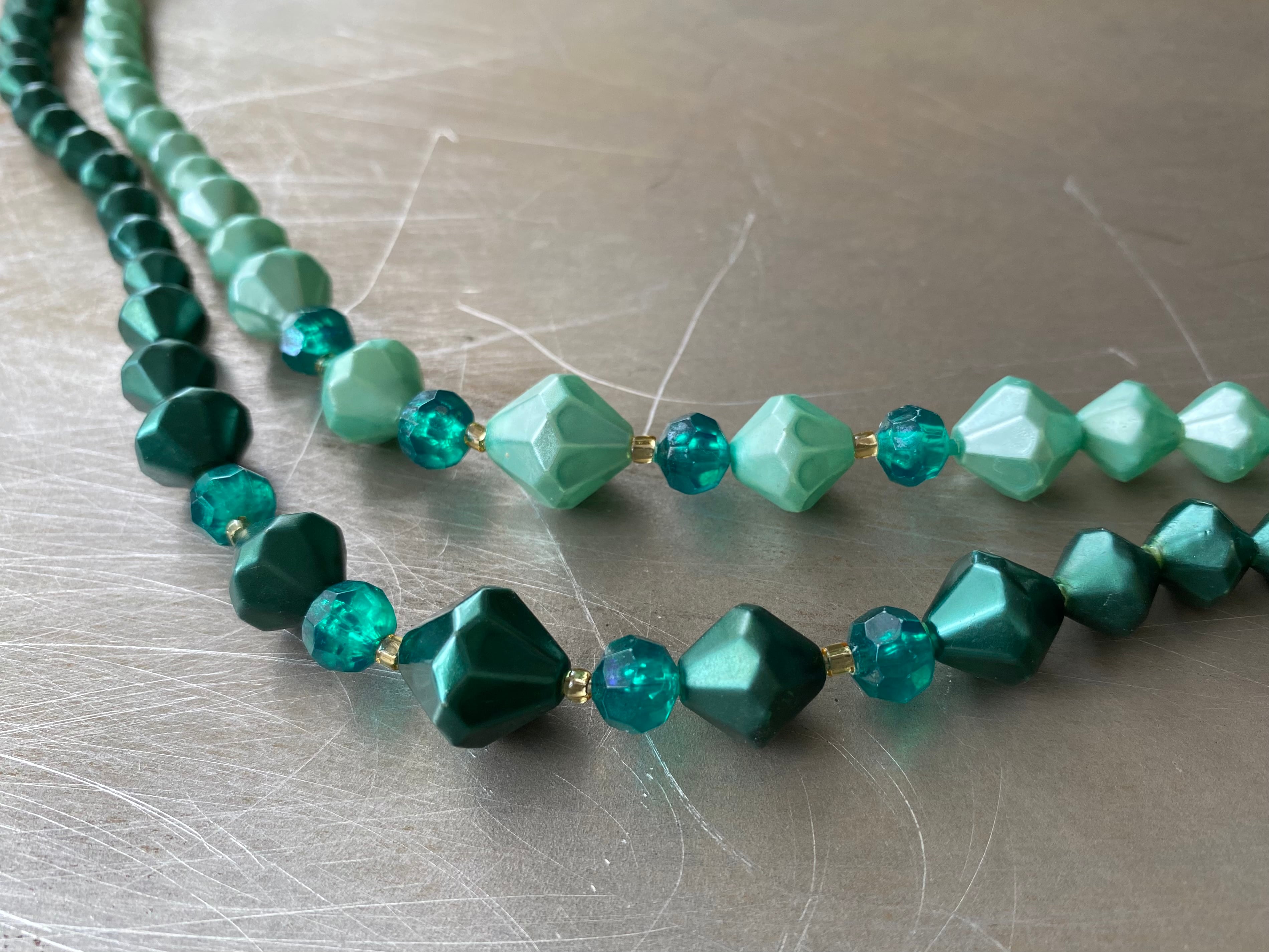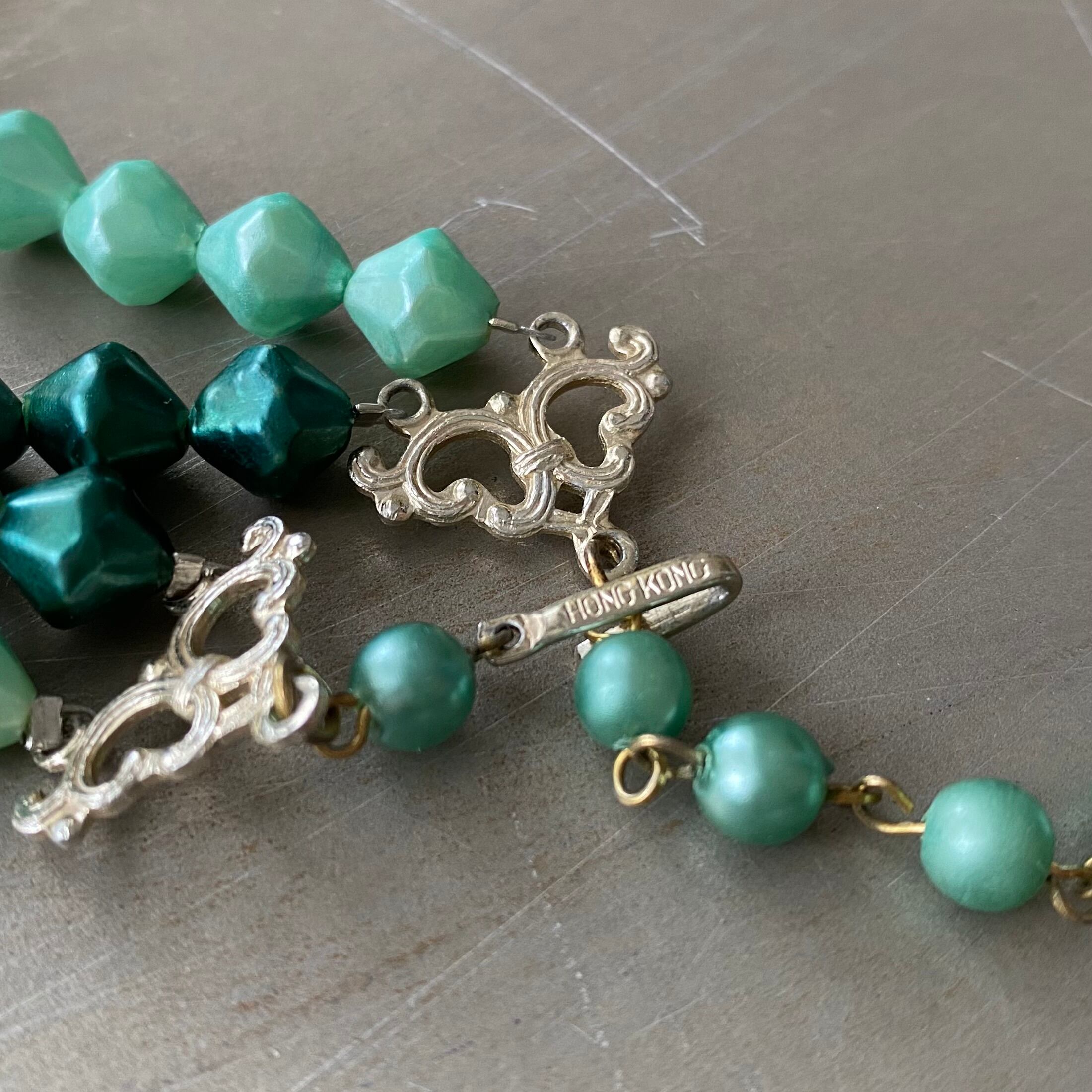 Vintage 60s-70s USA retro green pearl beads necklace レトロ アメリカ ヴィンテージ アクセサリー グリーン パール ビーズ 2連 ネックレス