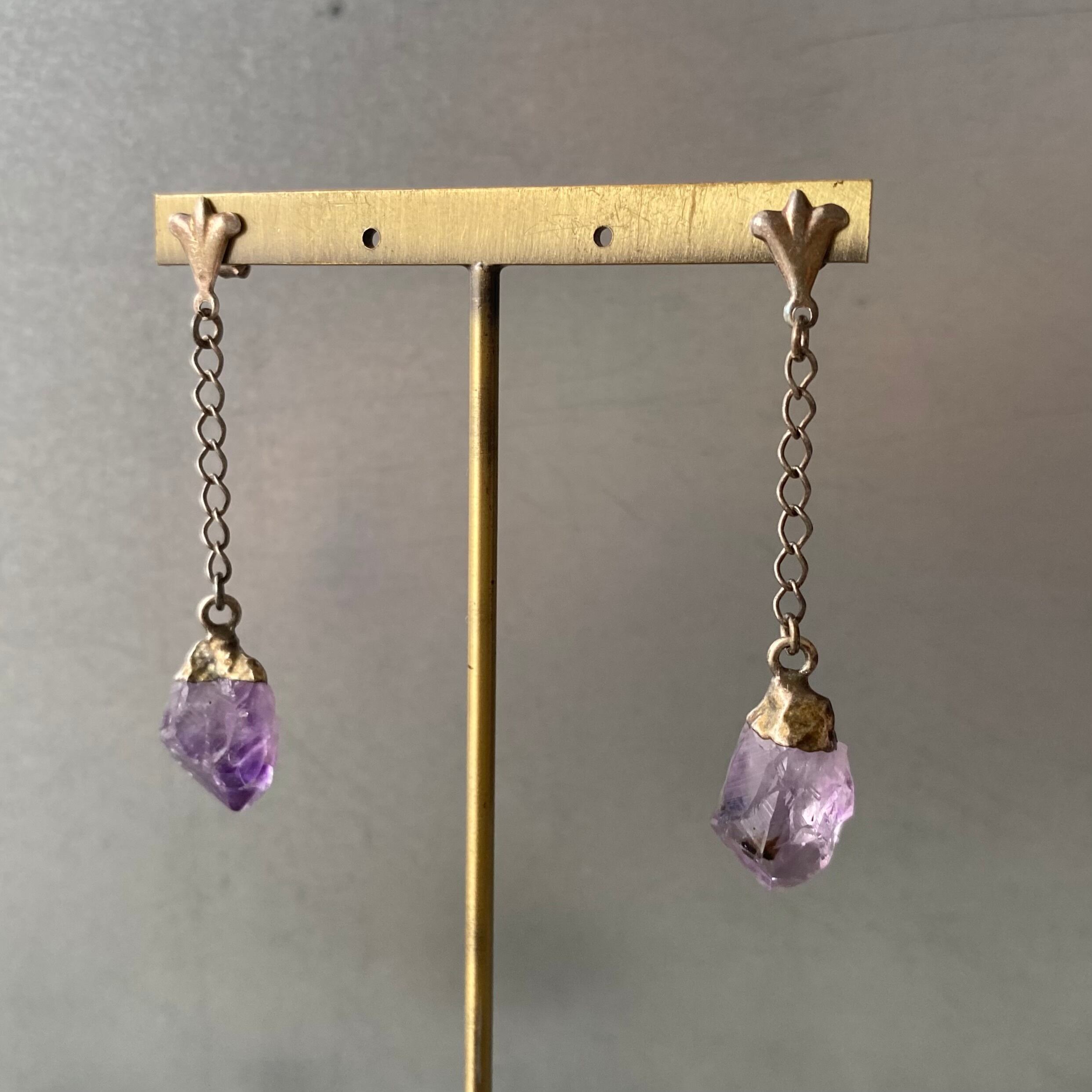 Vintage 70s-80s USA natural stone amethyst pierce レトロ アメリカ ヴィンテージ アクセサリー 天然石 ラフカット アメジスト ピアス
