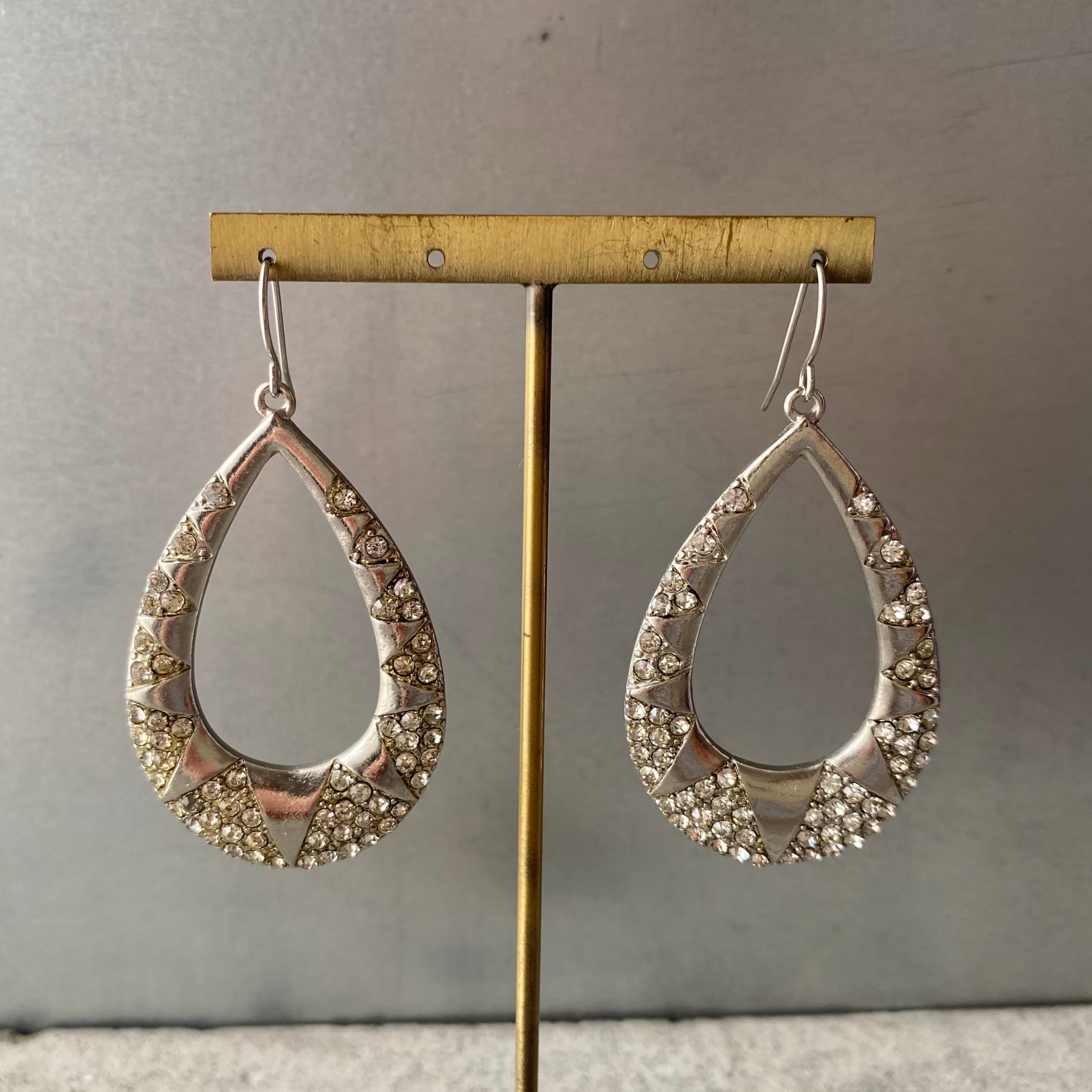 スタイリッシュなデザインのUSAヴィンテージピアス。ビジューで表現されたトライアングル模様がお洒落な雰囲気。存在感があり揺れるたびにキラキラと輝きます。