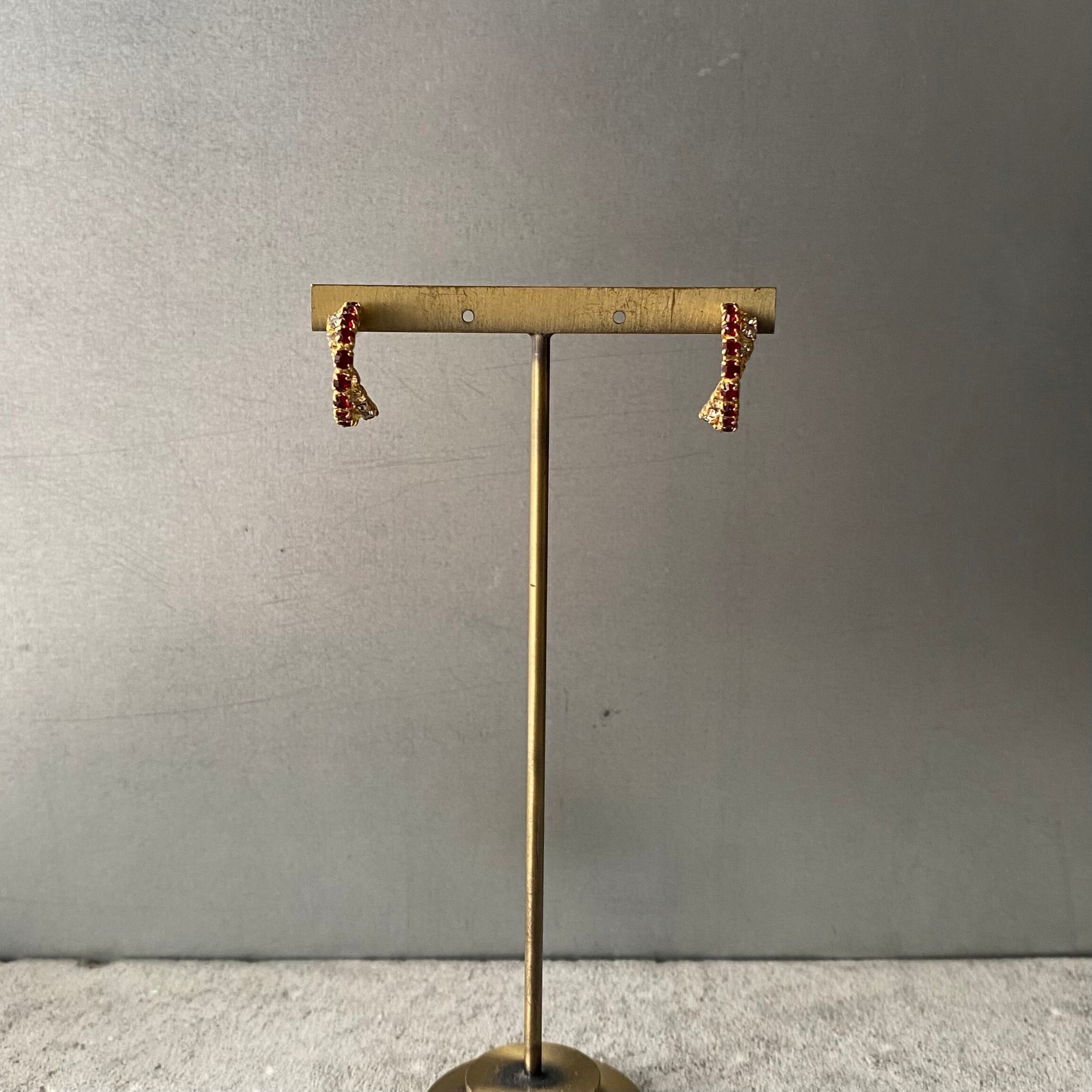 ガーネット×クリスタルのビジューが繊細にきらめくUSAヴィンテージピアス。シンプルながらお洒落なデザインでデイリーユースにもおすすめです。