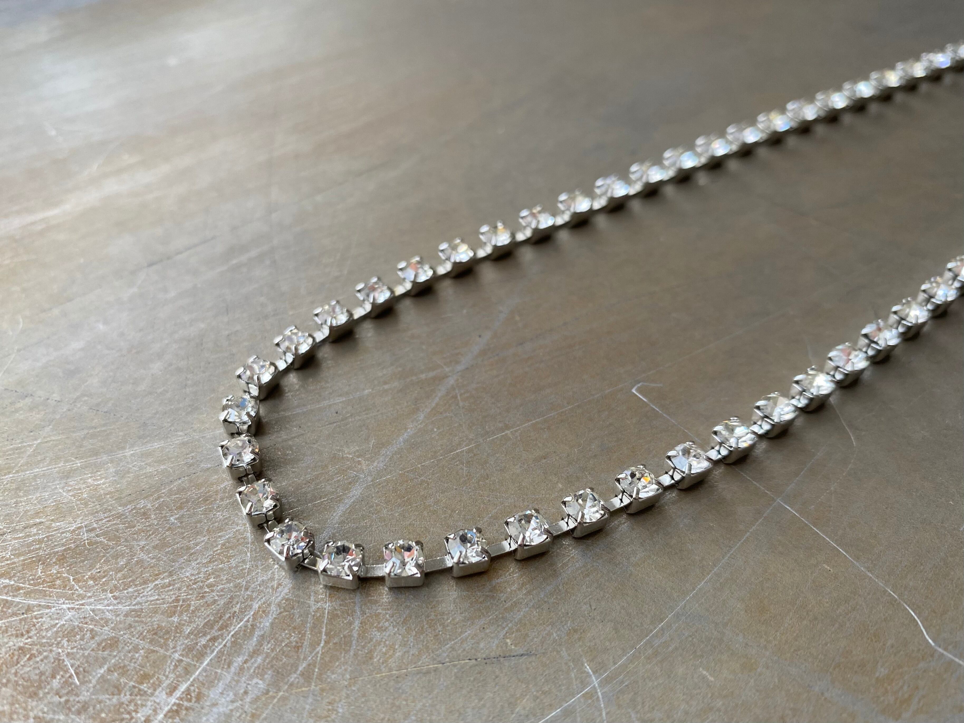 キラキラと輝くラインストーンが美しいUSAヴィンテージネックレス。シンプルなデザインで身につけやすく、様々なスタイルに合わせていただけます。