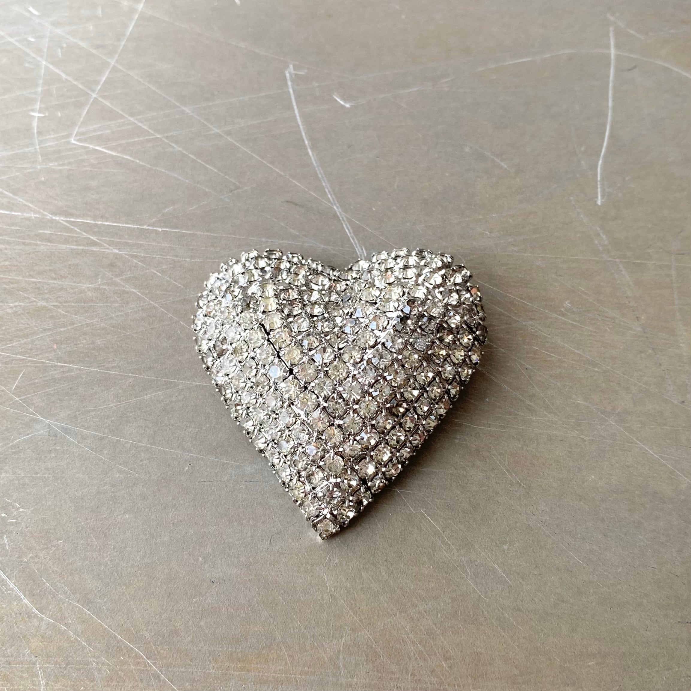 Vintage 80s USA crystal bijou heart brooch レトロ アメリカ ヴィンテージ アクセサリー クリスタル ビジュー ハート ブローチ