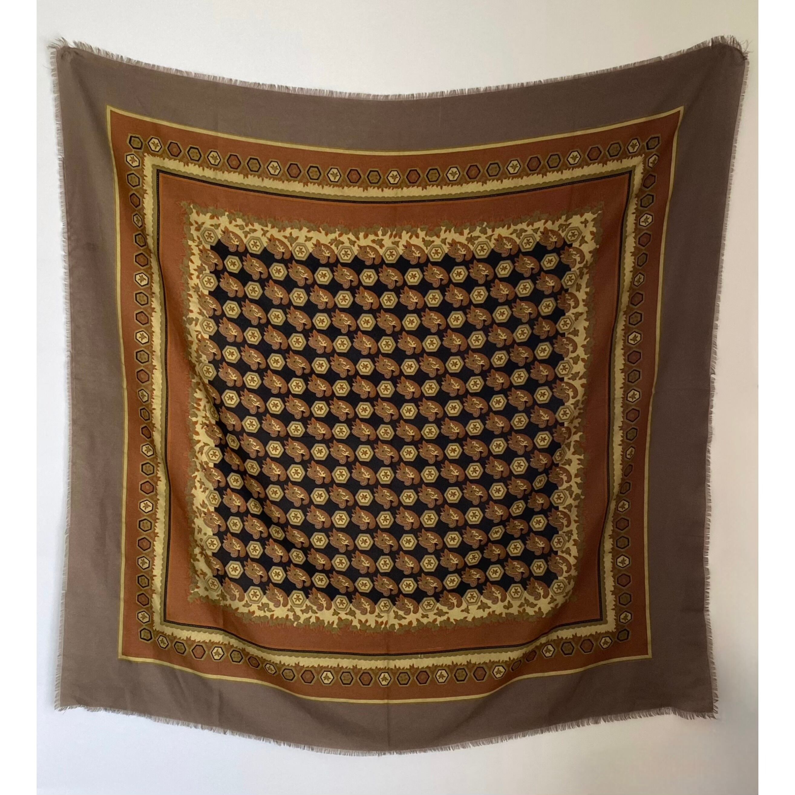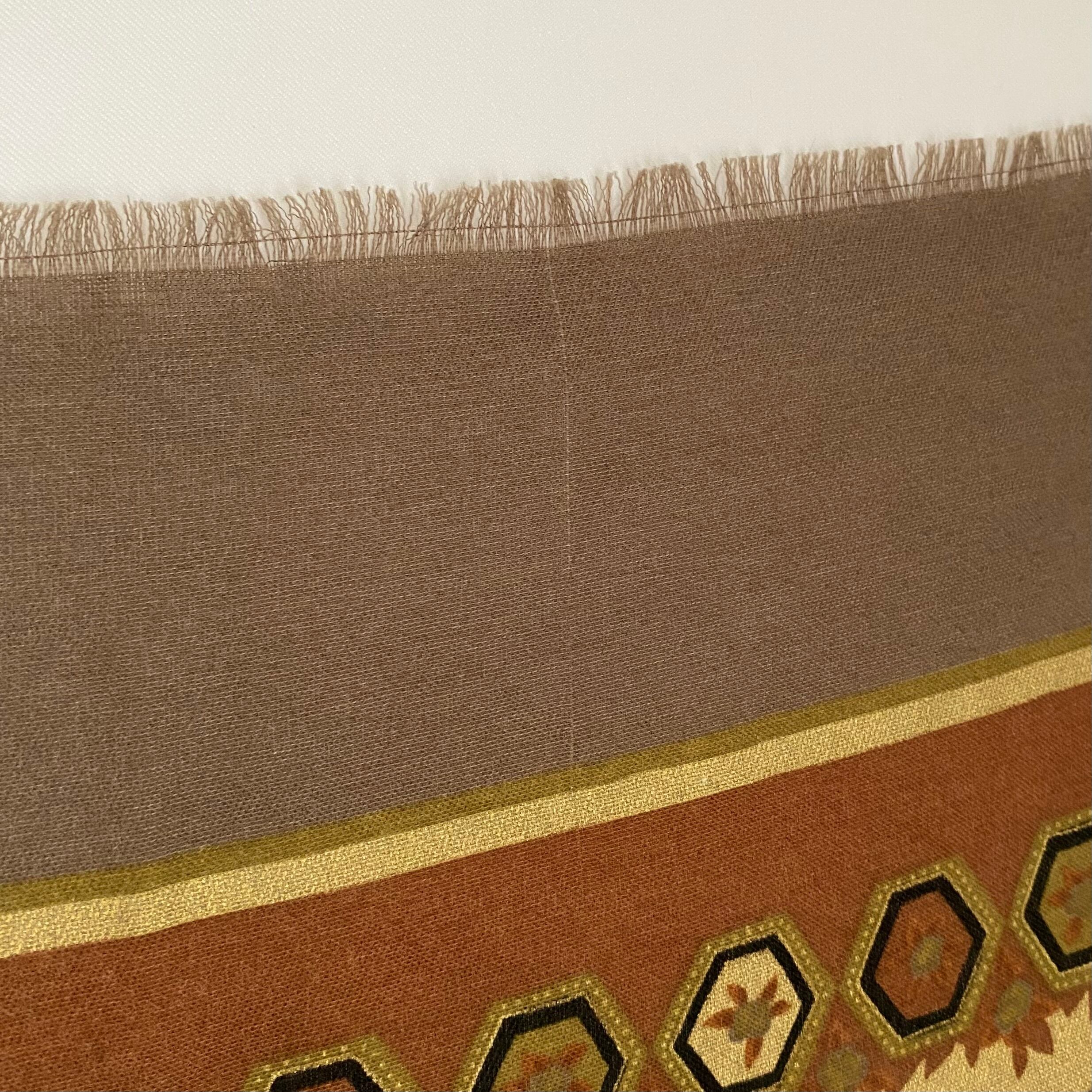 クラシカルなデザインのイタリア製ストール。レトロなデザインと落ち着いた色合いが魅力的です。薄手の軽やかな生地感でコーディネートに合わせやすい大判サイズです。