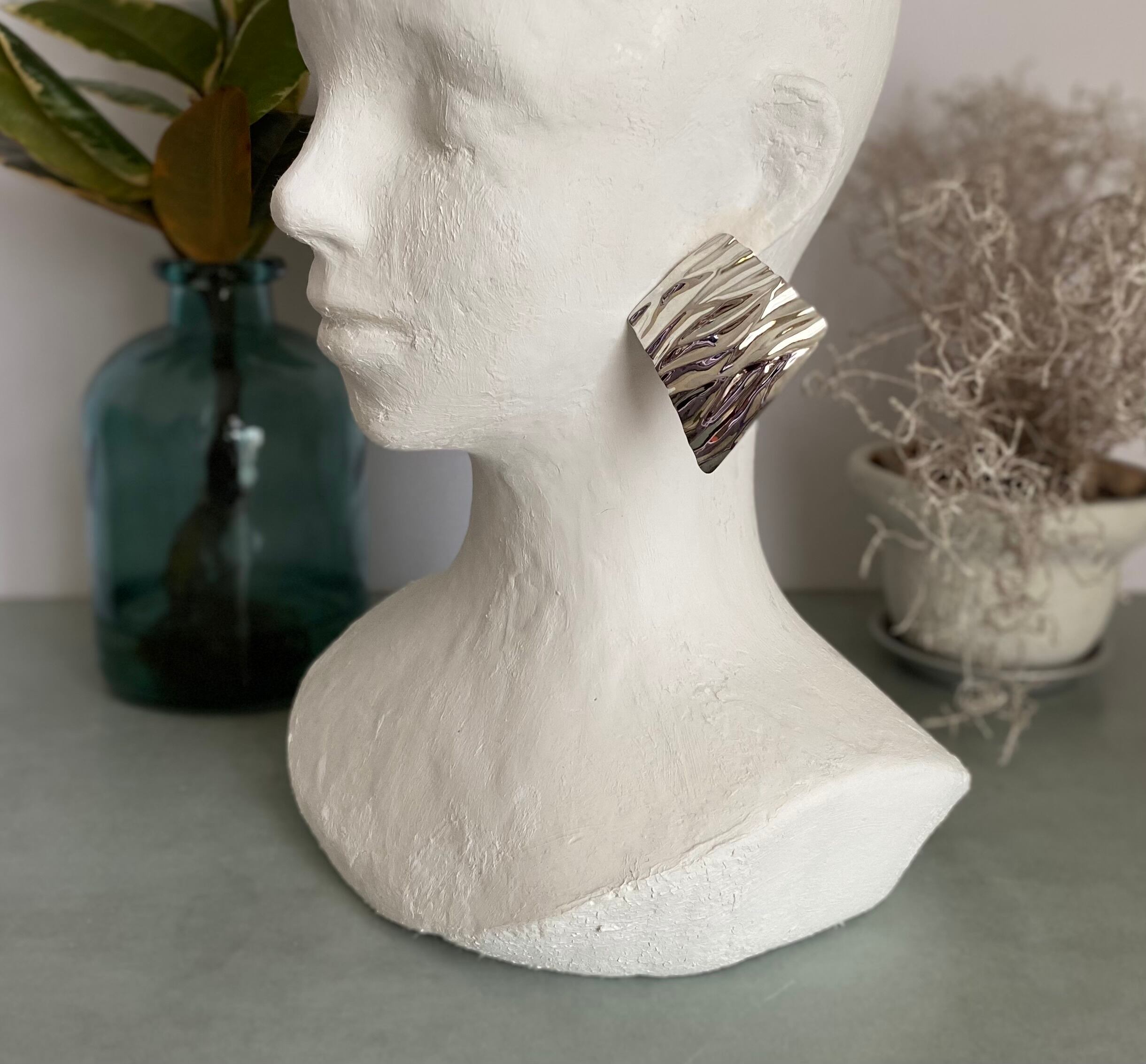 レトロモードな雰囲気のUSAヴィンテージピアス。水面のようなスクチャーがキラキラと輝く個性的なデザイン。大ぶりで存在感がありスタイリングのアクセントにおすすめです。