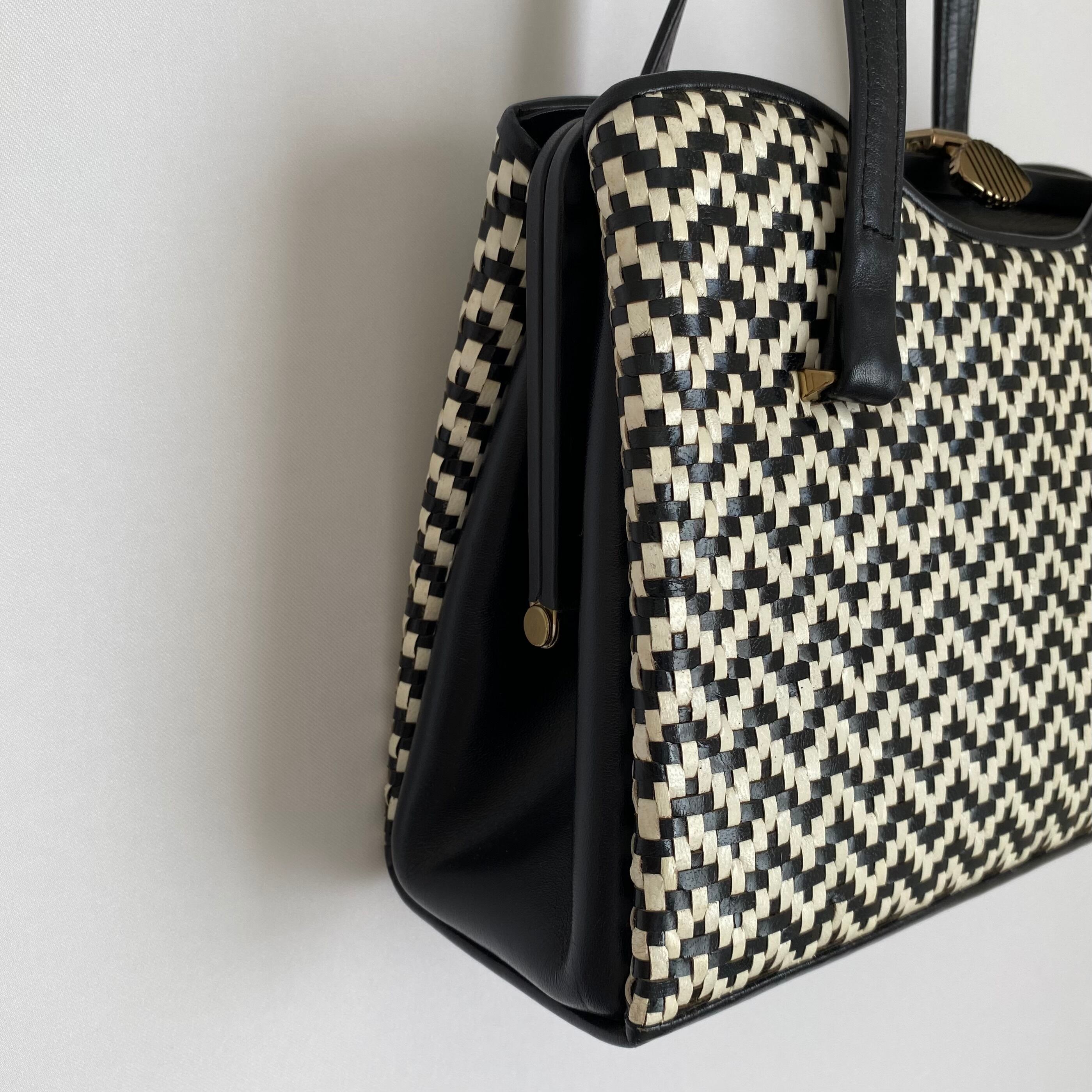 Vintage retro braided leather bag レトロ ヴィンテージ 編み込み デザイン 本革 レザー バッグ