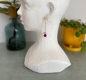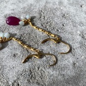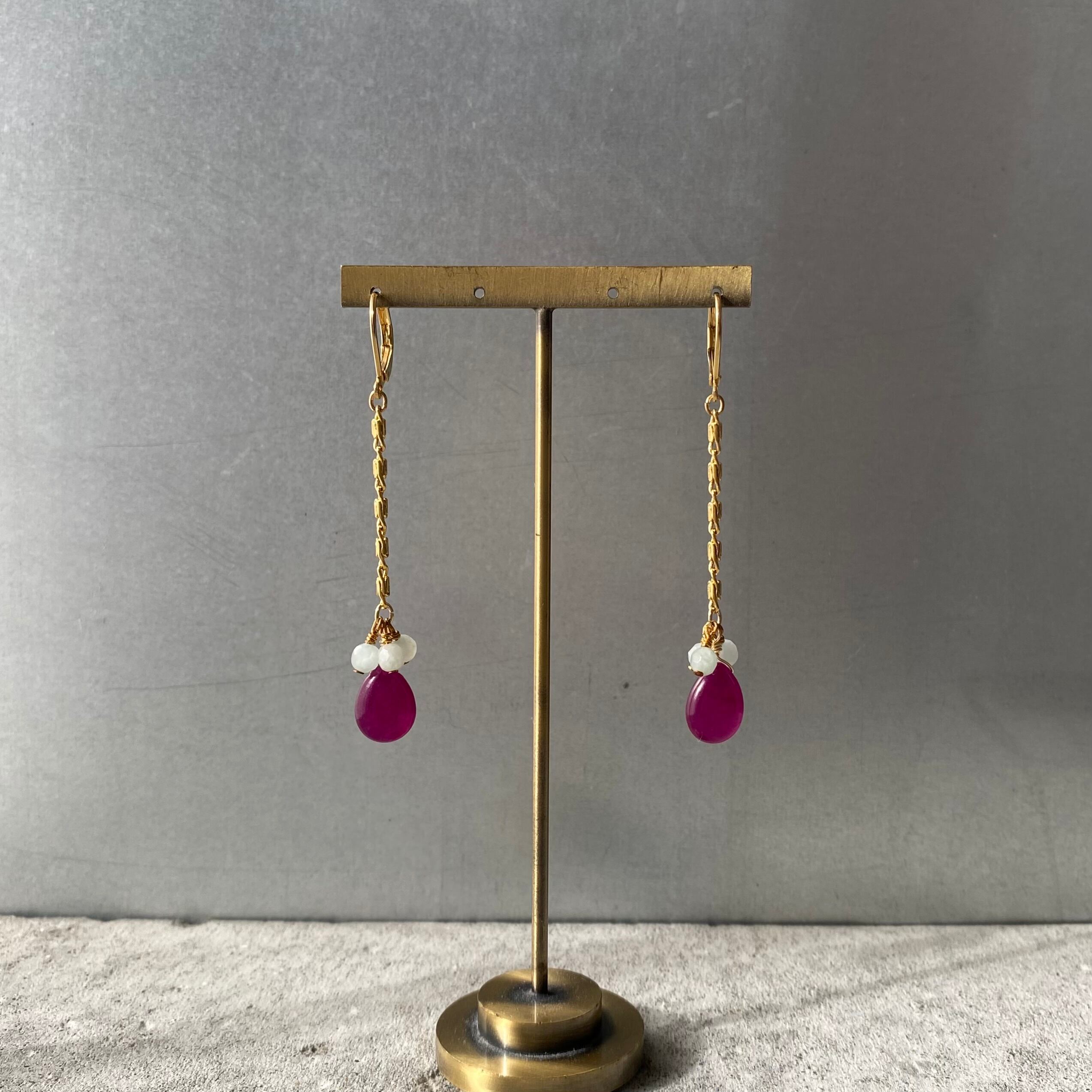 ラズベリーカラーのドロップストーンが揺らめくUSAヴィンテージピアス。身につけやすいデザインでお顔まわりをお洒落に彩ってくれます。
