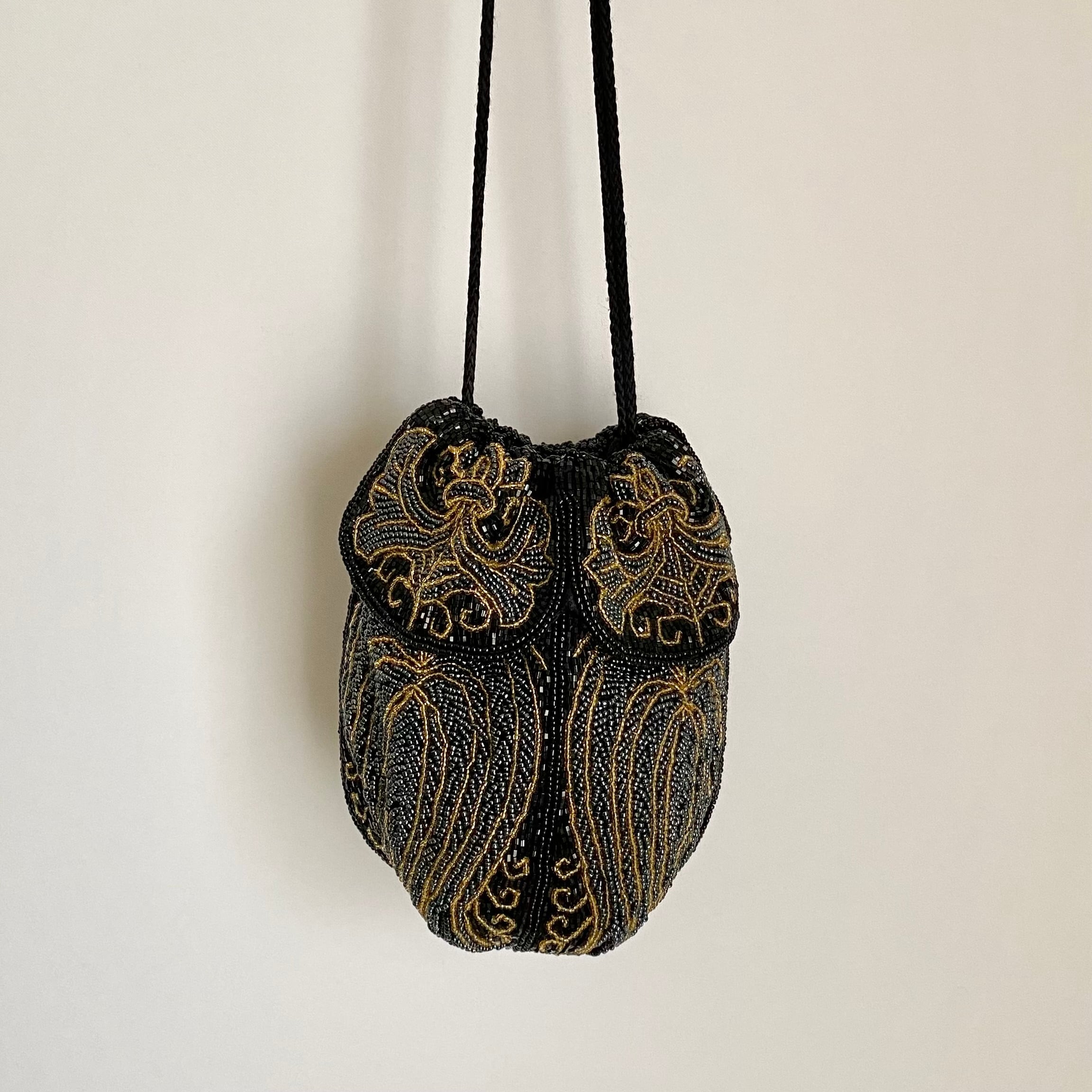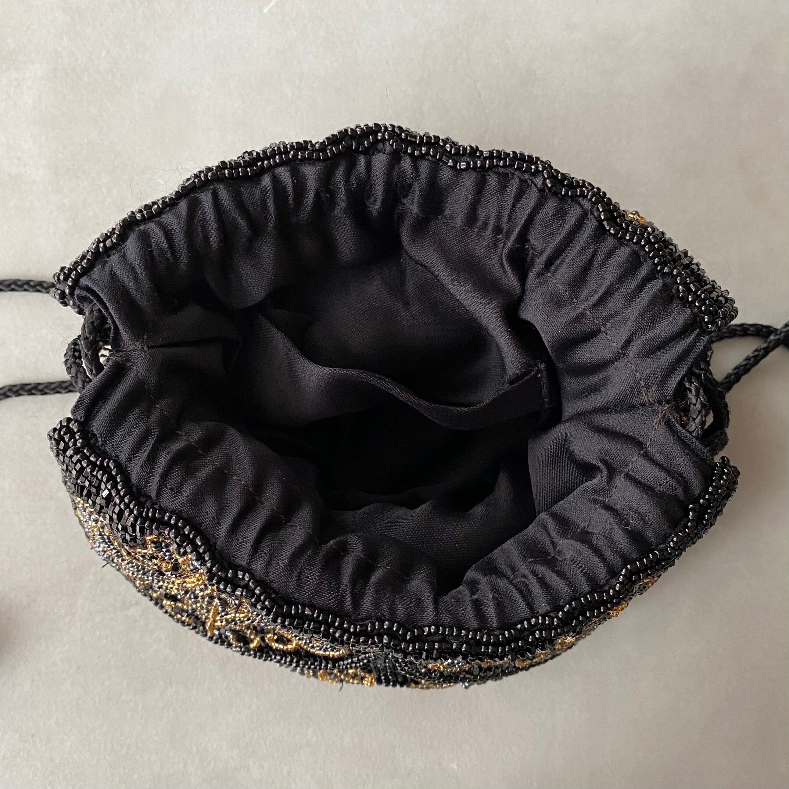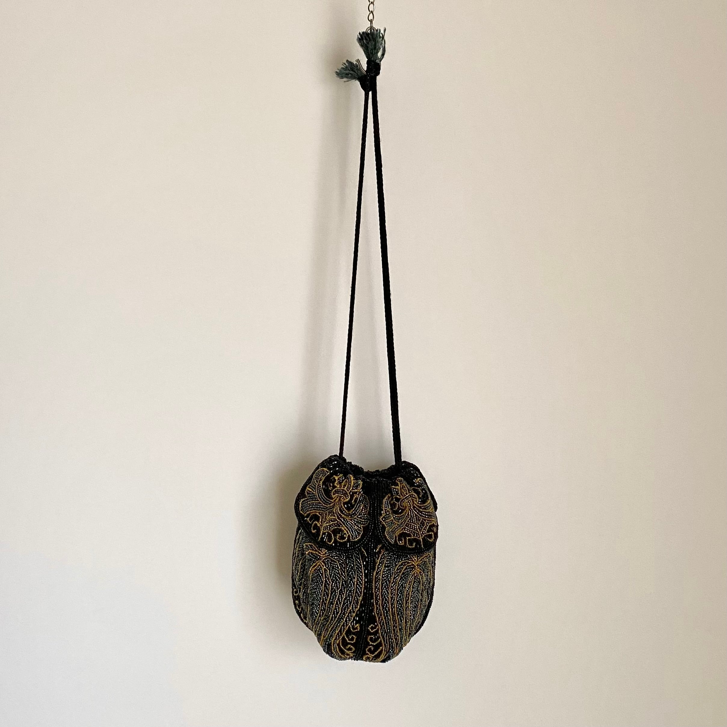 Vintage retro classical design beads embroidery bag レトロ ヴィンテージ クラシカル デザイン ビーズ 刺繍 巾着 バッグ