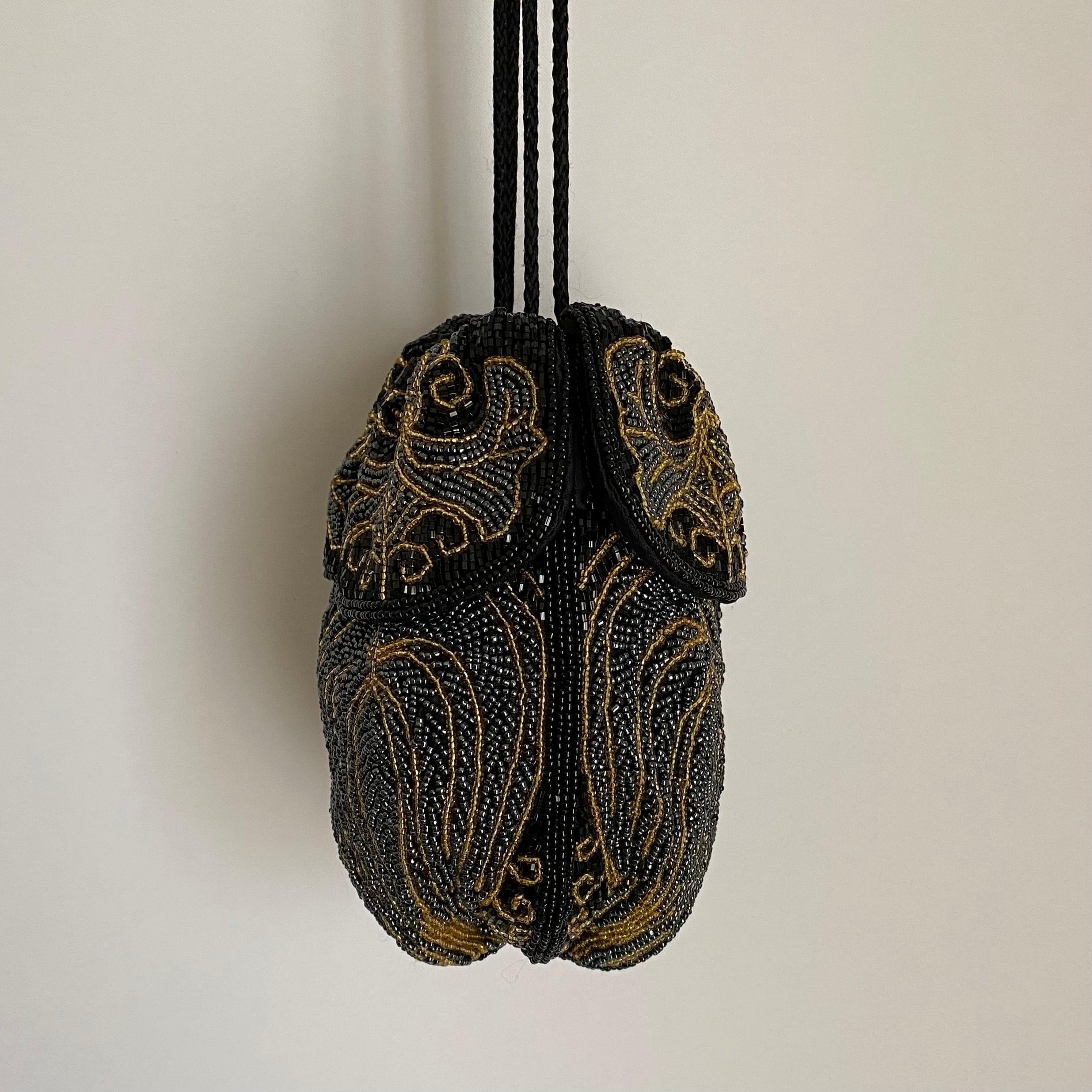 クラシカルなデザインのヴィンテージビーズ刺繍バッグ。繊細なビーズがきらめくお洒落なデザイン。丸みを帯びた可愛らしいフォルムでコンパクトなサイズ感です。アクセサリー感覚でコーディネートに取り入れてみてはいかがでしょうか。