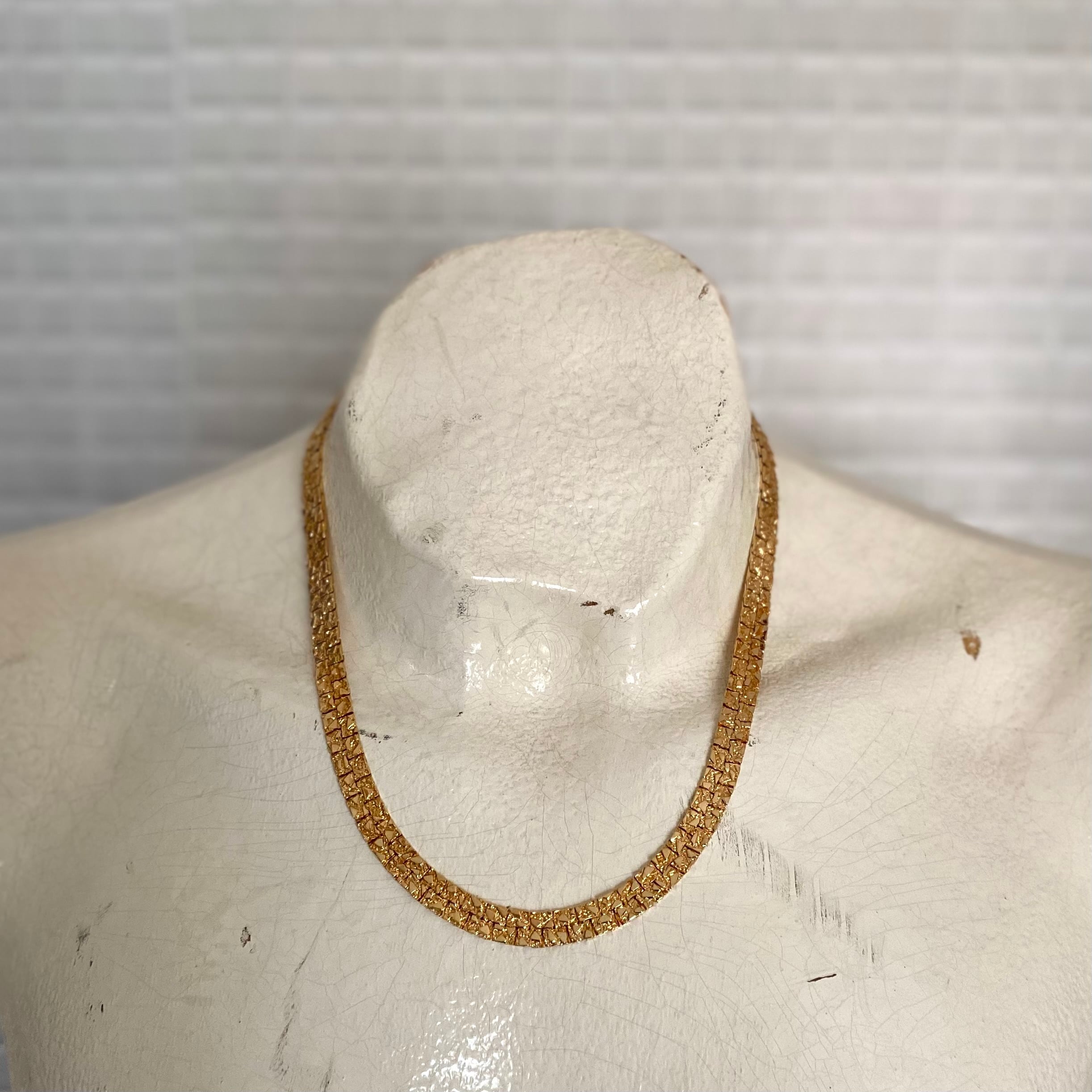 クラシカルな雰囲気のUSAヴィンテージネックレス。フラットチェーンの表面にレトロなテスクチャーが入られた個性的なデザインです。シンプルながら存在感があり様々なスタイルに合わせていただけます。