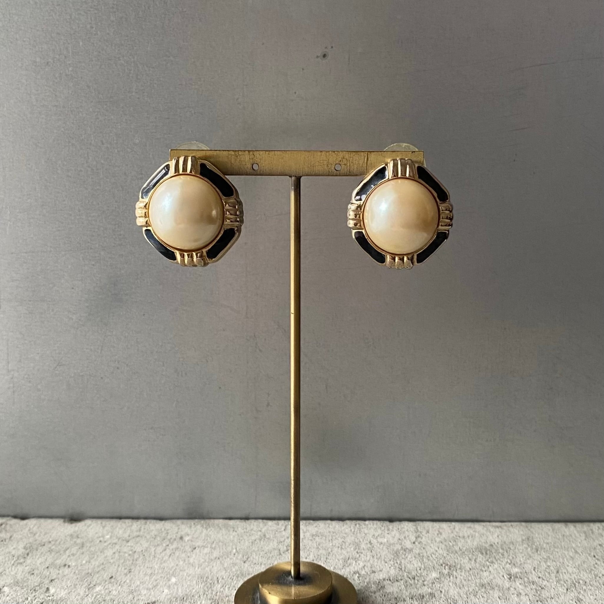 Vintage 80s USA retro classical pearl×enamel pierces レトロ アメリカ ヴィンテージ アクセサリー クラシカル パール×エナメル ピアス