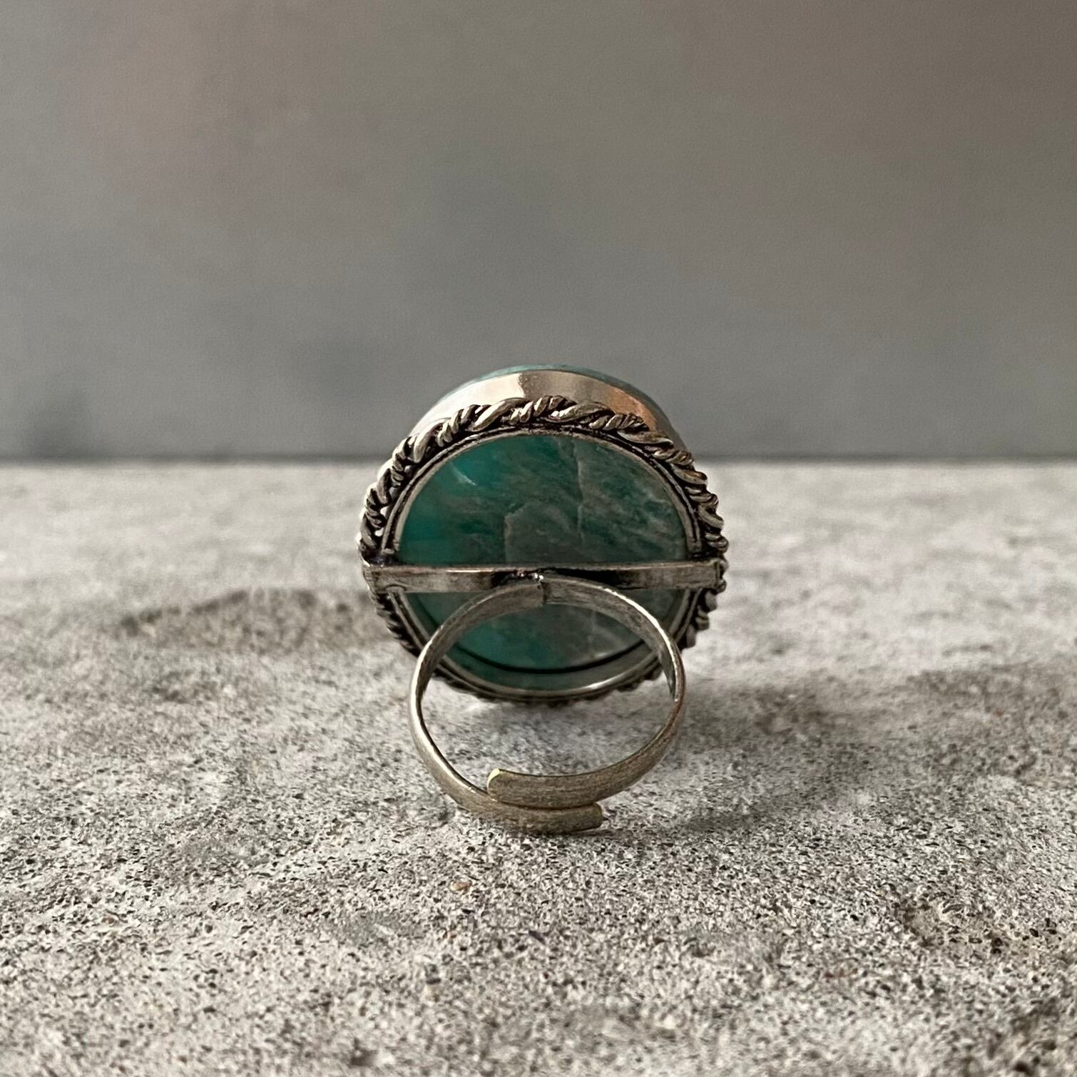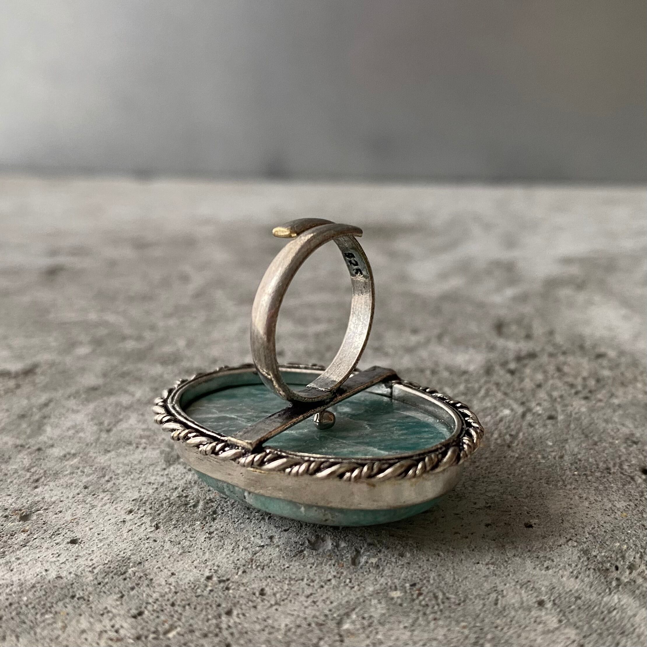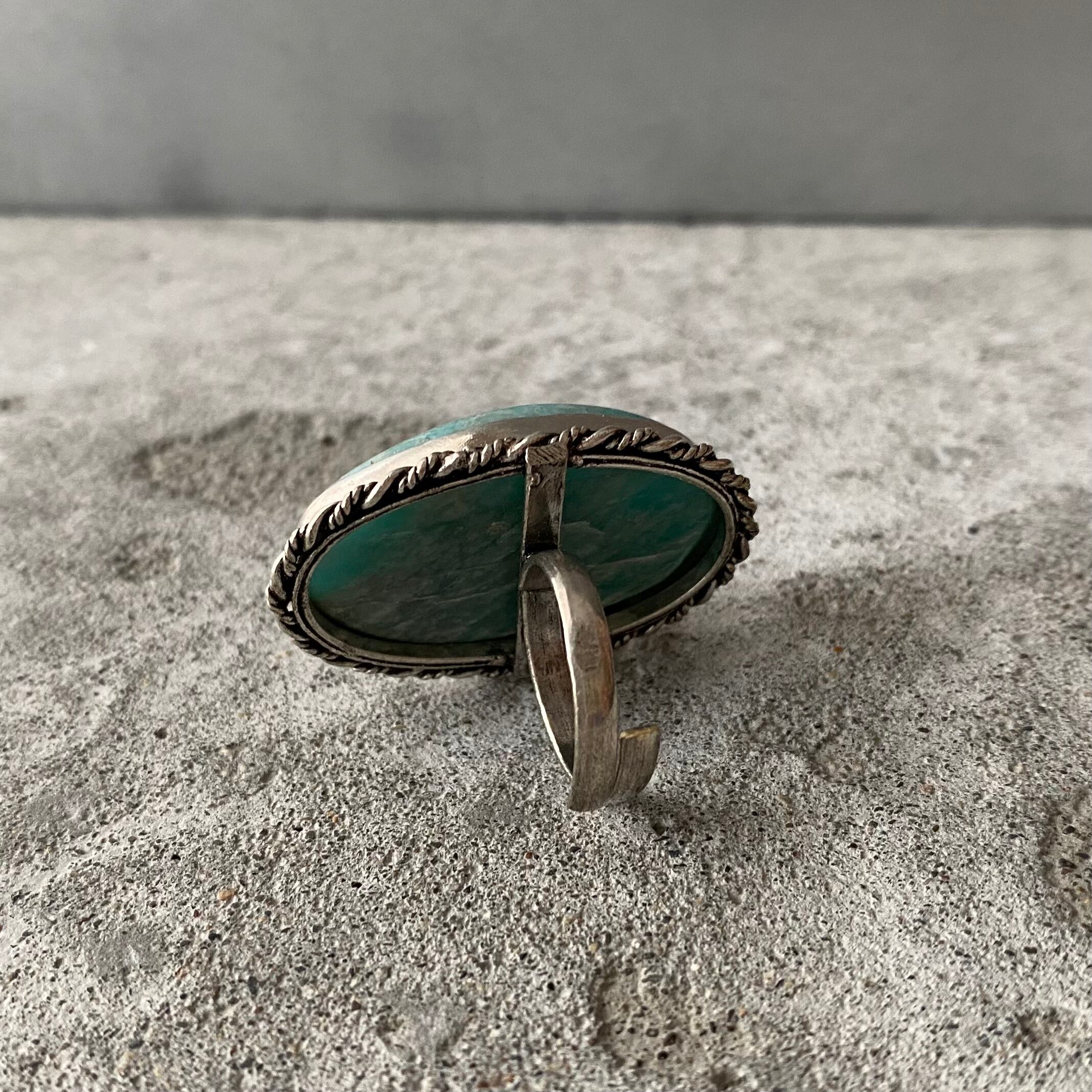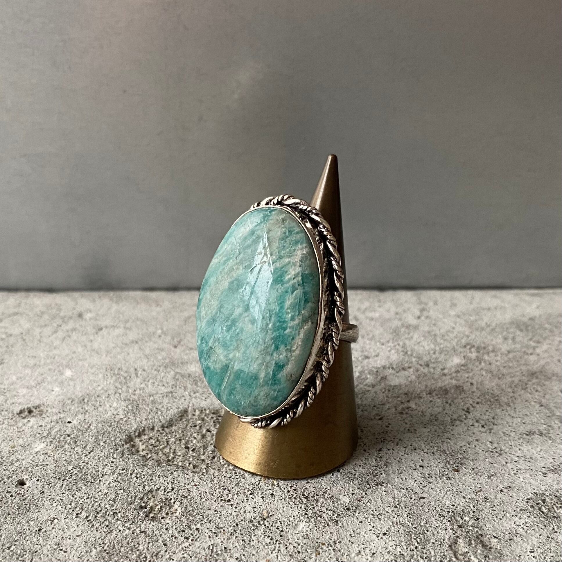Retro natural stone amazonite hand made ring レトロ アクセサリー 天然石 アマゾナイト ハンドメイド リング 指輪