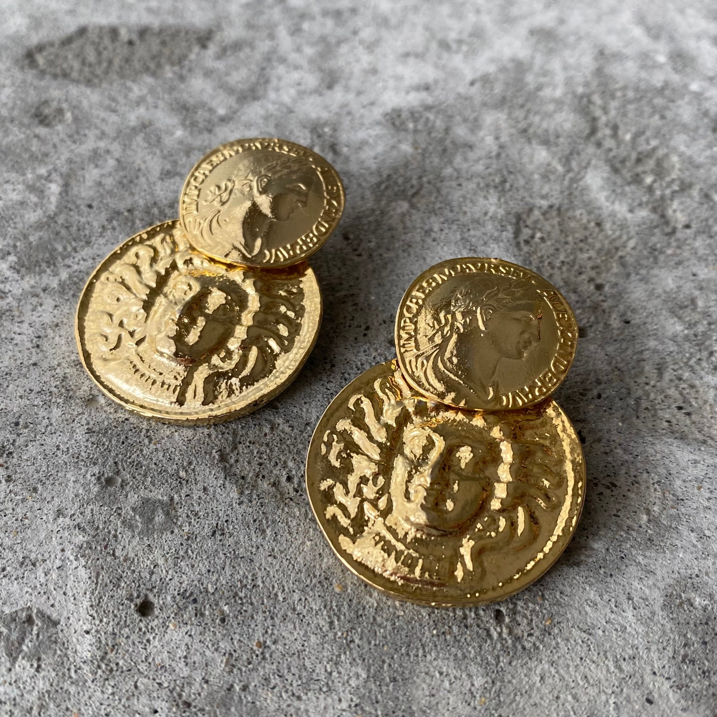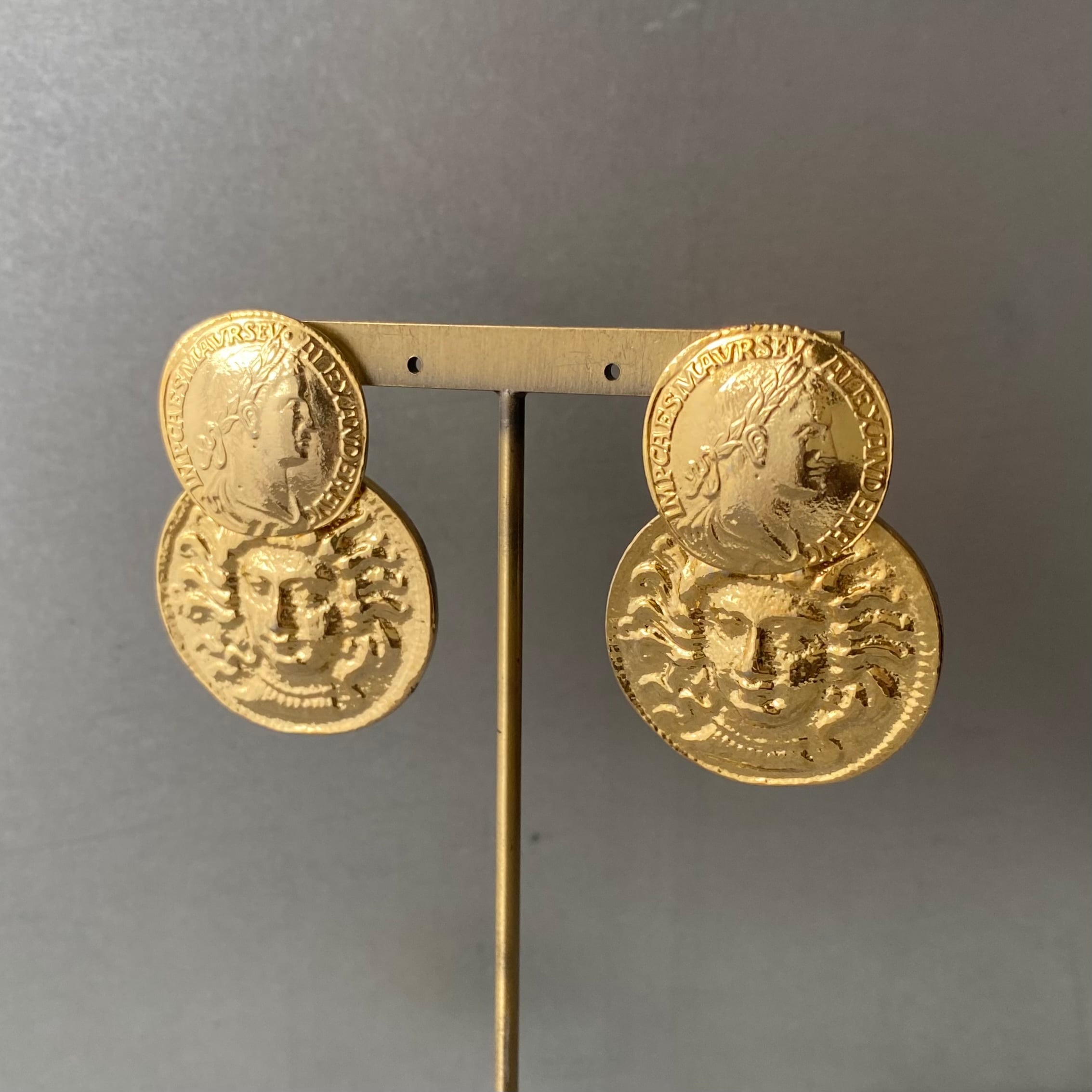 大きなコインが揺らめくレトロなデザインのUSAヴィンテージピアス。存在感がありスタイリングのアクセントにおすすめです。
