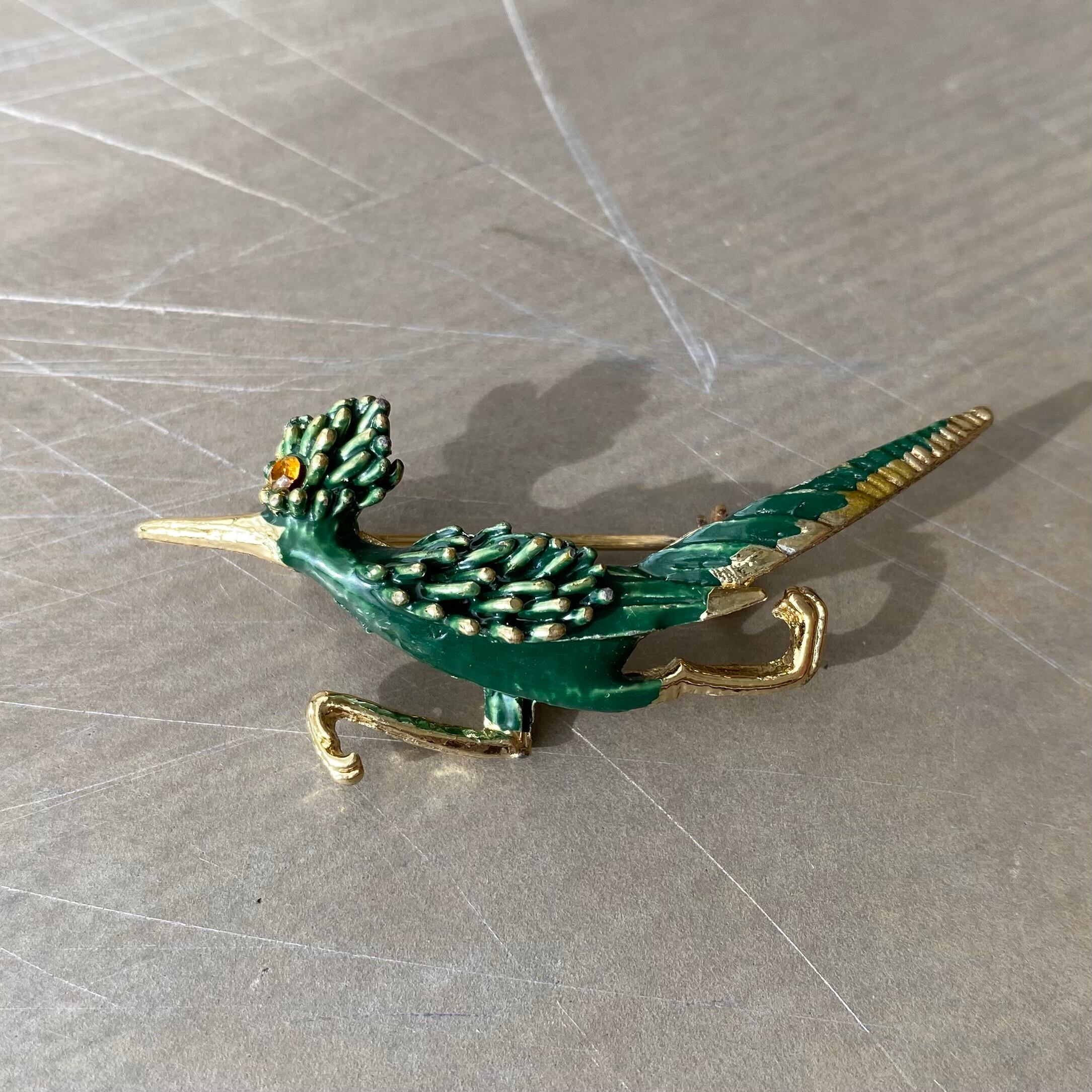 Vintage 70s-80s USA retro green enamel road runner bird brooch レトロ アメリカ ヴィンテージ アクセサリー グリーン エナメル ロードランナー バード 鳥 ブローチ
