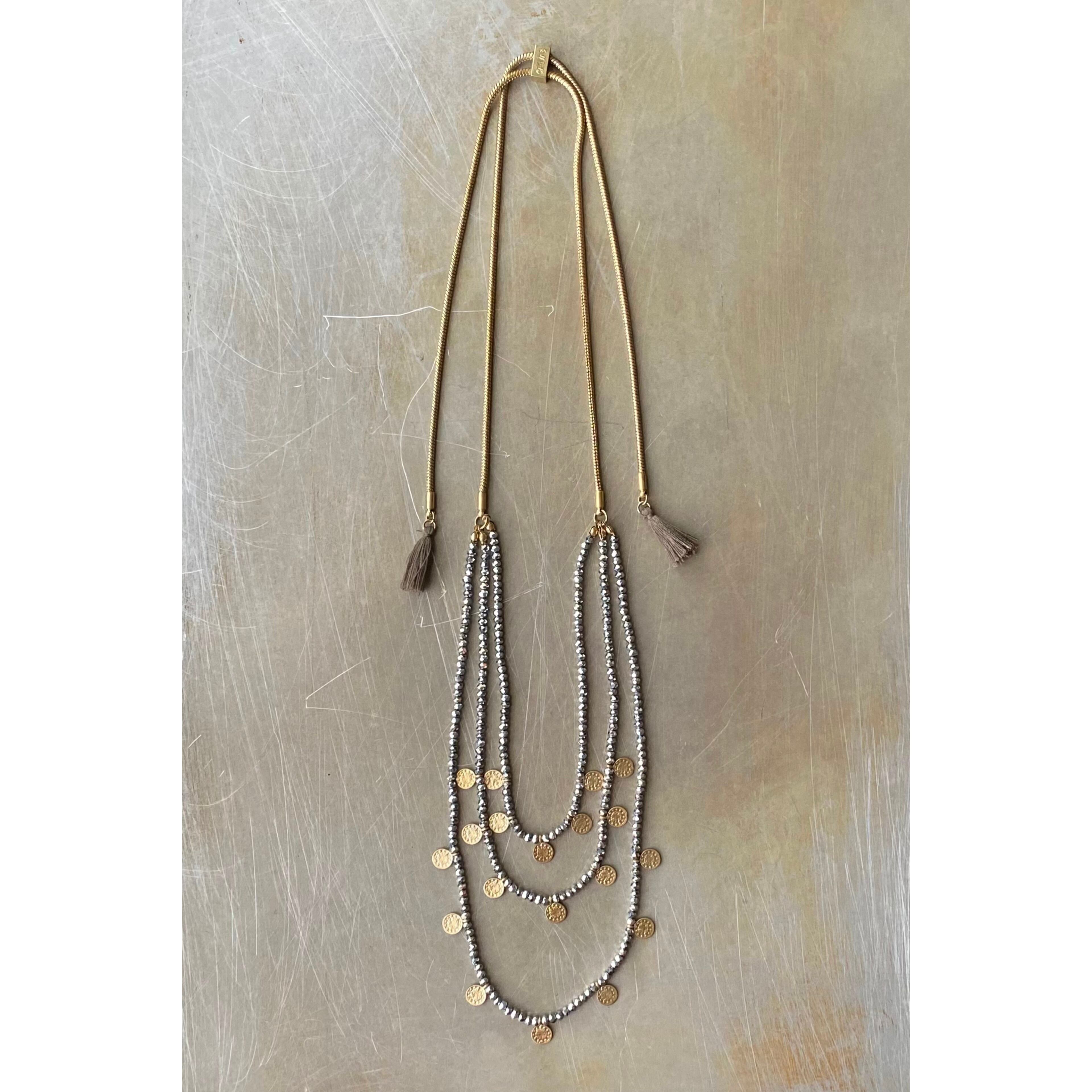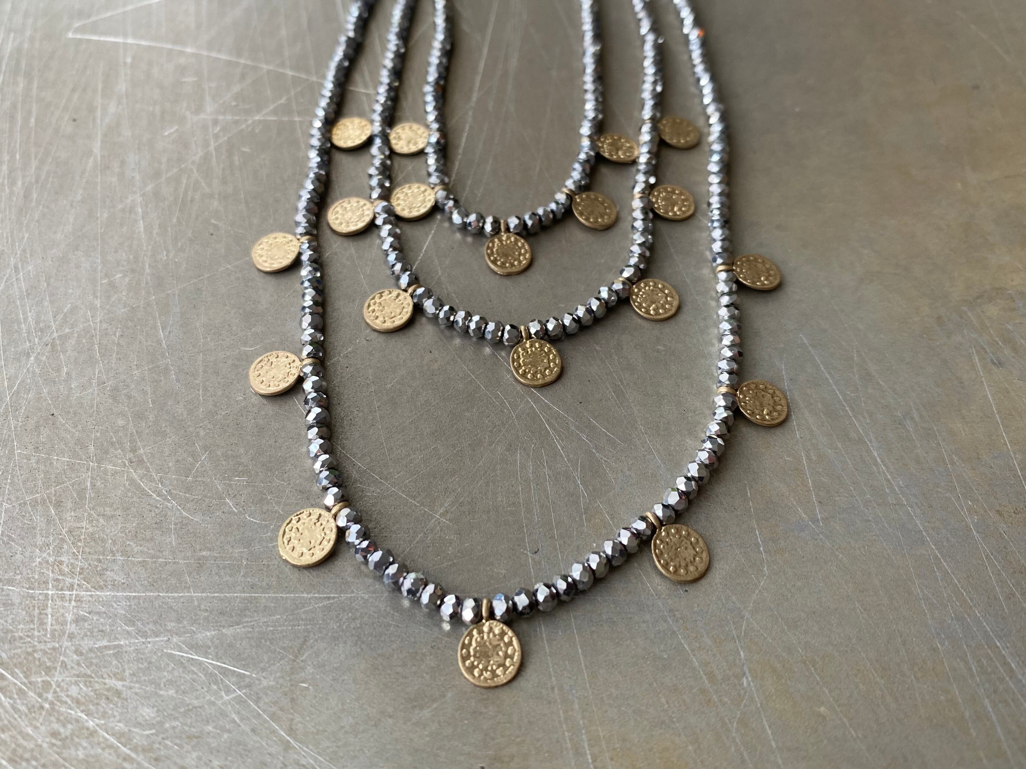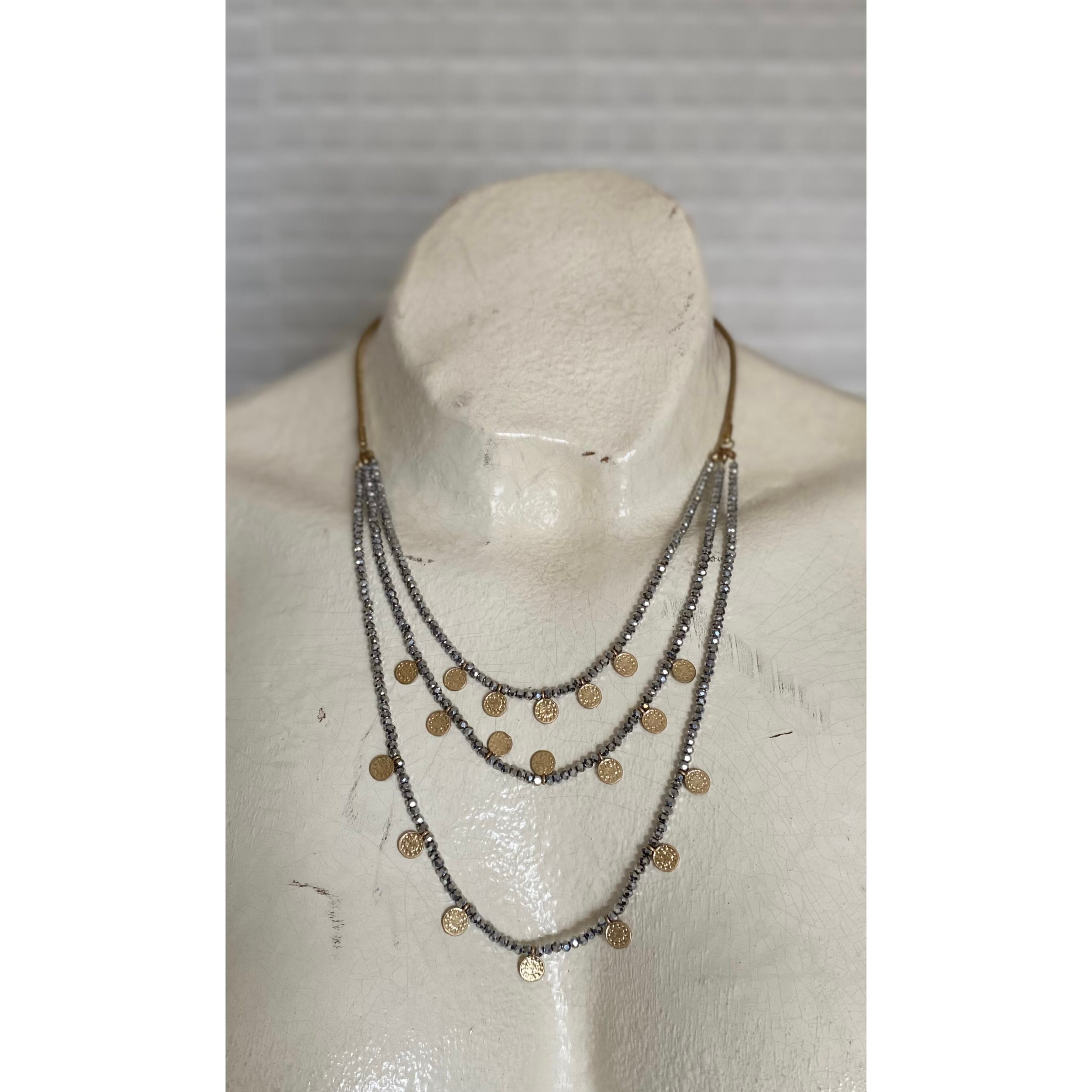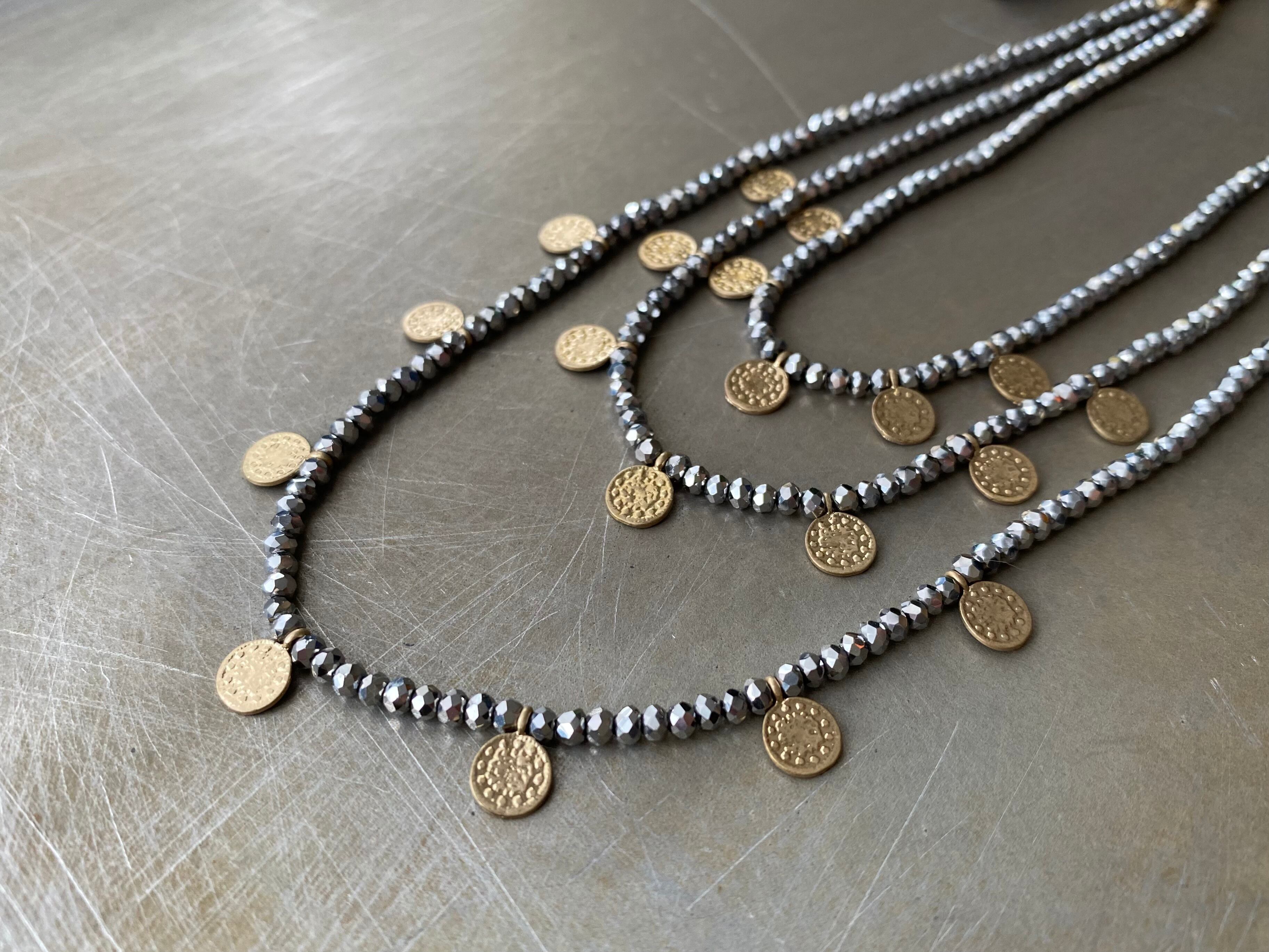 Used USA retro metallic beads necklace レトロ アメリカ ユーズド アクセサリー メタリック ビーズ 3連 ネックレス