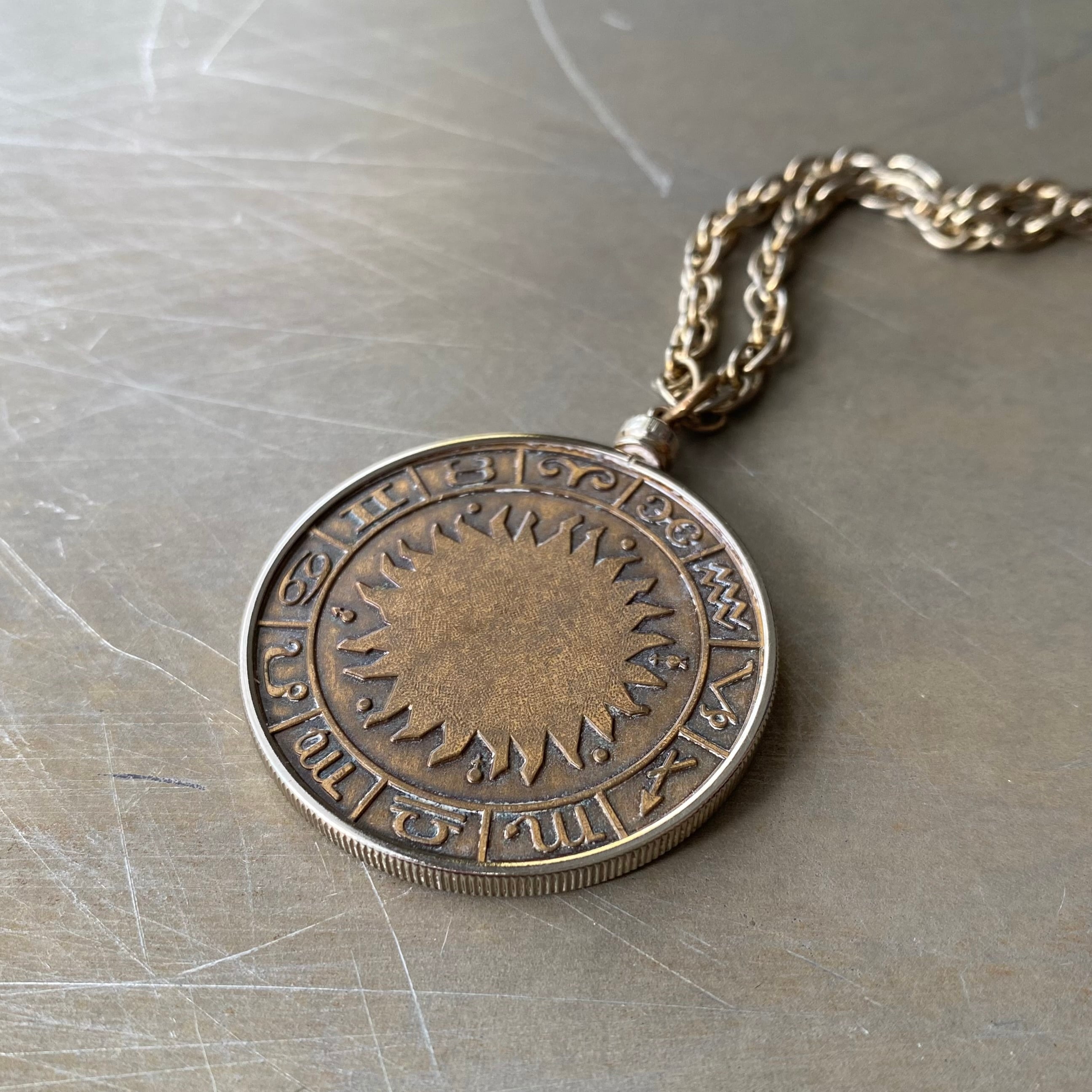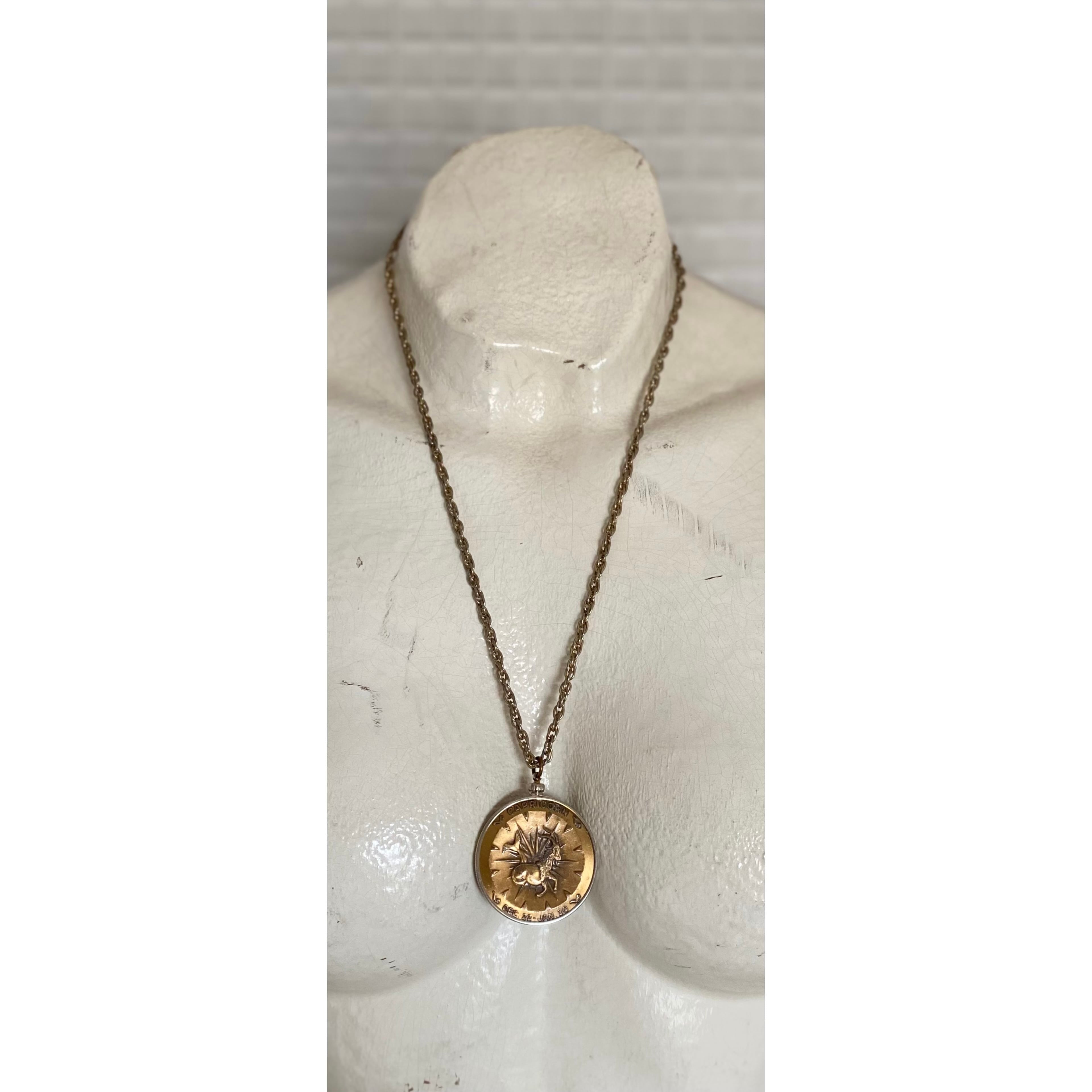 Vintage 70s USA retro zodiac capricorn sea goat coin necklace レトロ アメリカ ヴィンテージ アクセサリー 星座 山羊座 コイン ネックレス
