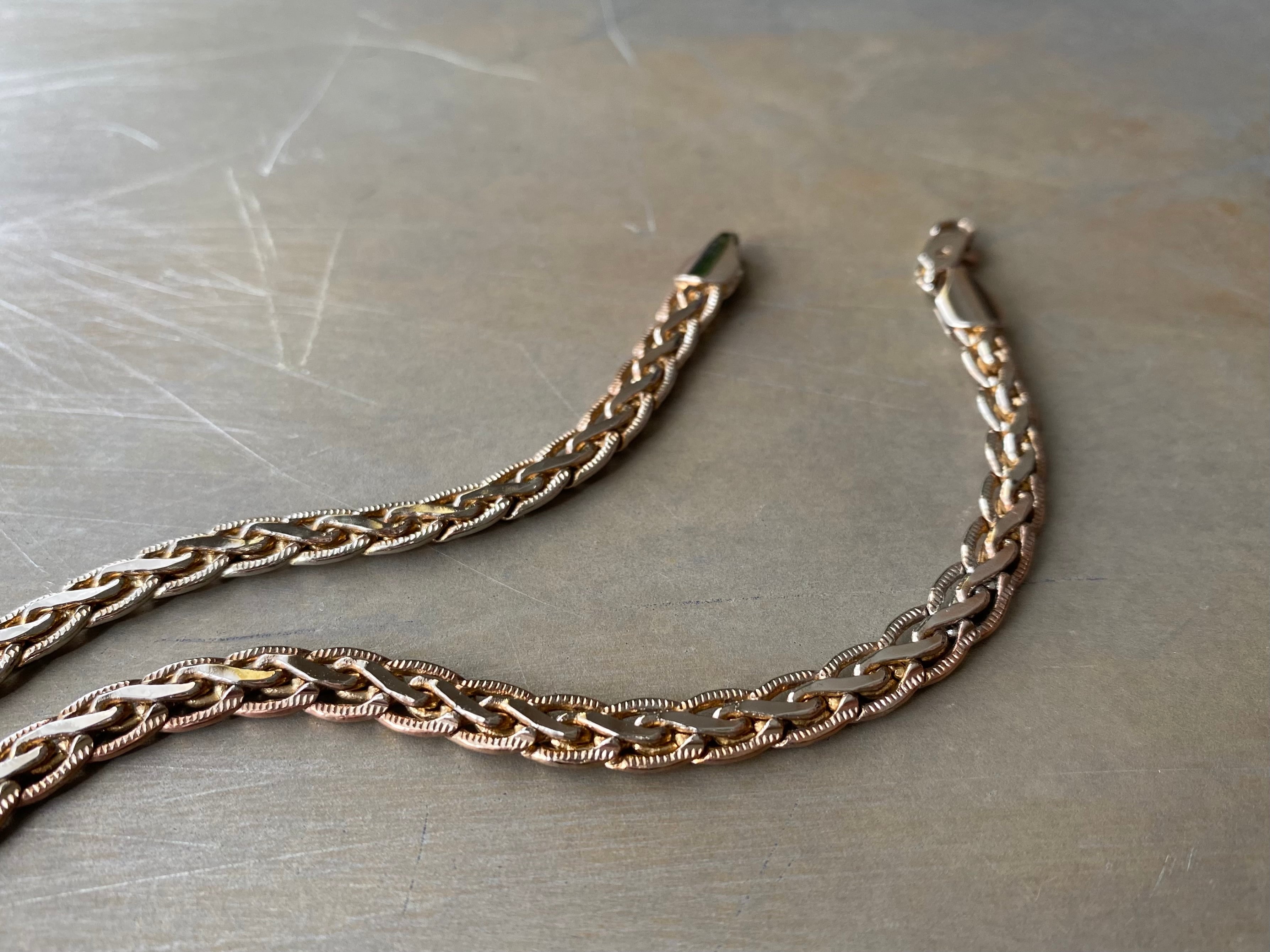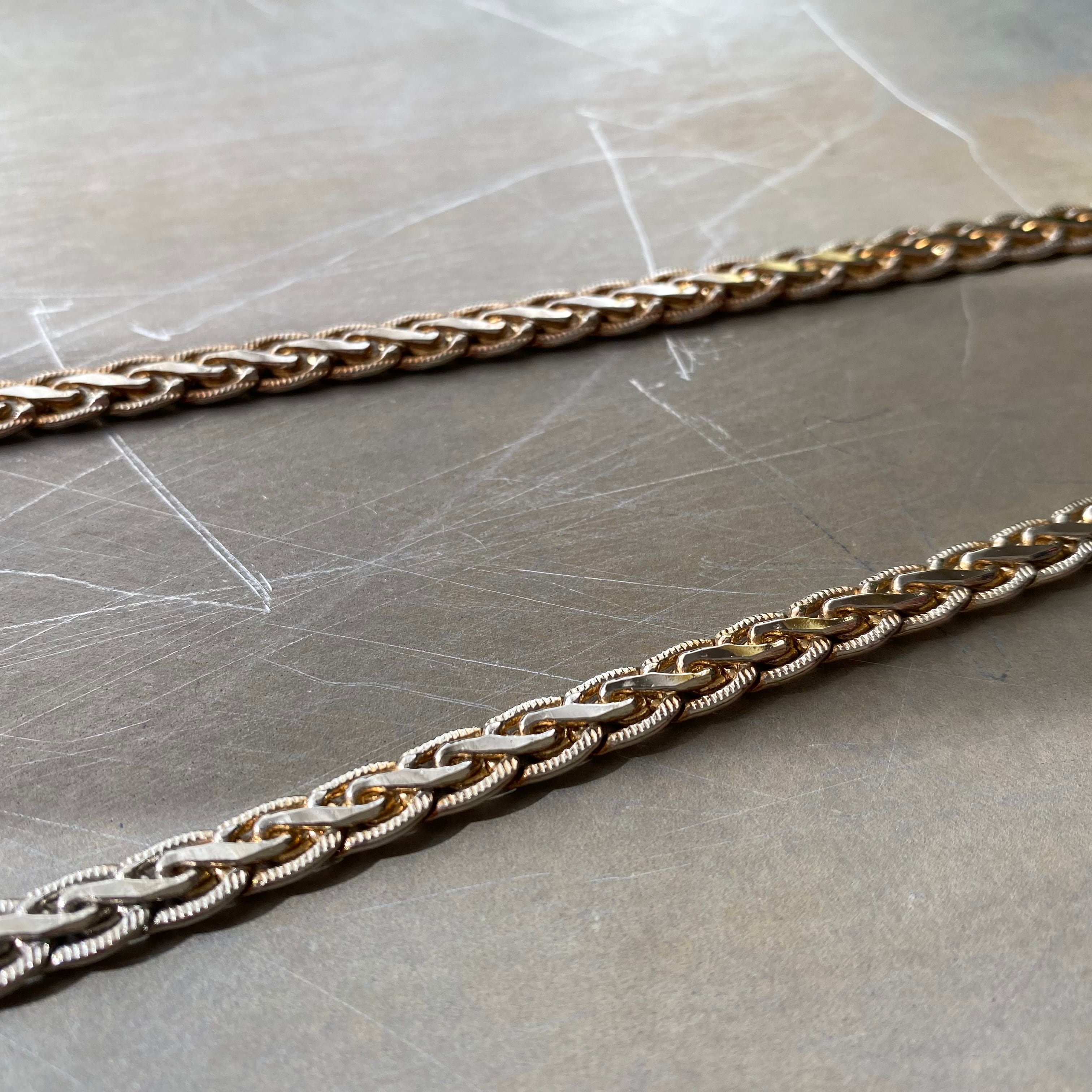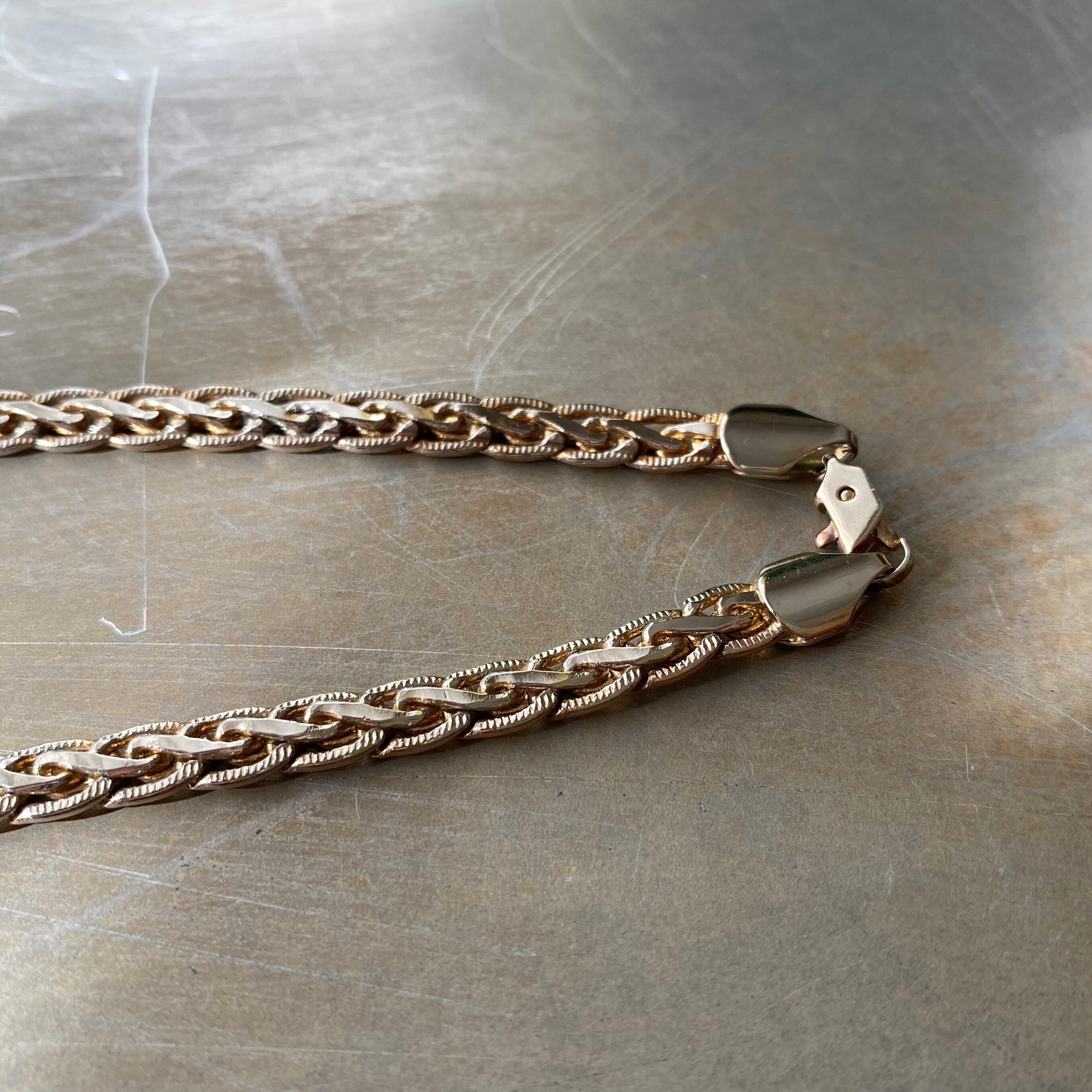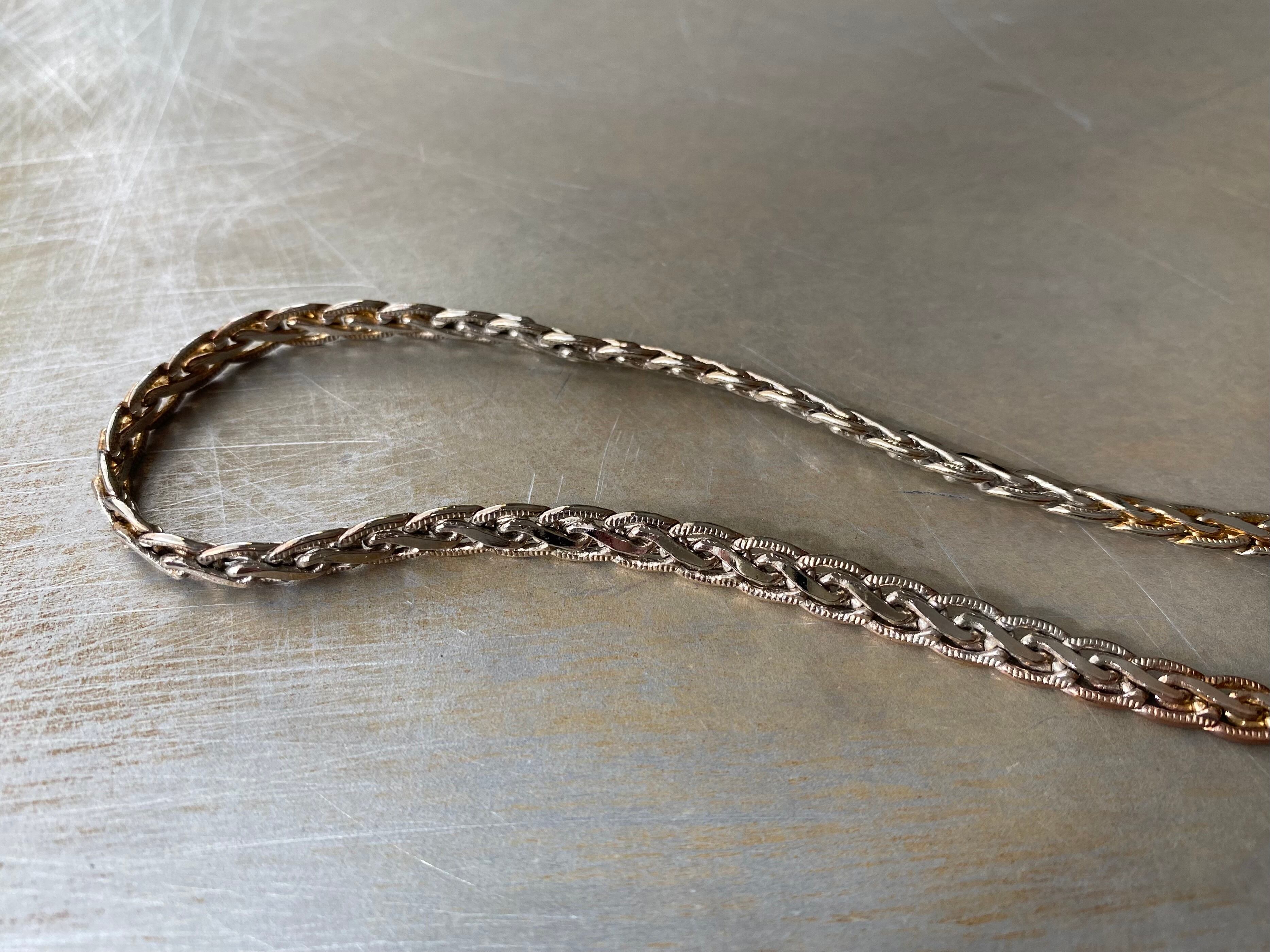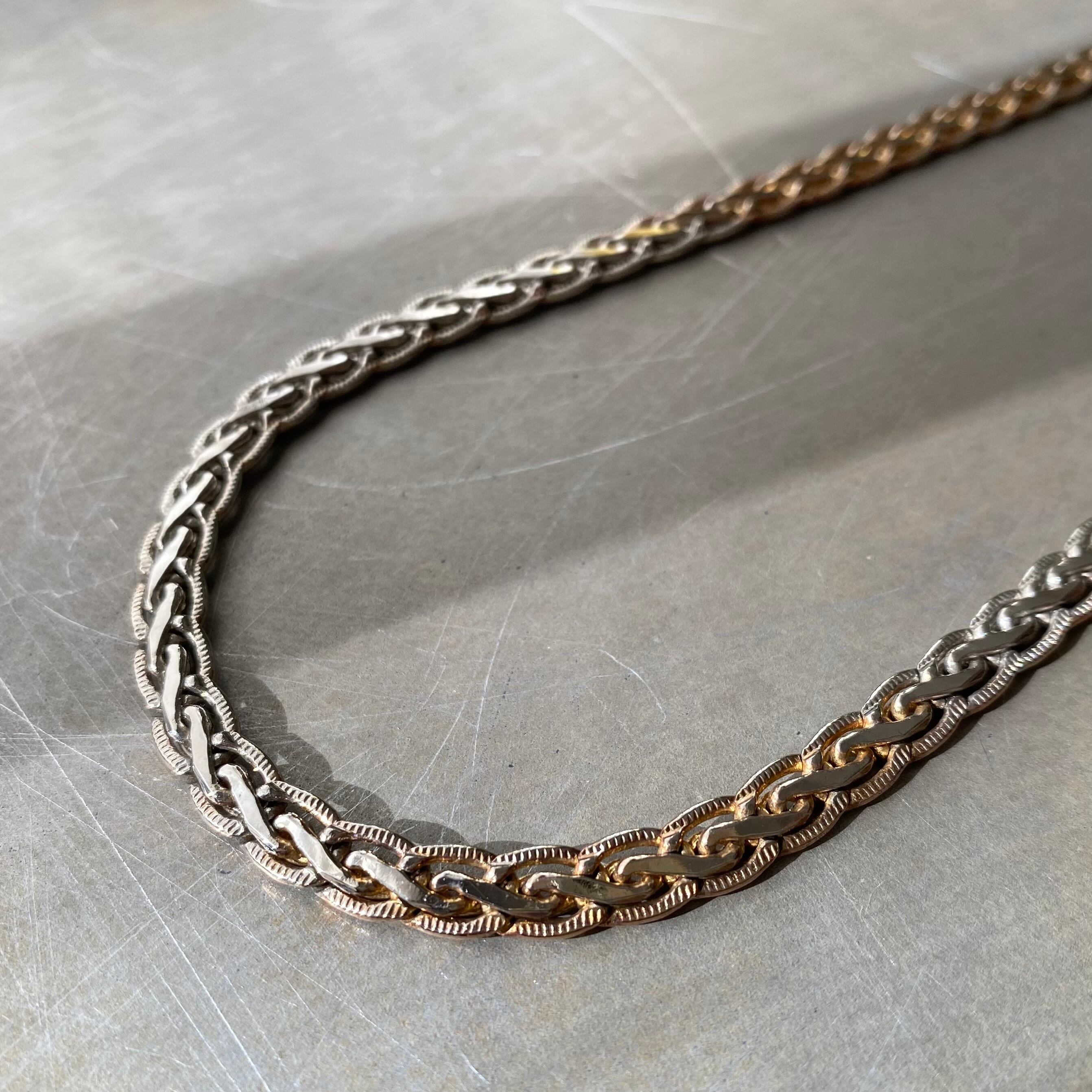 クラシカルな雰囲気のUSAヴィンテージネックレス。重厚感のあるしっかりとした作りのデザインチェーンが魅力的。古びた色味もレトロな風合いがあります。シンプルながら存在感があり古着など様々なスタイルに合わせていただけます。