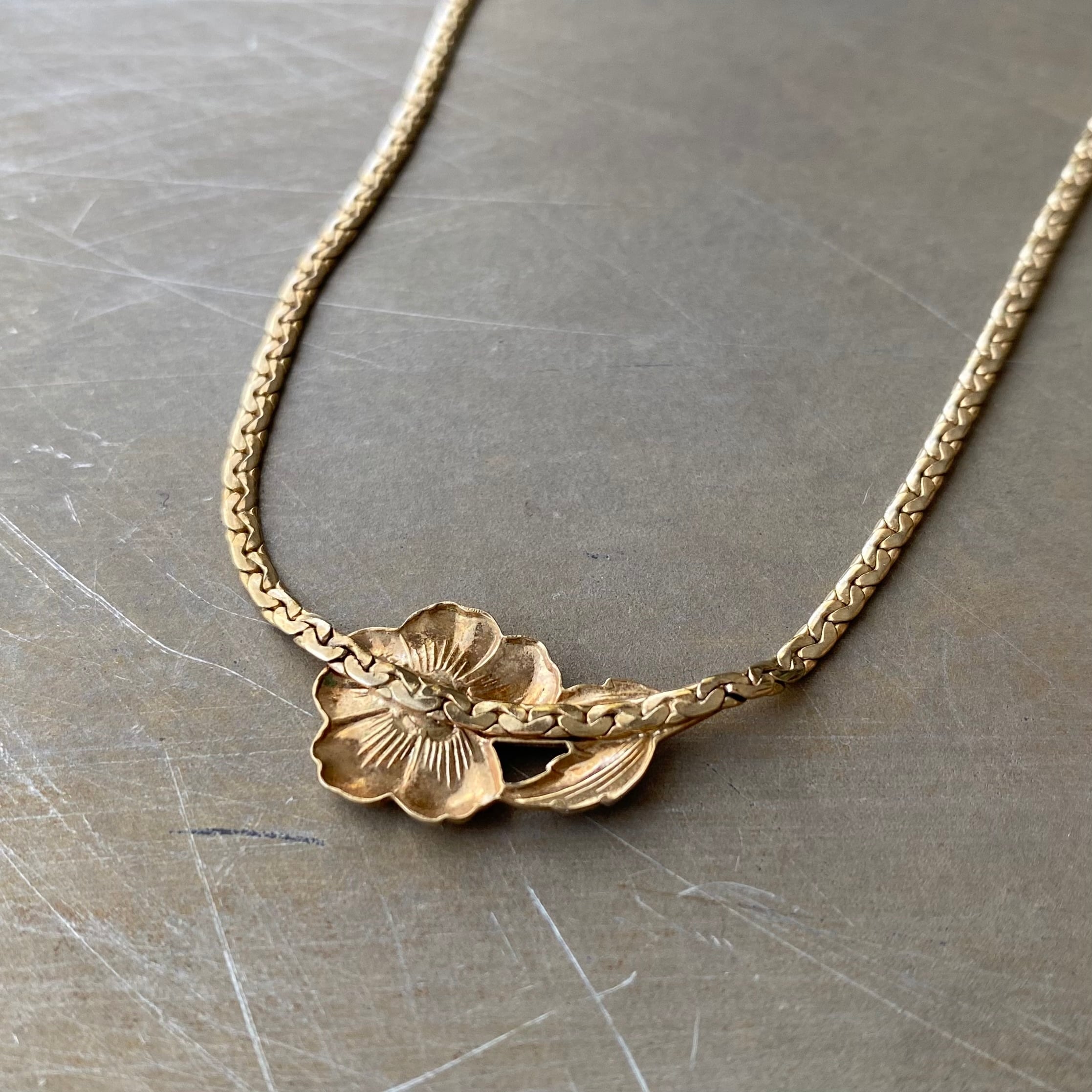Vintage 70s-80s USA Sarah Coventry botanical flower necklace レトロ アメリカ ヴィンテージ アクセサリー サラコベントリー ボタニカル フラワー ゴールド ネックレス