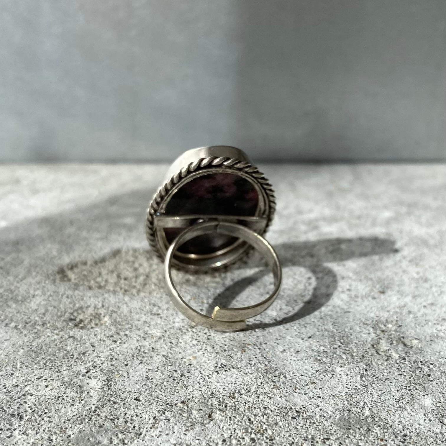 Retro natural stone rhodonite hand made ring レトロ アクセサリー 天然石 ロードナイト ハンドメイド リング 指輪