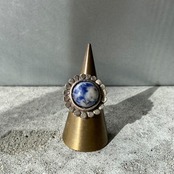 まるで青空のような美しい模様が魅力的な天然石リング。「ソーダライト」の石言葉は「夢」「目標達成」と言われ、持ち主が夢や目標に向かうためのエネルギーを与えてくれると言い伝えられています。身につけやすいサイズ感で古着など様々なスタイルに合わせていただけます。