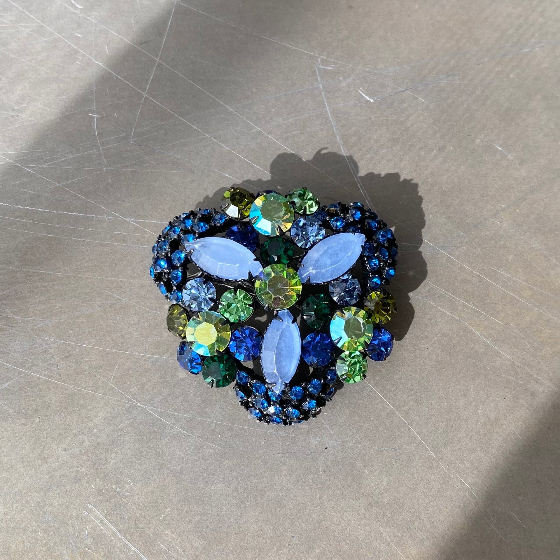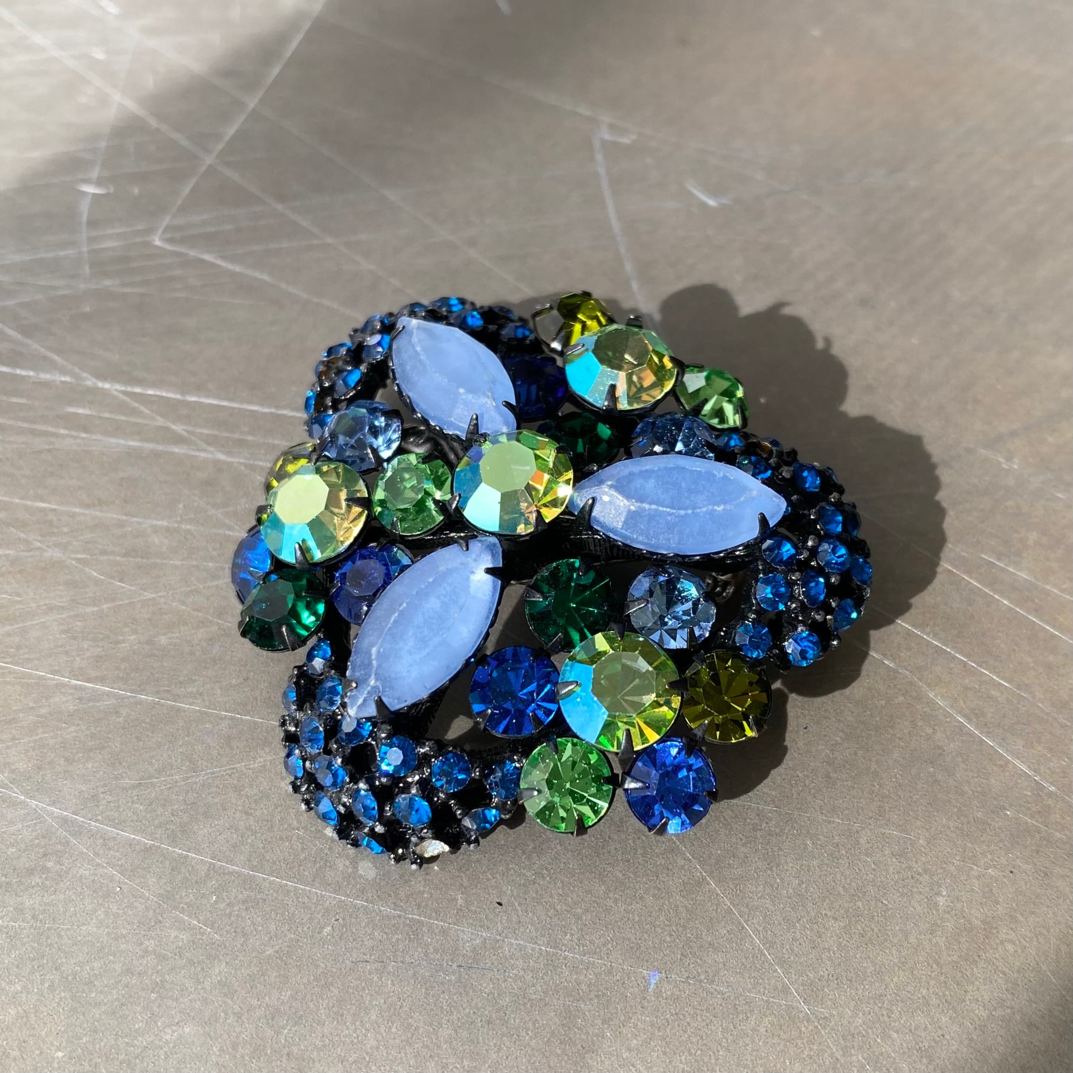 Vintage 70s-80s USA retro blue×green bijou brooch レトロ アメリカ ヴィンテージ アクセサリー ブルー×グリーン ビジュー ブローチ