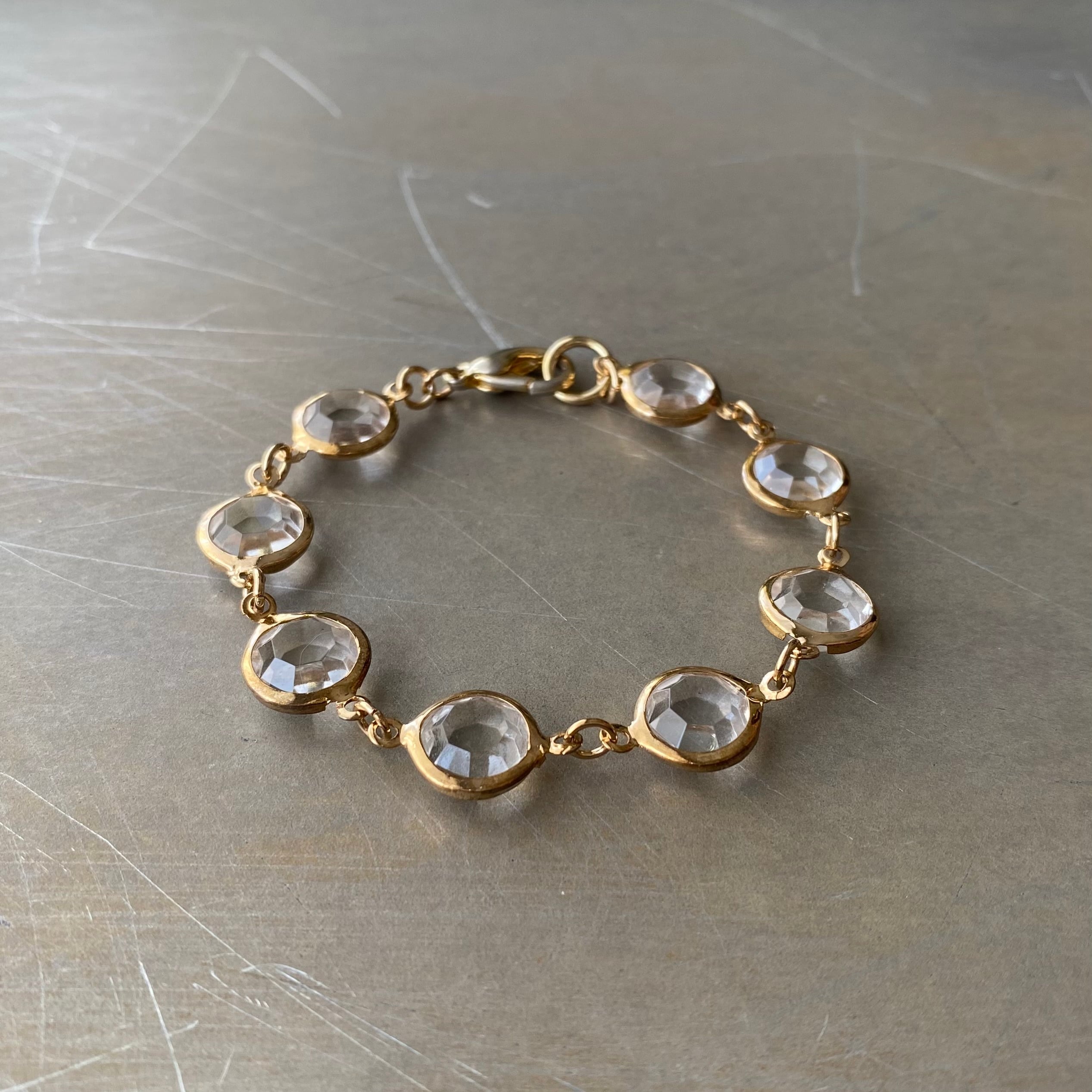 ラウンドカットのクリスタルがきらめくUSAヴィンテージブレスレット。ビジューが美しく見えるシンプルな石座の作りがポイント。軽やかな着け心地で様々なスタイルに合わせていただけます。
