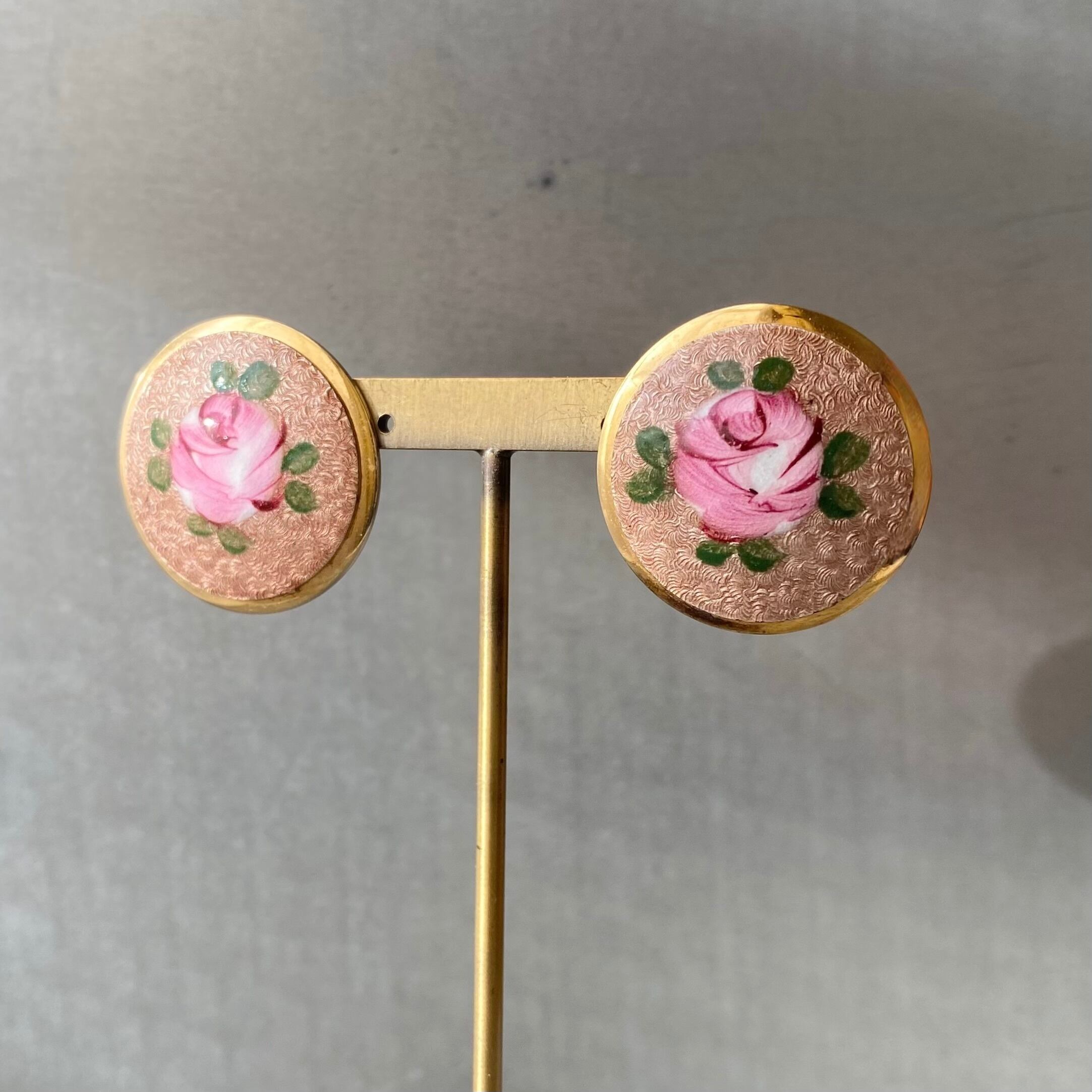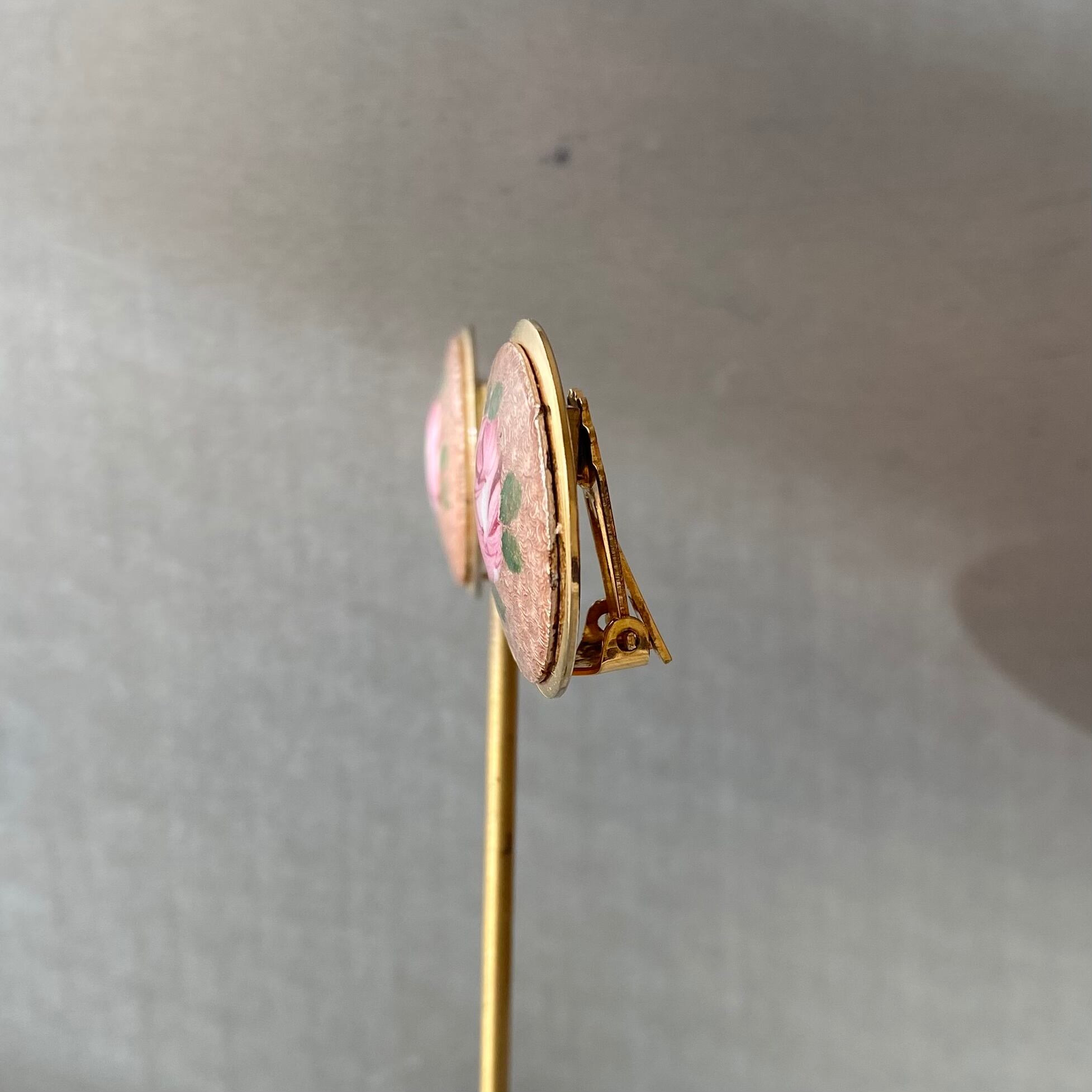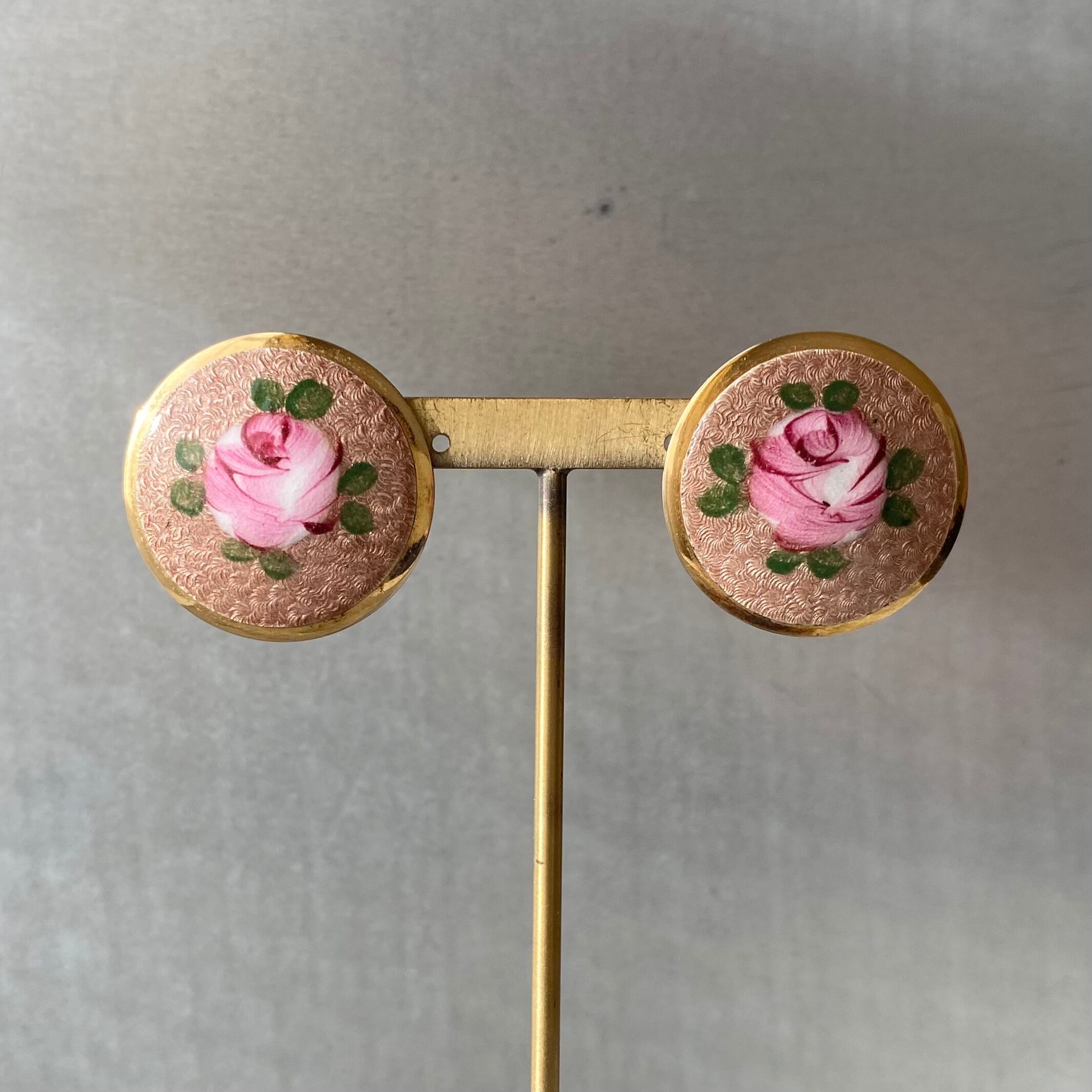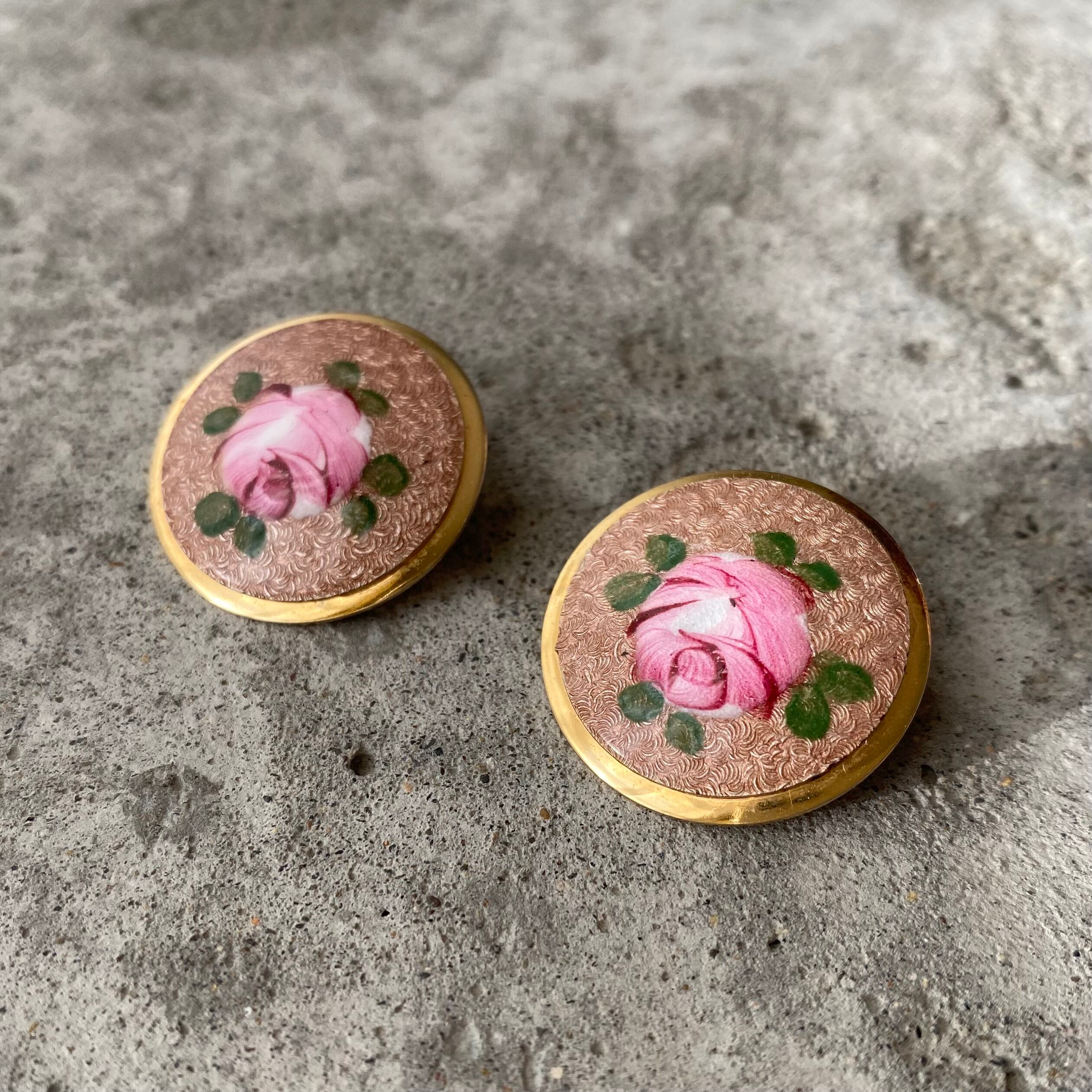 Vintage 70s-80s USA retro botanical flower rose paint enamel earring レトロ アメリカ ヴィンテージ アクセサリー ボタニカル フラワー ローズ 薔薇 ペイント エナメル イヤリング