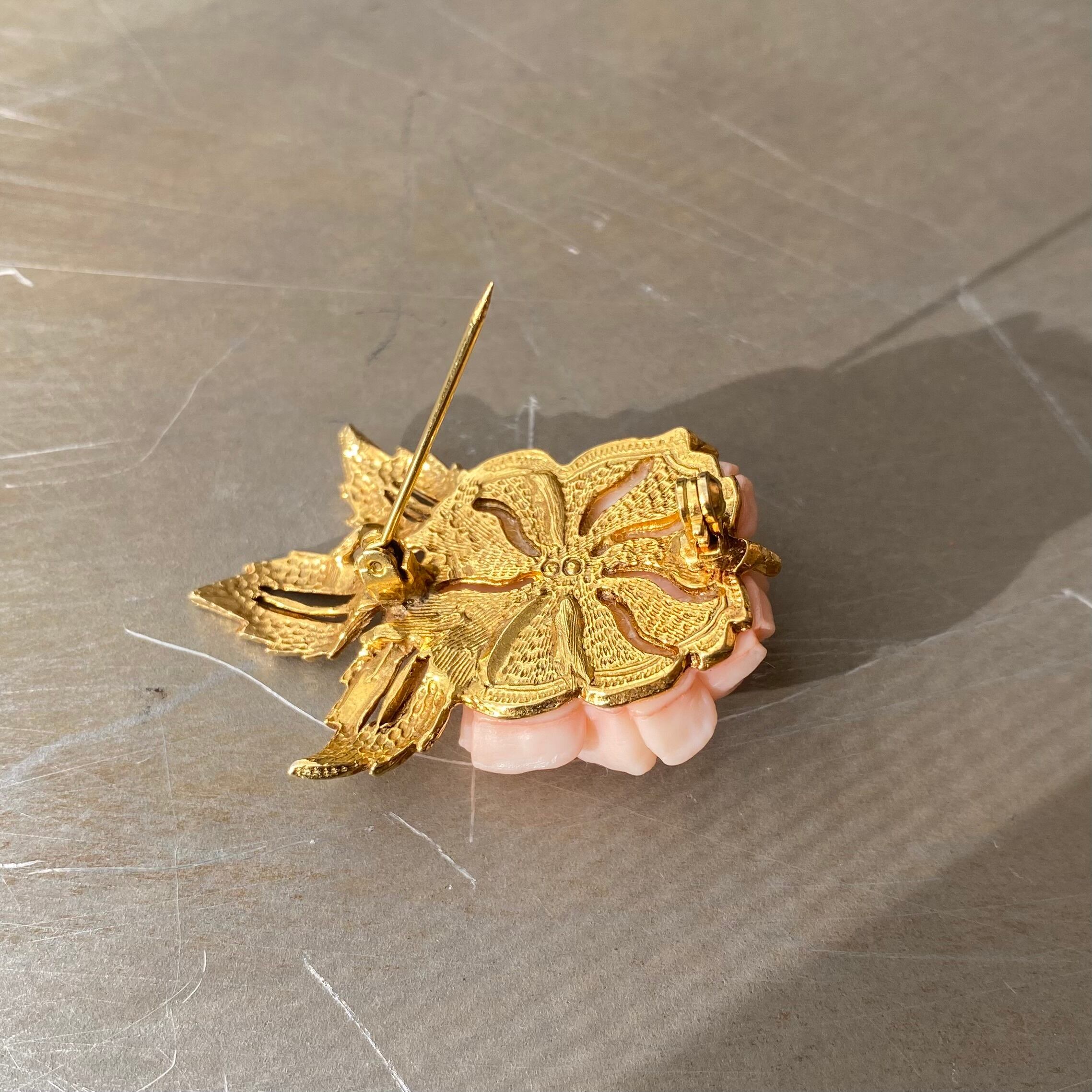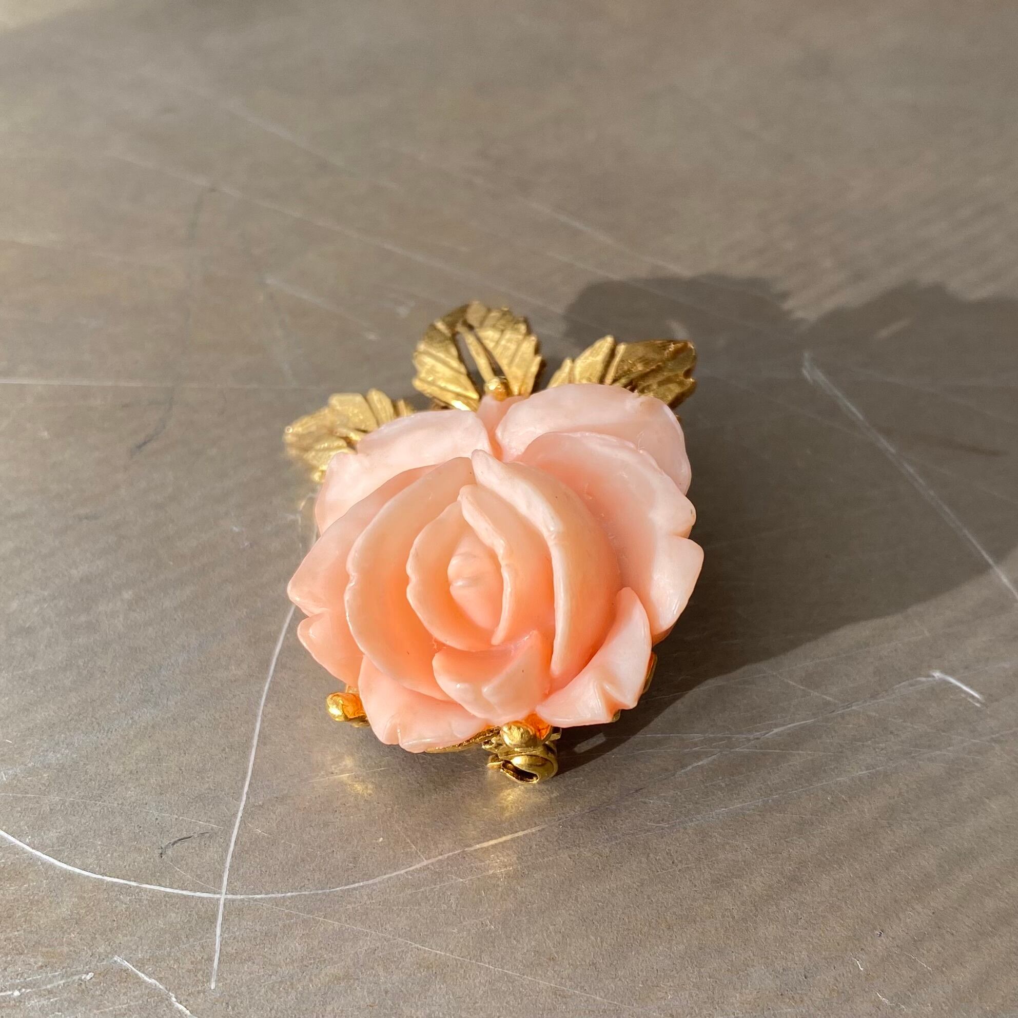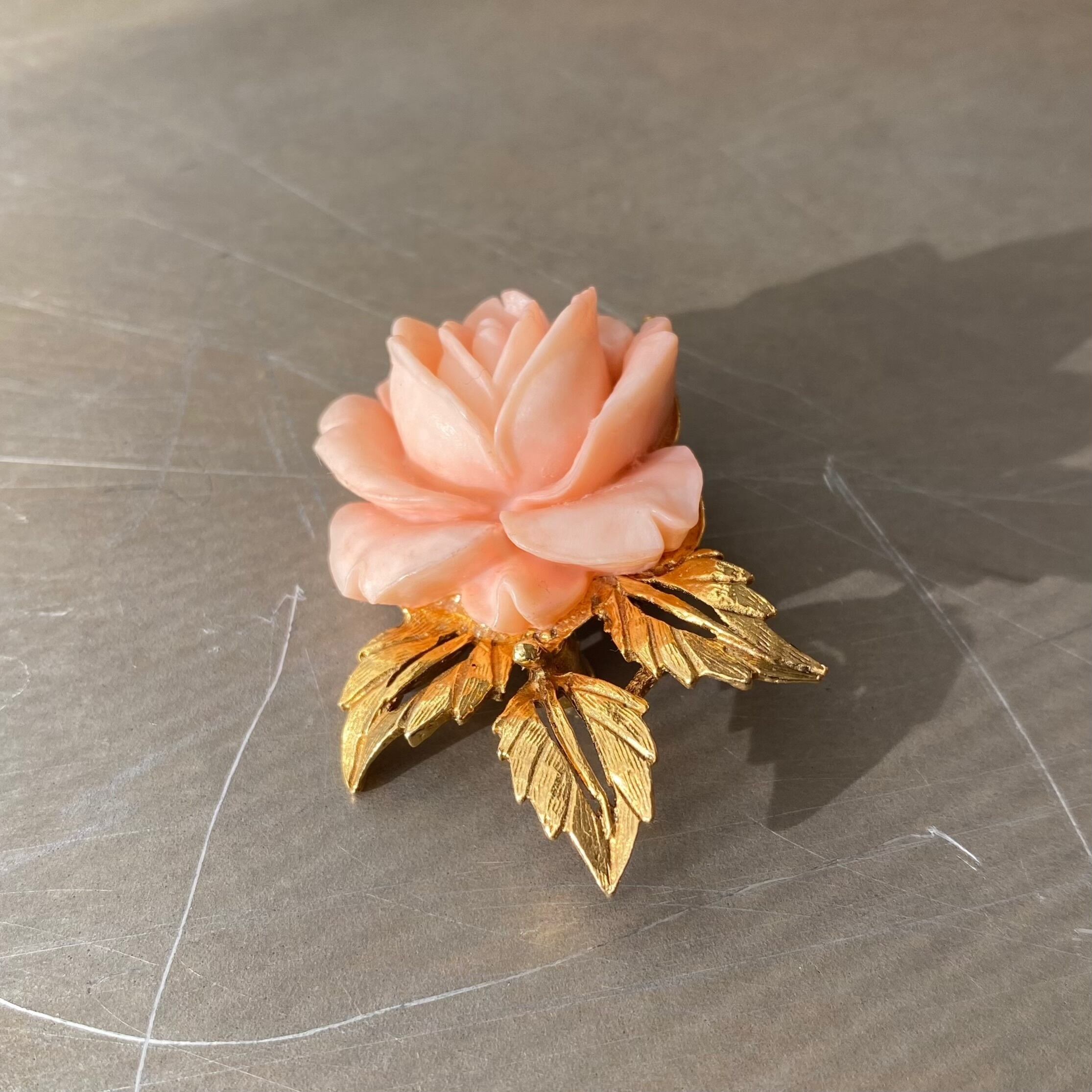 Vintage 70s-80s USA retro coral pink botanical rose brooch レトロ アメリカ ヴィンテージ アクセサリー コーラル ピンク ボタニカル ローズ 薔薇 ブローチ