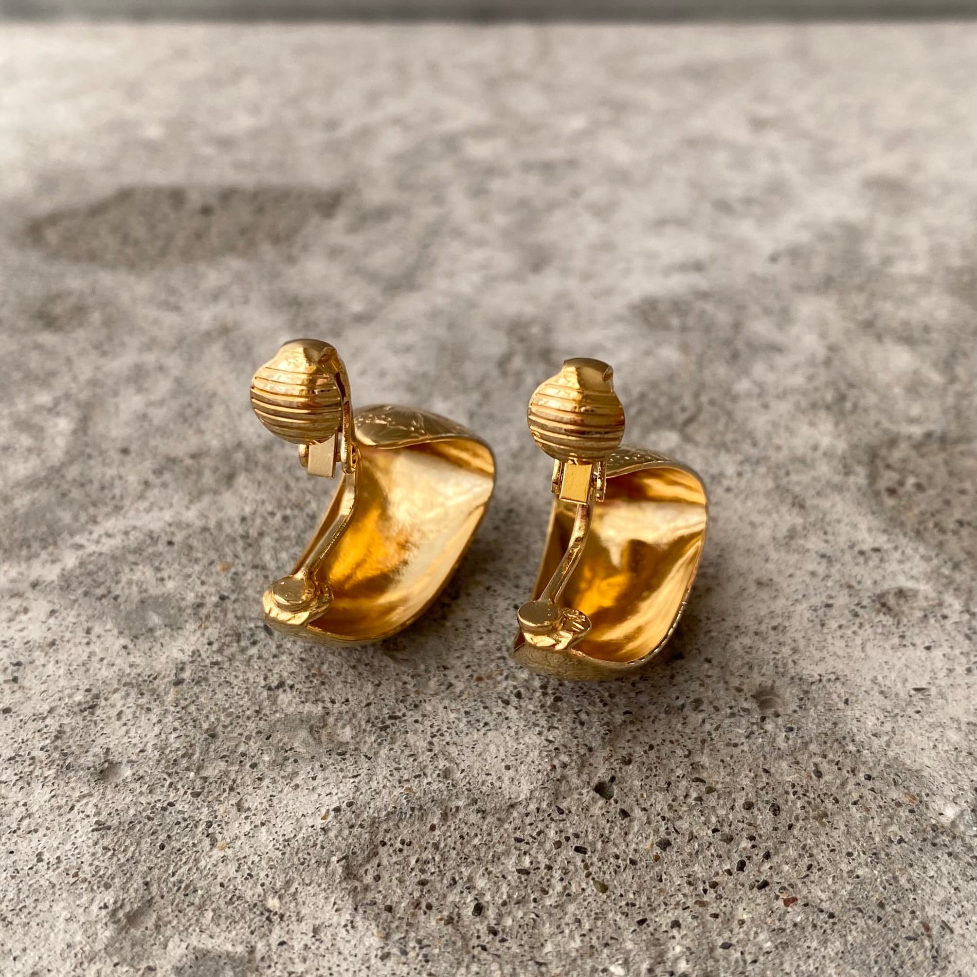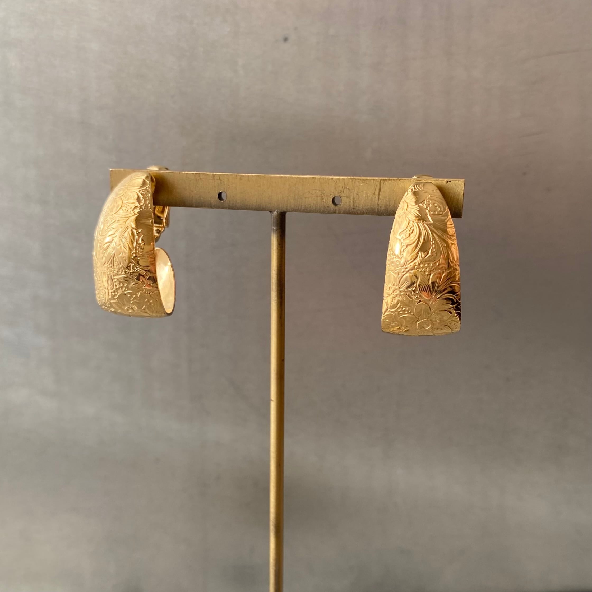 Vintage 80s USA retro botanical flower design earring レトロ アメリカ ヴィンテージ アクセサリー ボタニカル フラワー デザイン ゴールド イヤリング