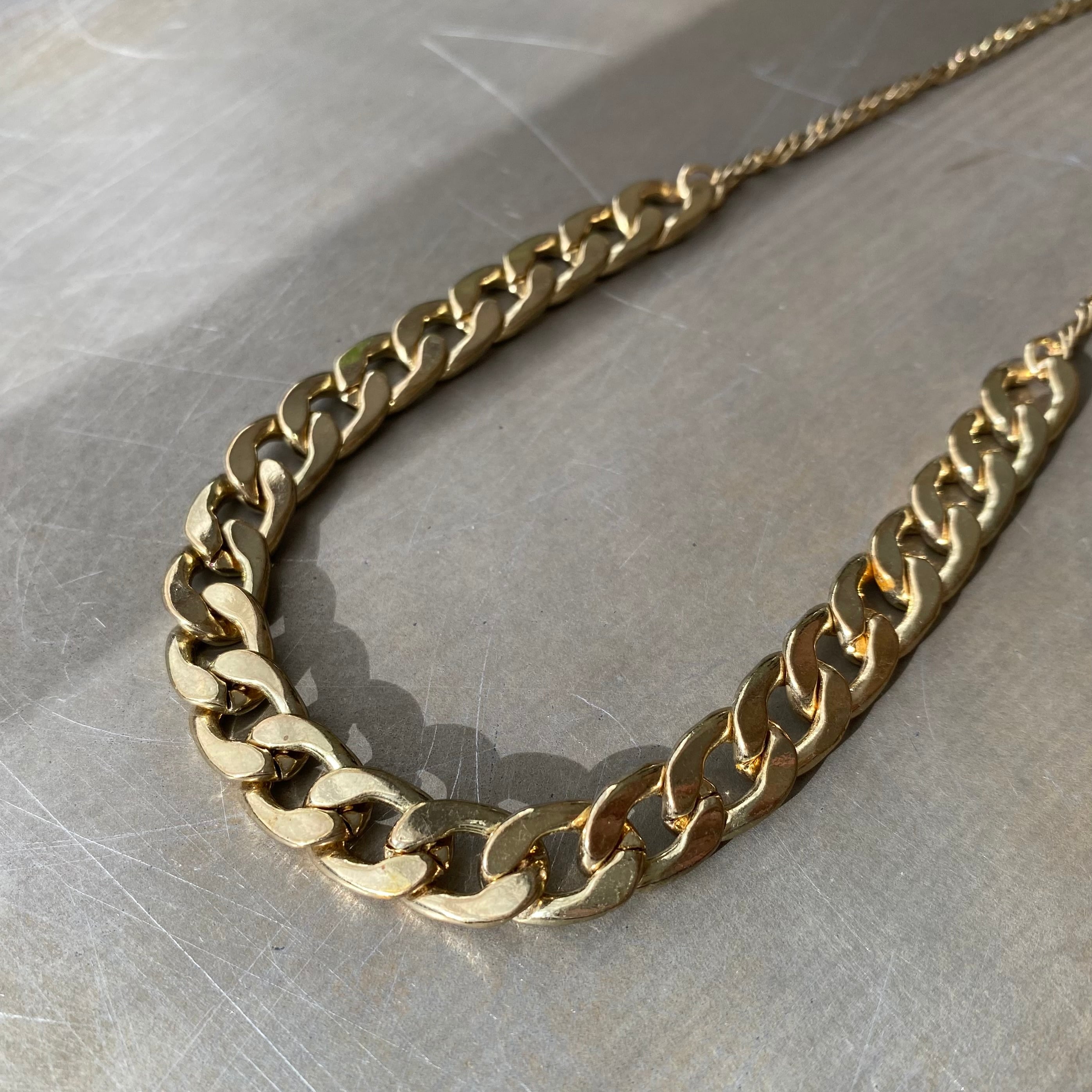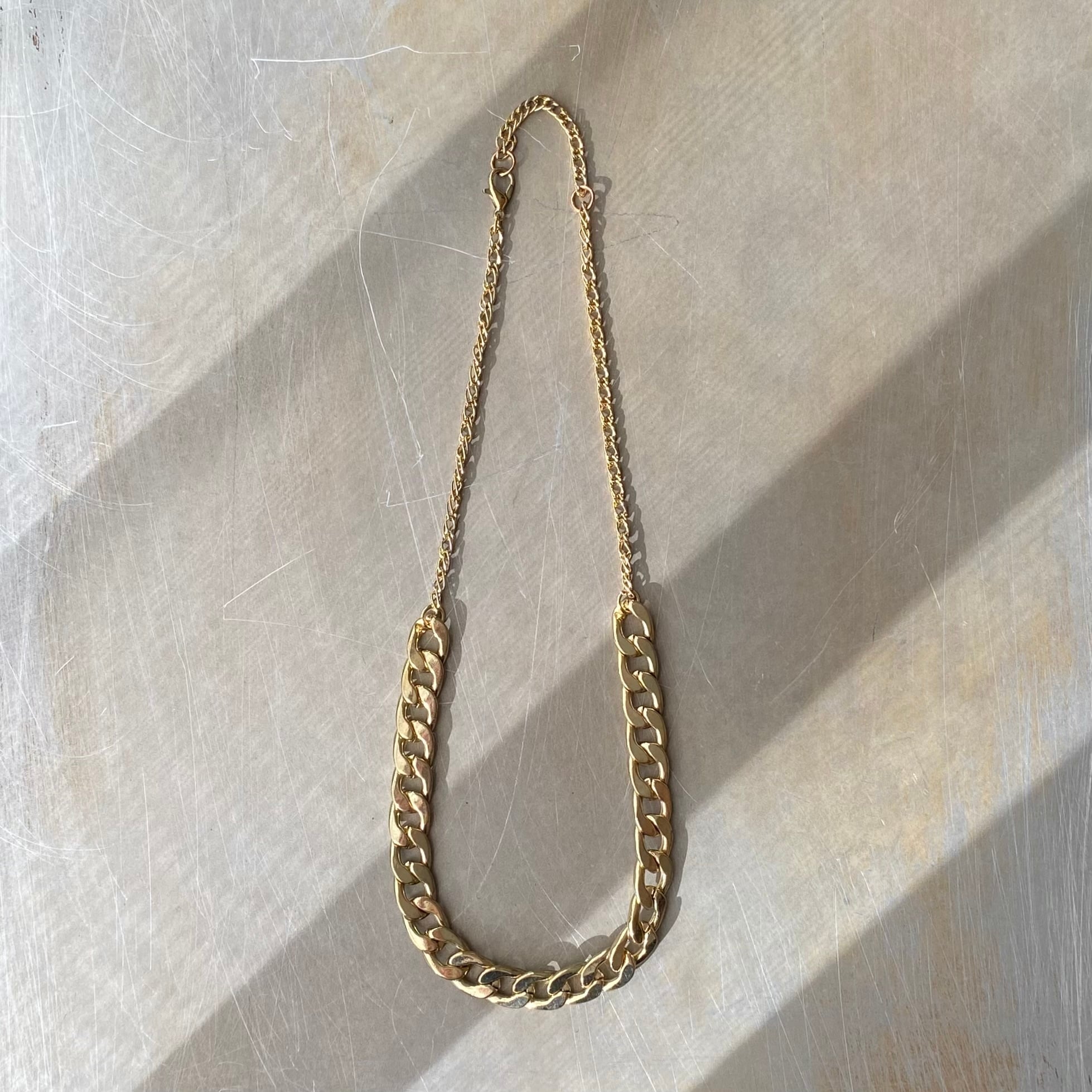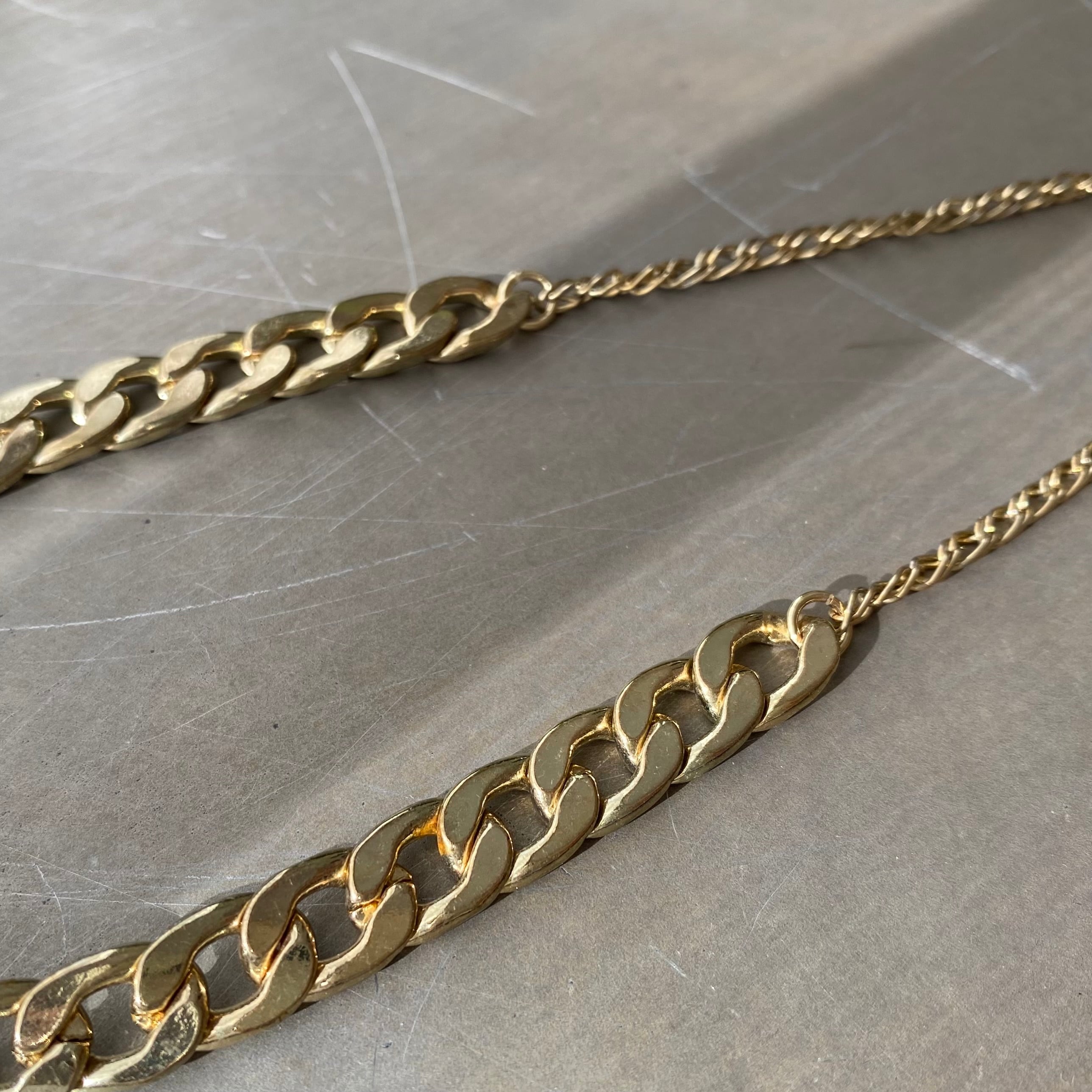 レトロモードな雰囲気のUSAヴィンテージチェーンネックレス。2種類のチェーンが切り替えられたお洒落なデザインです。肌馴染みの良い古びたメタルの色合いも魅力的。シンプルながら存在感があり様々なスタイルに合わせていただけます。