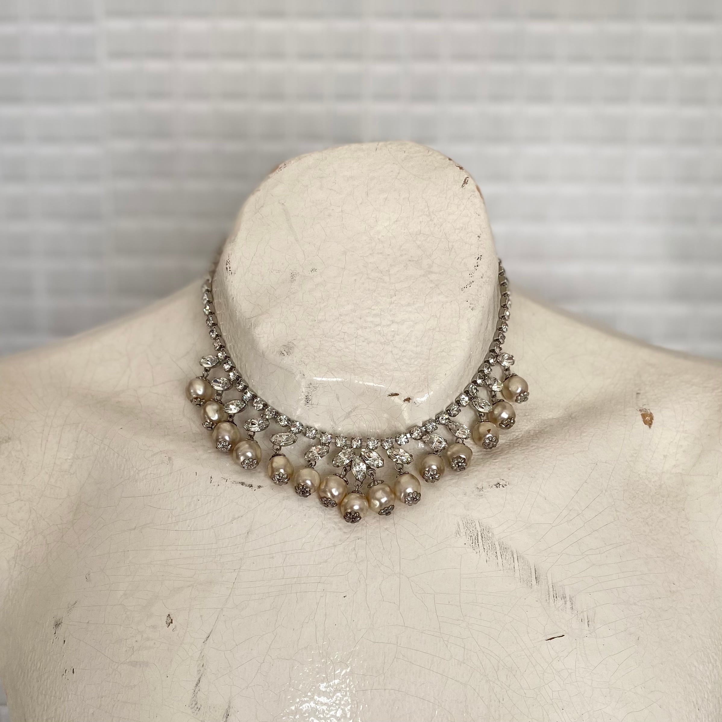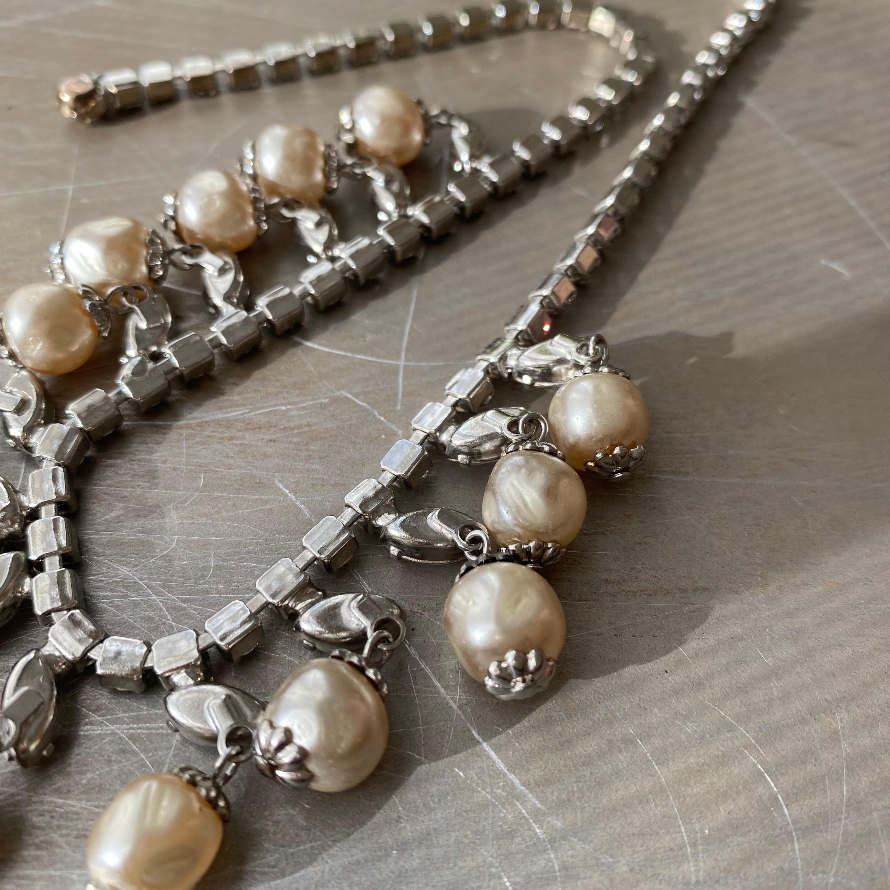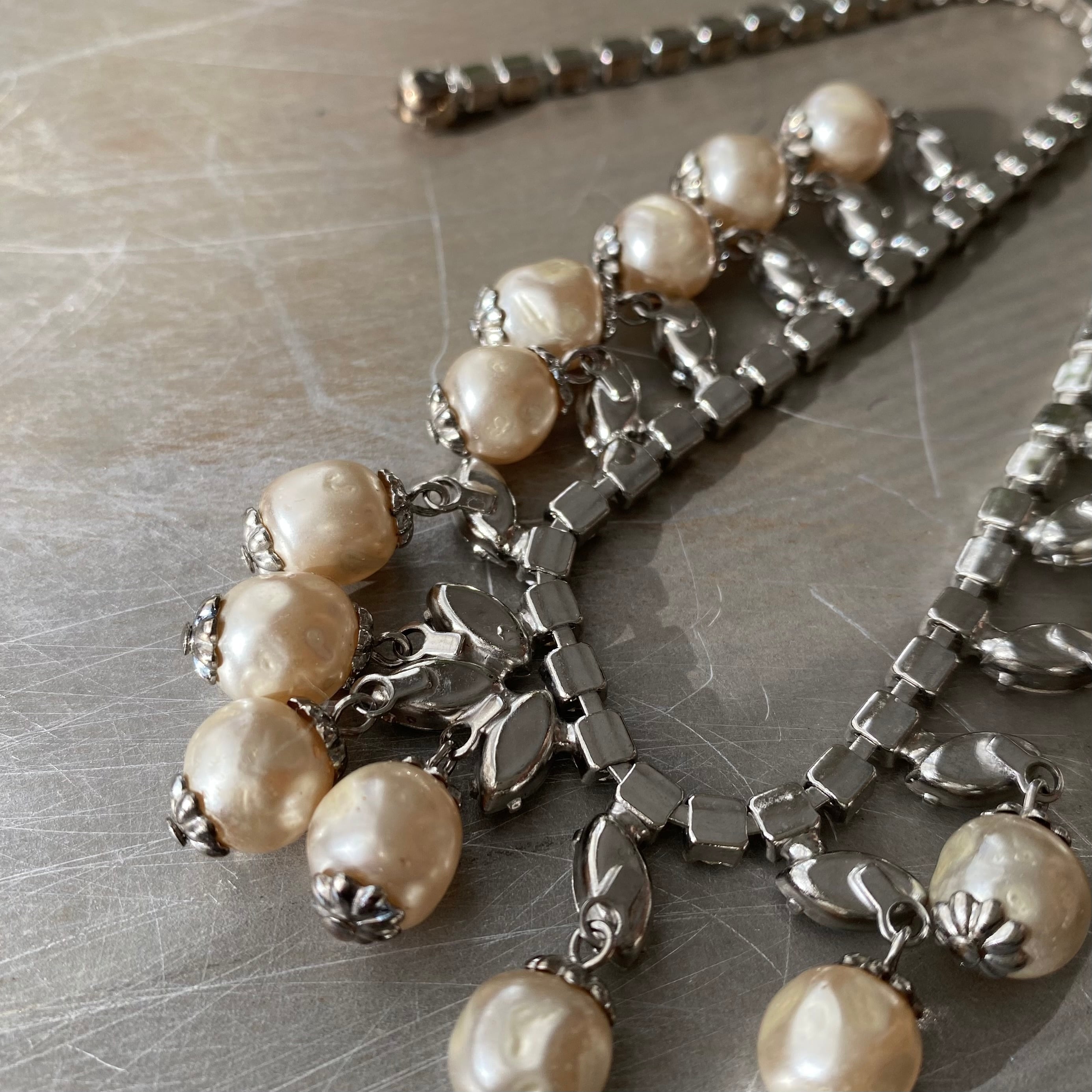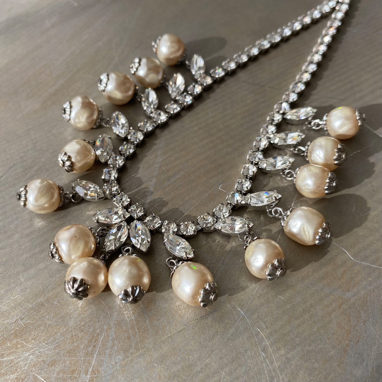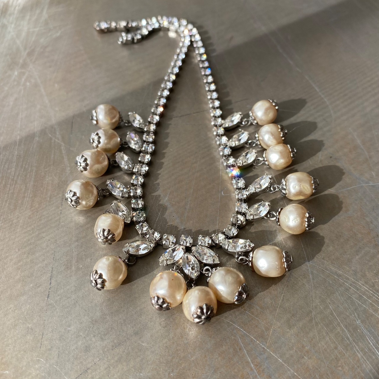 Vintage 50s-60s USA retro crystal bijou×pearl necklace レトロ アメリカ ヴィンテージ アクセサリー クリスタル ビジュー×パール ネックレス