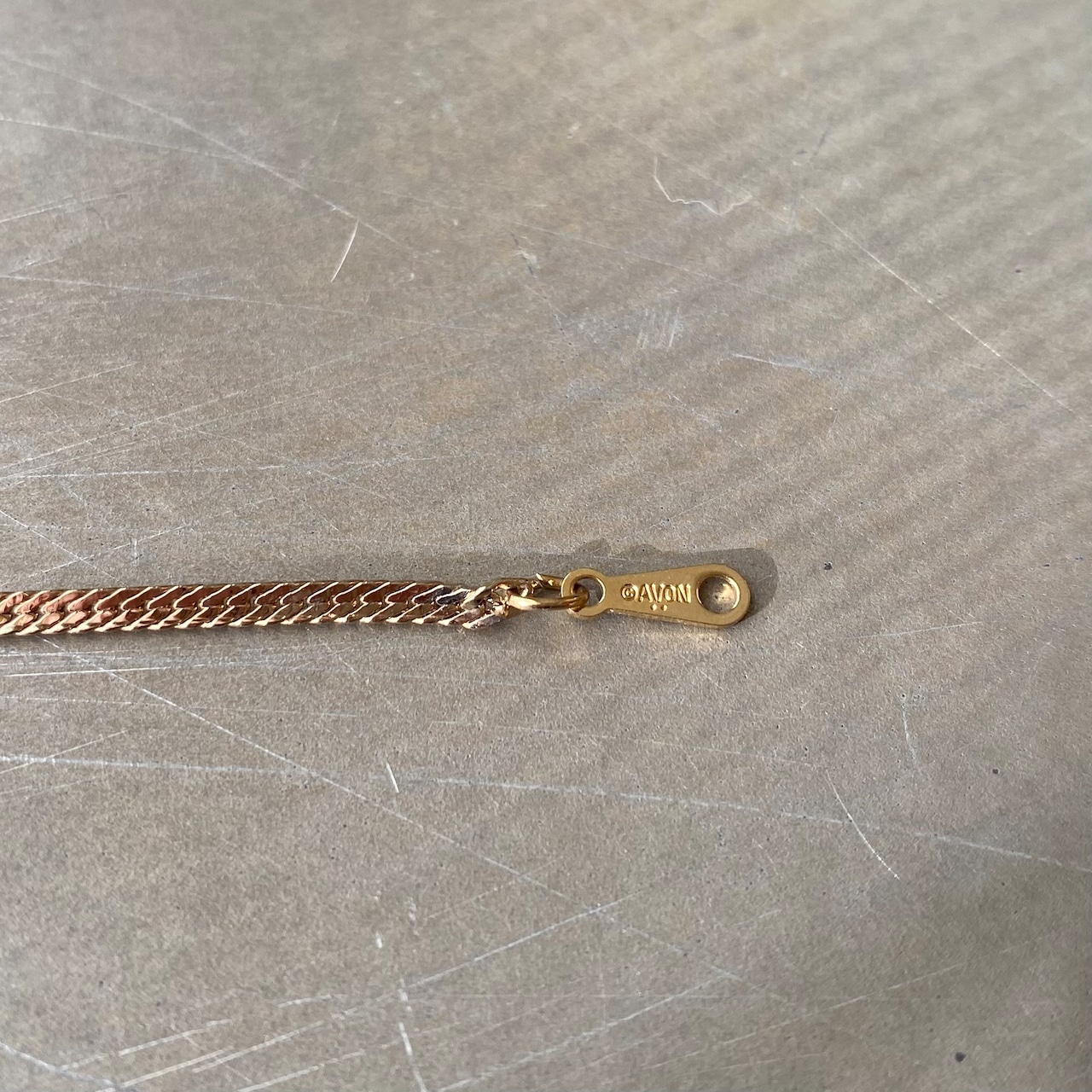 1886年にNYで香水会社として創業し、1971年よりコスチュームジュエリーの制作を始めたブランド「AVON」のUSAヴィンテージブレスレット。繊細なビジューで表現されたイニシャル「L」の文字。キラリと輝くチェーンが上品な雰囲気の美しいデザインです。