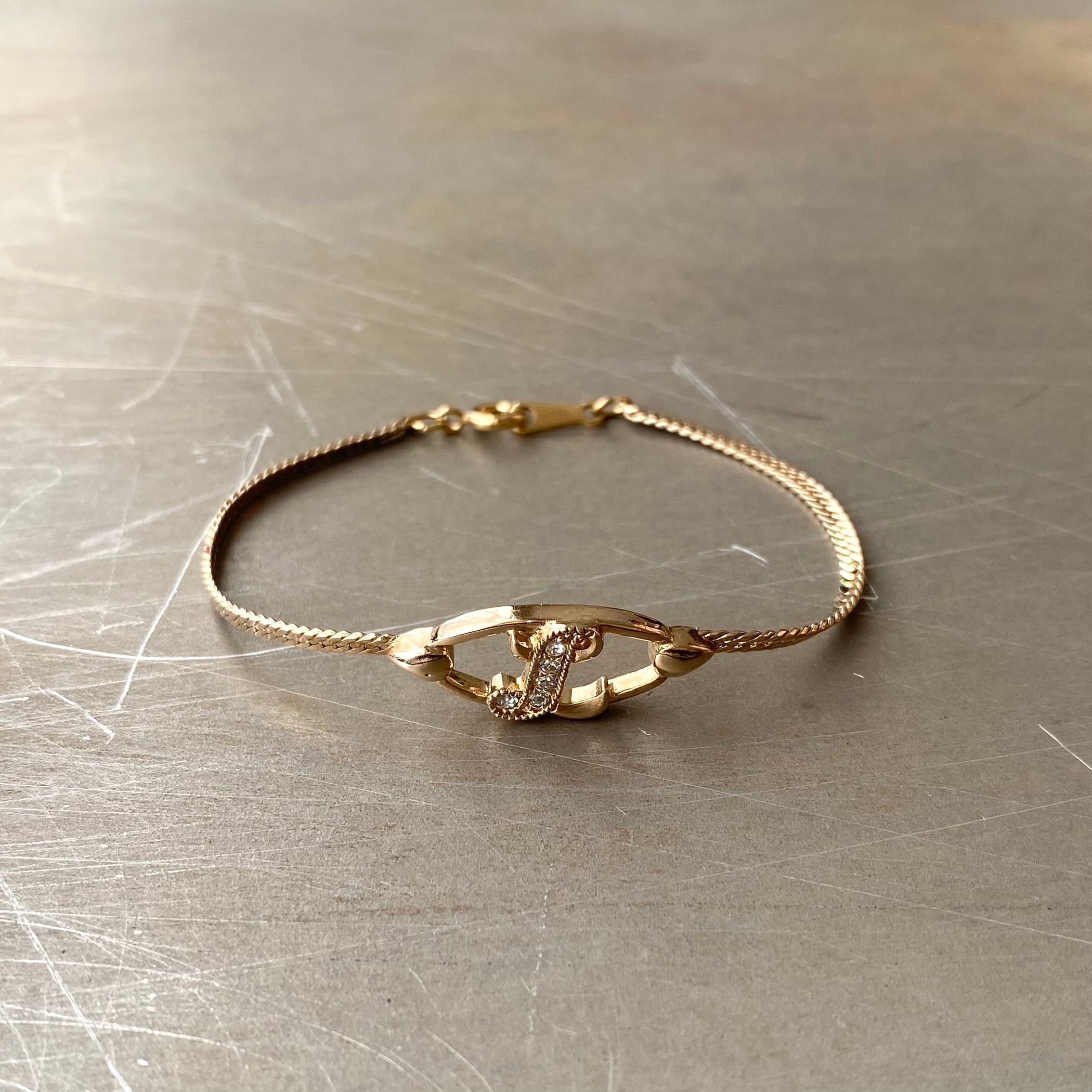 Vintage 80s USA AVON crystal bijou initial bracelet レトロ アメリカ ヴィンテージ アクセサリー エイボン クリスタル ビジュー イニシャル ゴールド ブレスレット