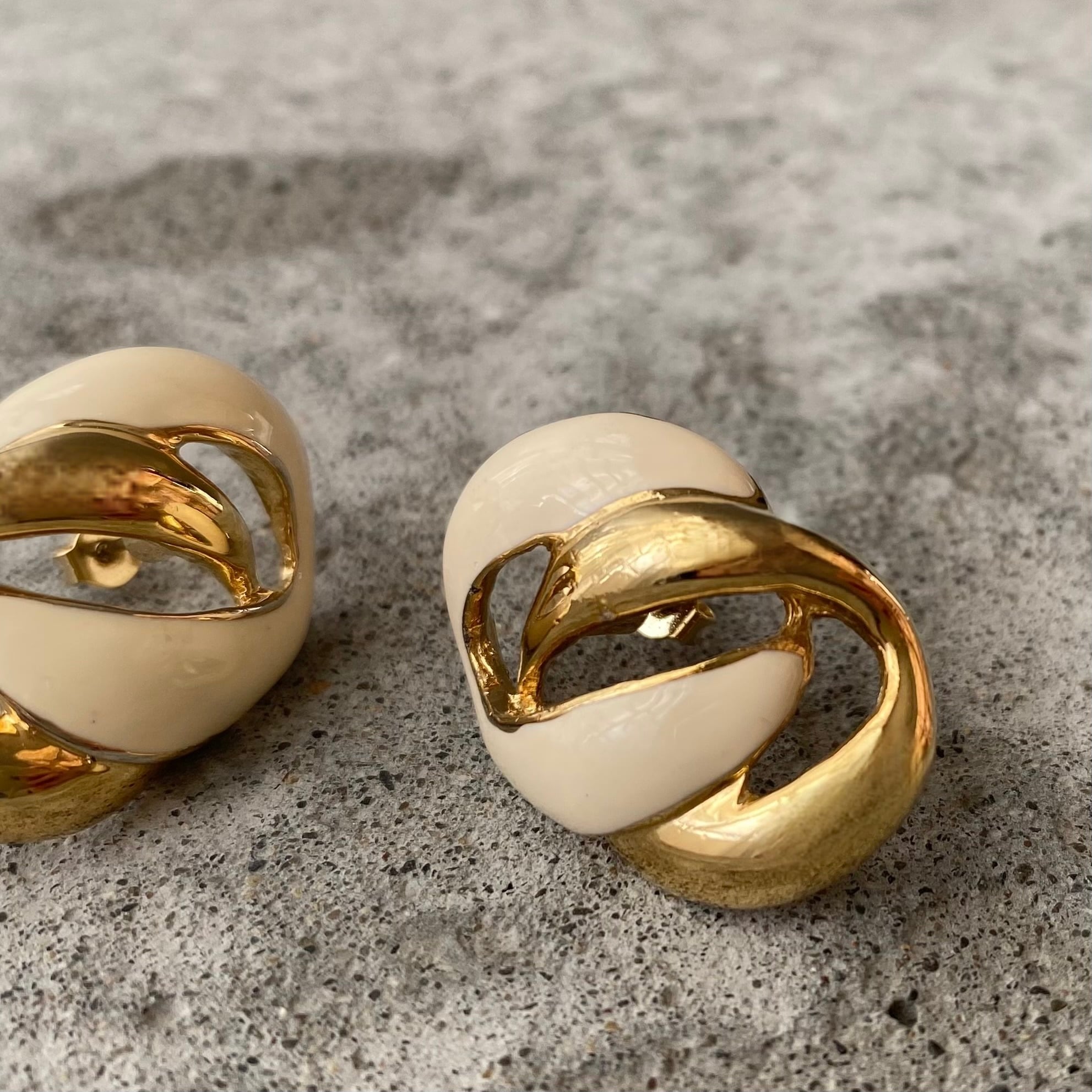 Vintage 80s USA retro off-white enamel pierce レトロ アメリカ ヴィンテージ アクセサリー オフホワイト エナメル ゴールド ピアス