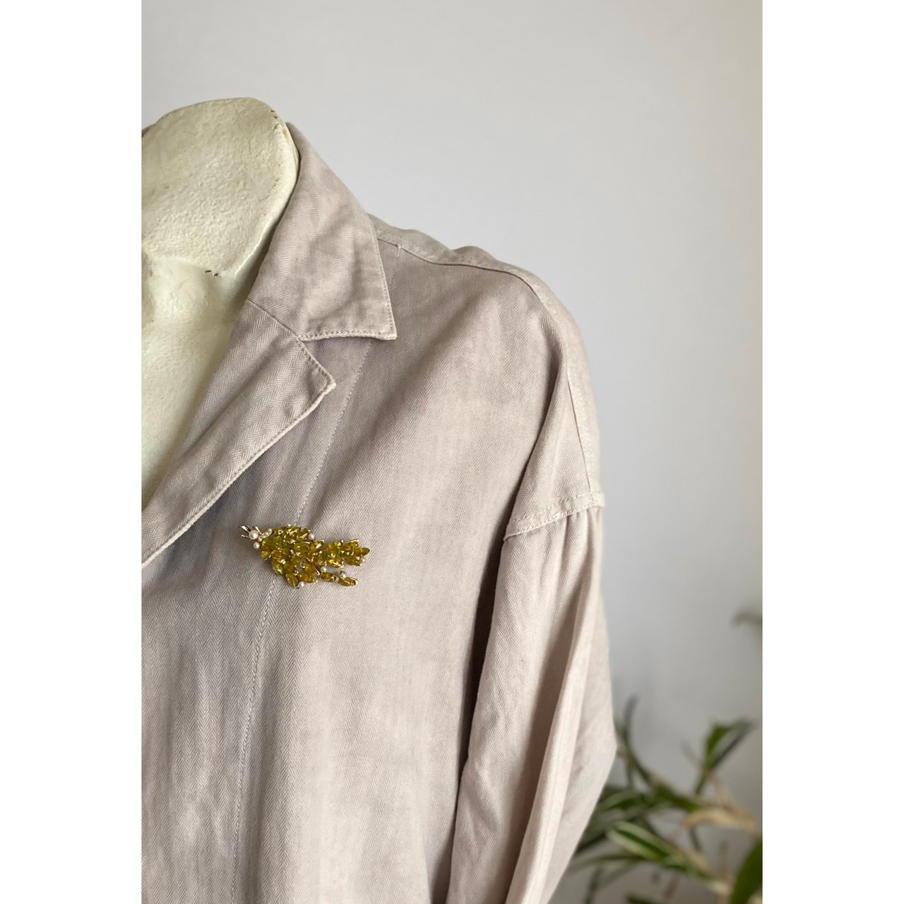 Vintage 80s USA retro peridot×pearl botanical leaf brooch レトロ アメリカ ヴィンテージ アクセサリー 天然石 ペリドット×パール ボタニカル リーフ ブローチ