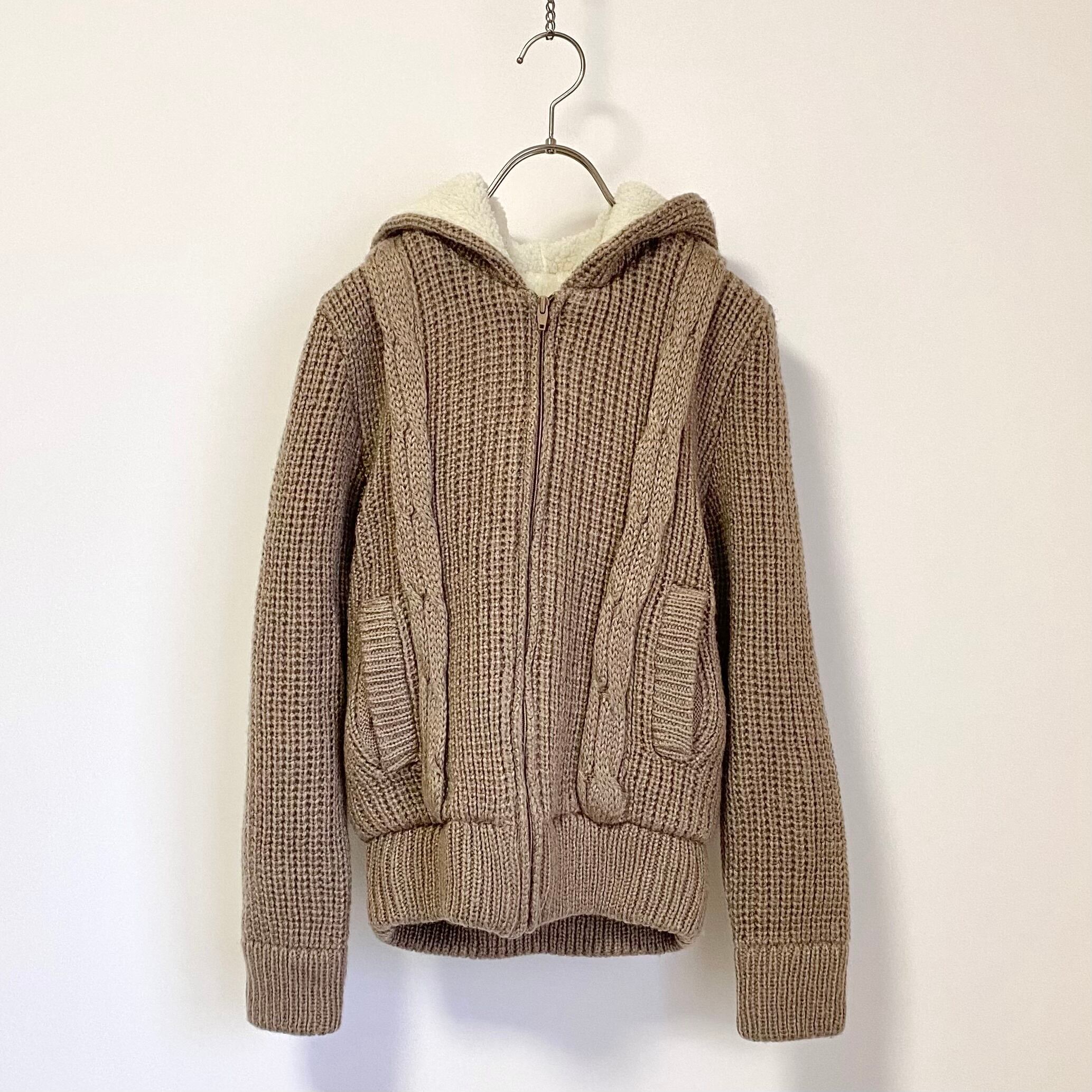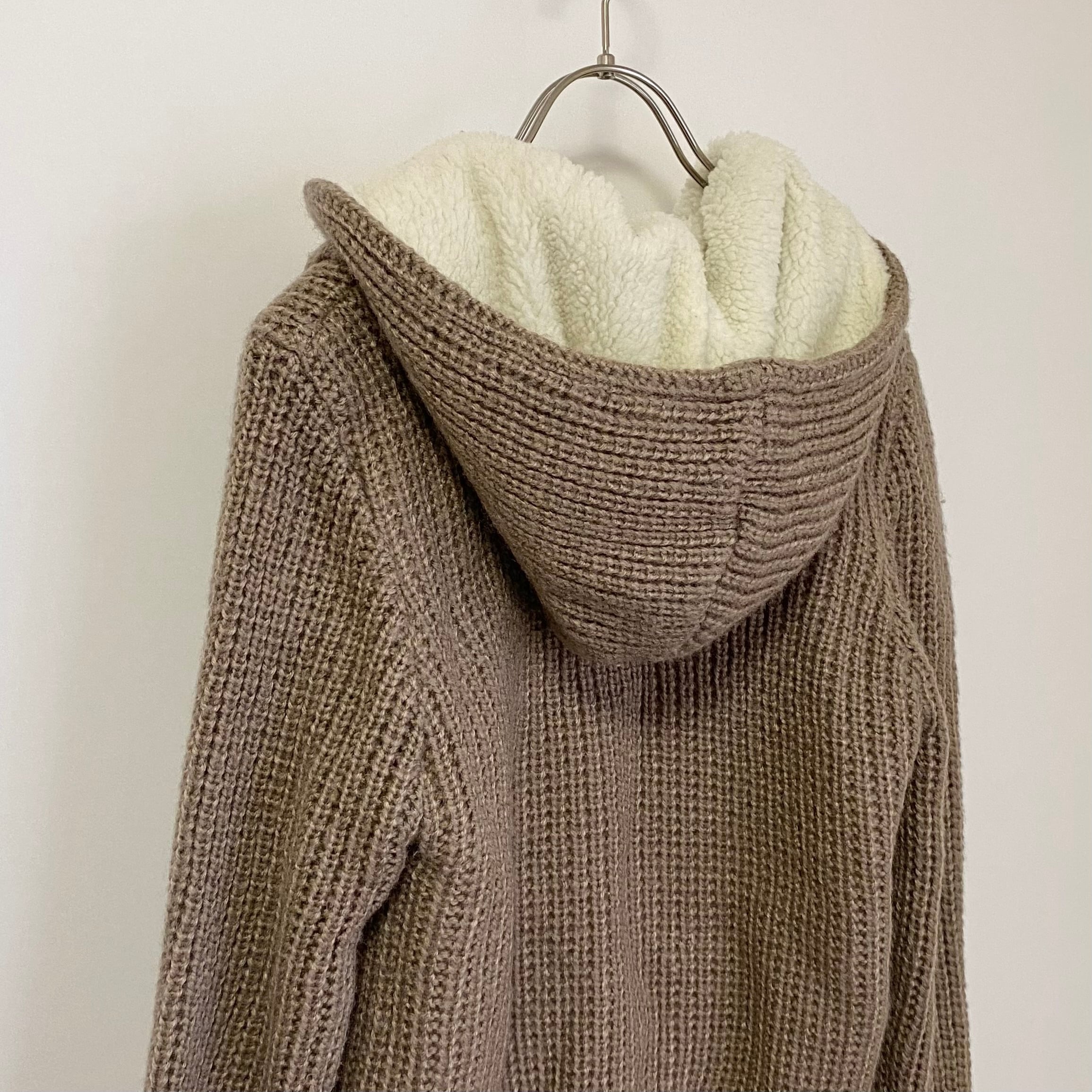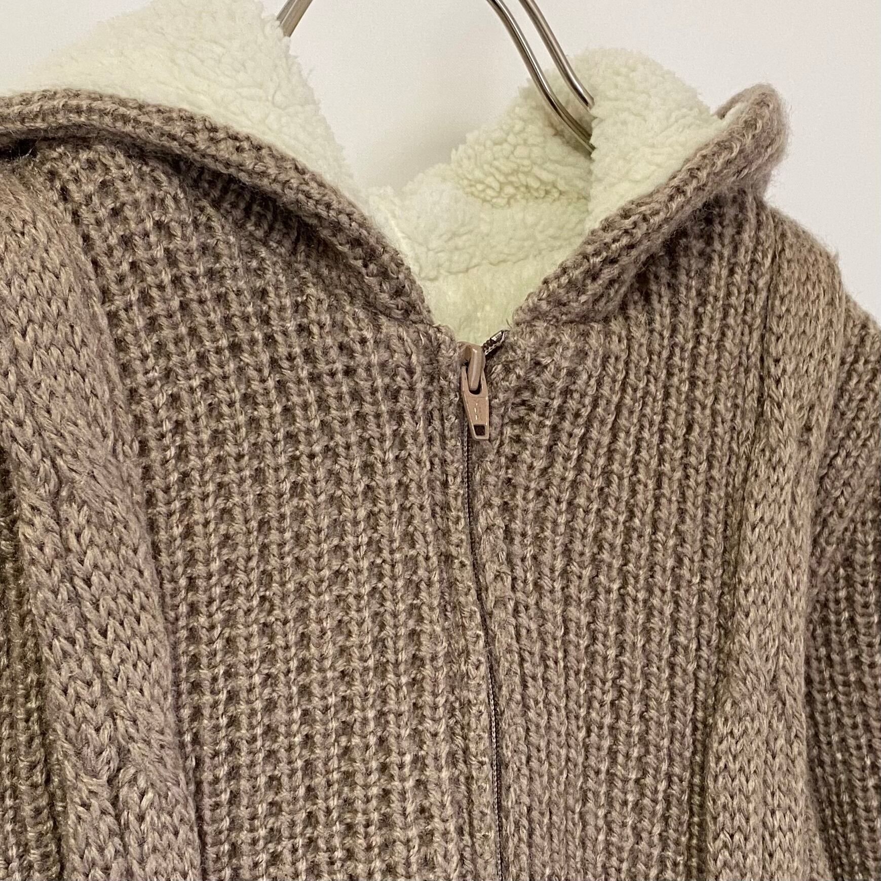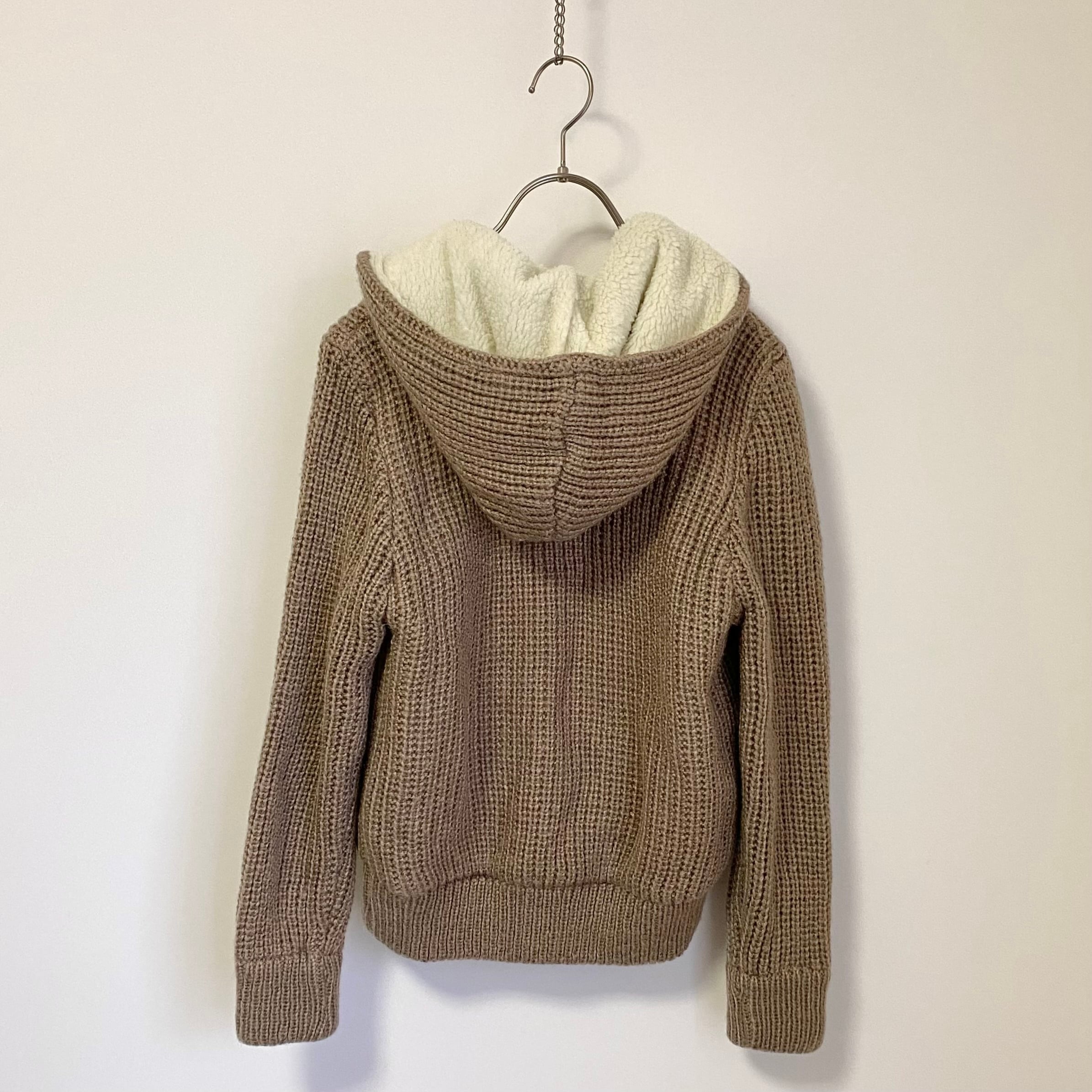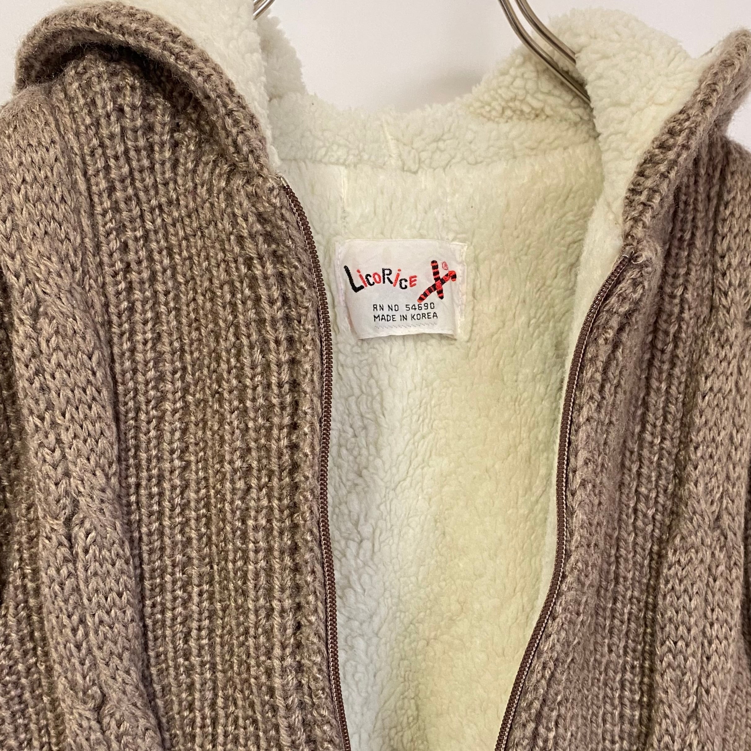 Vintage USA retro hooded knit jacket レトロ アメリカ ヴィンテージ 古着 フード 内ボア ベージュ ニット ジャケット レディース