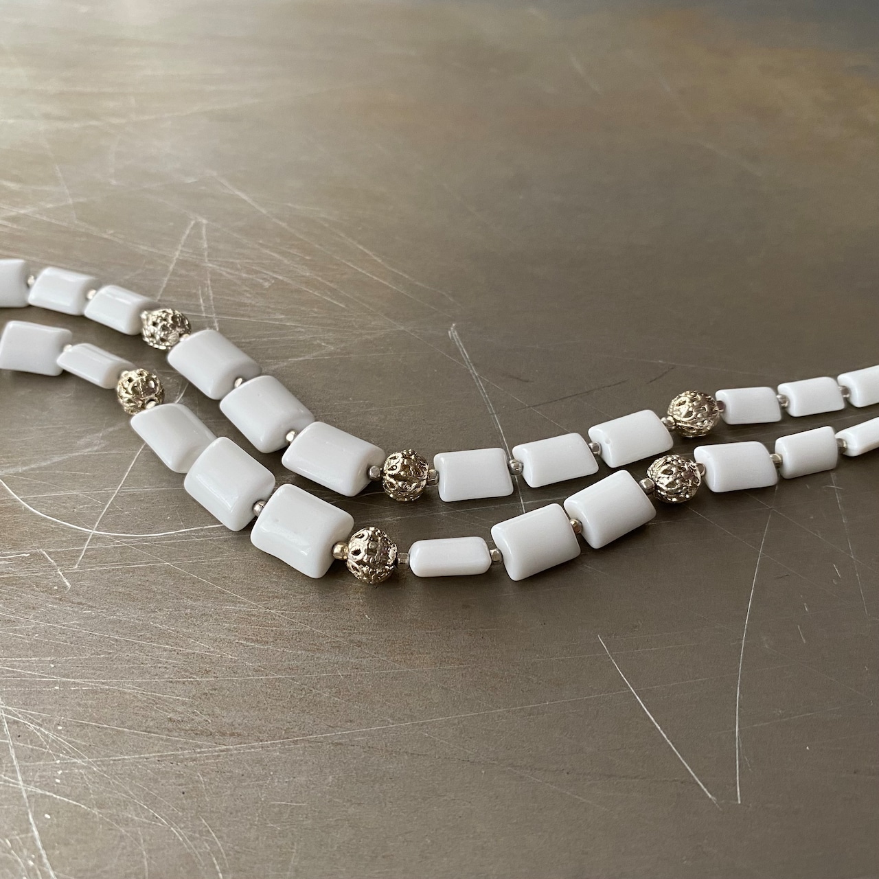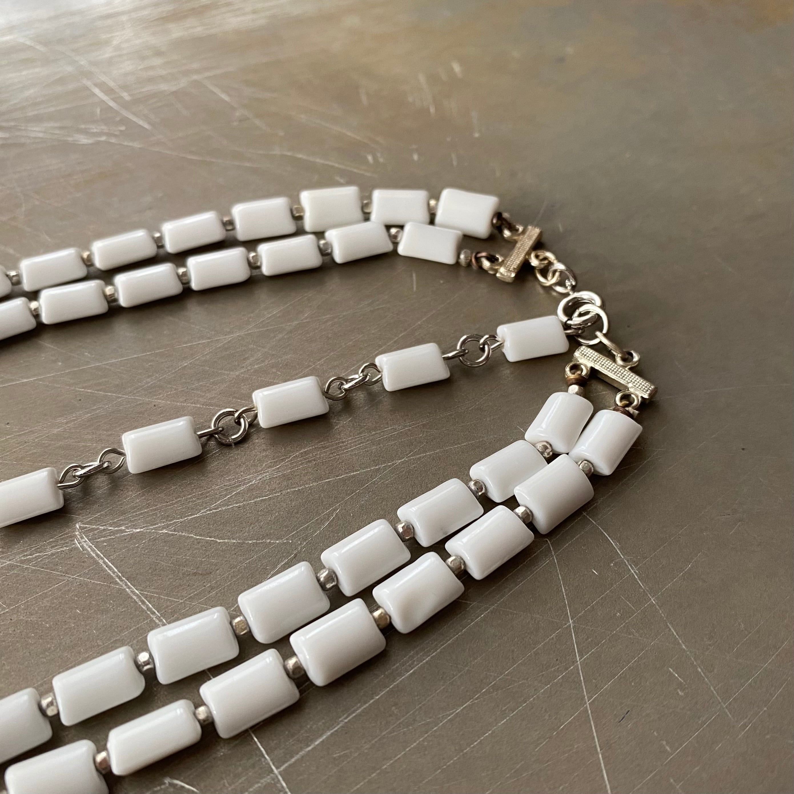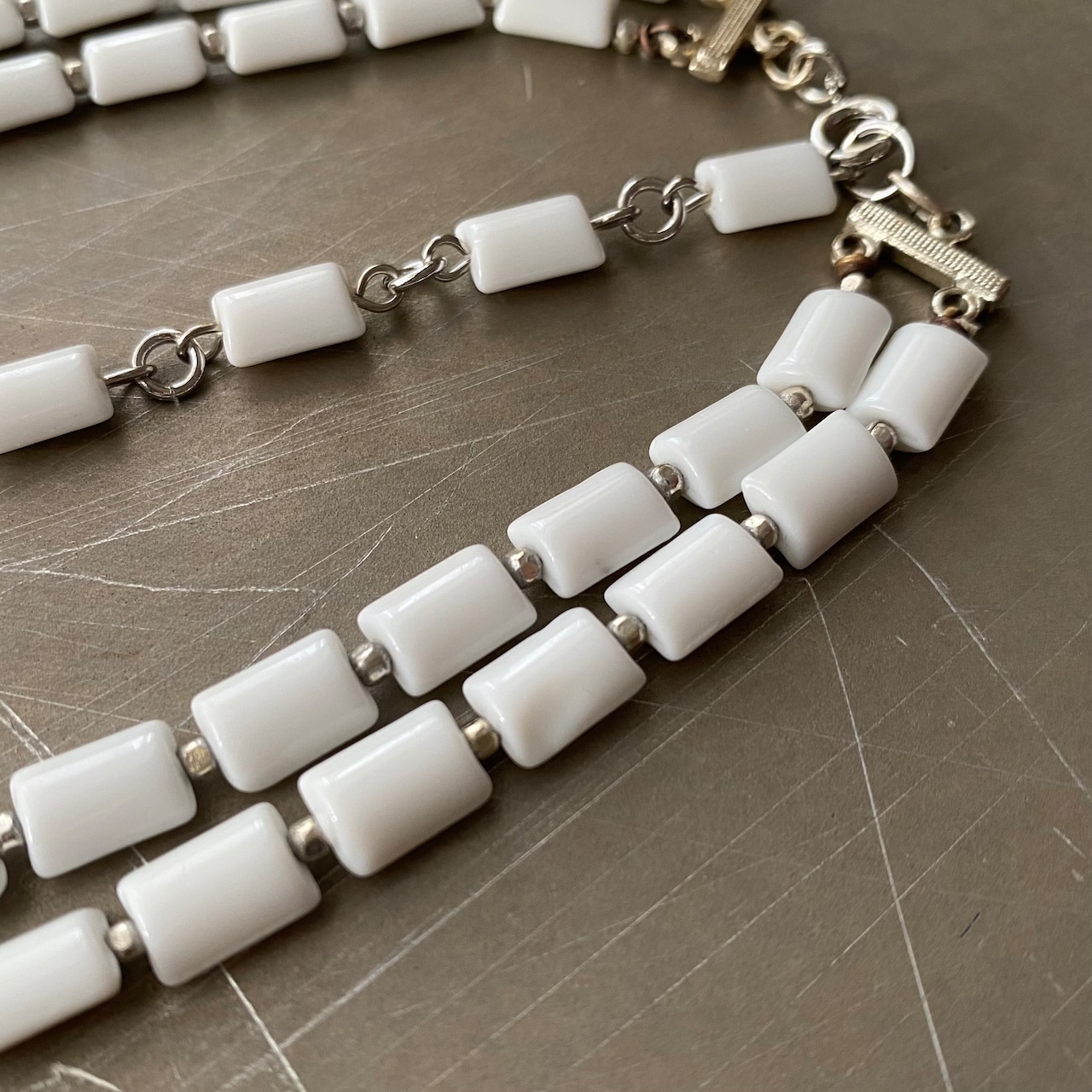 Vintage 50s-60s USA retro square milk glass beads necklace レトロ アメリカ ヴィンテージ アクセサリー スクエア ミルク ガラス ビーズ ネックレス